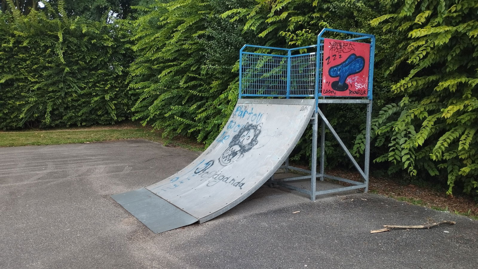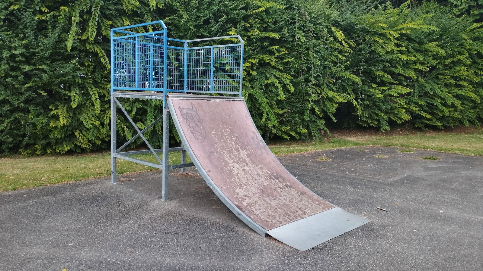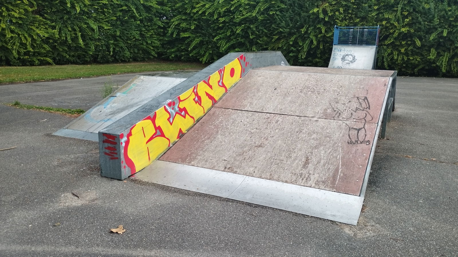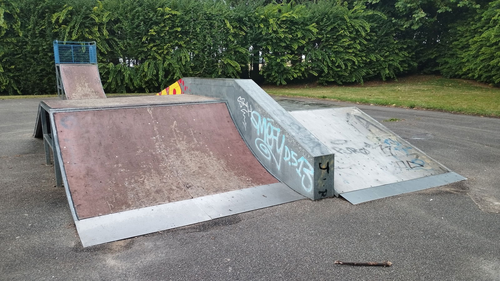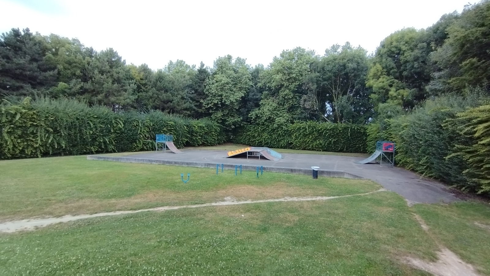 Honfleur skatepark is a small park with several basic skateboarding obstacles in a back and forth setup.