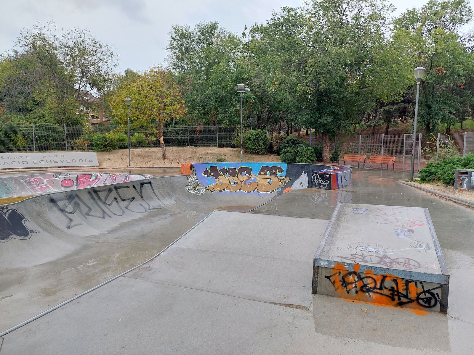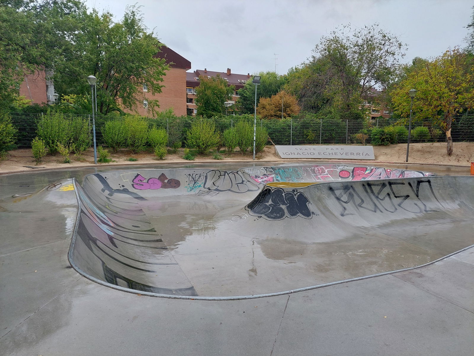 Ignacio Echeverria skatepark features a large concrete bowl and street area.