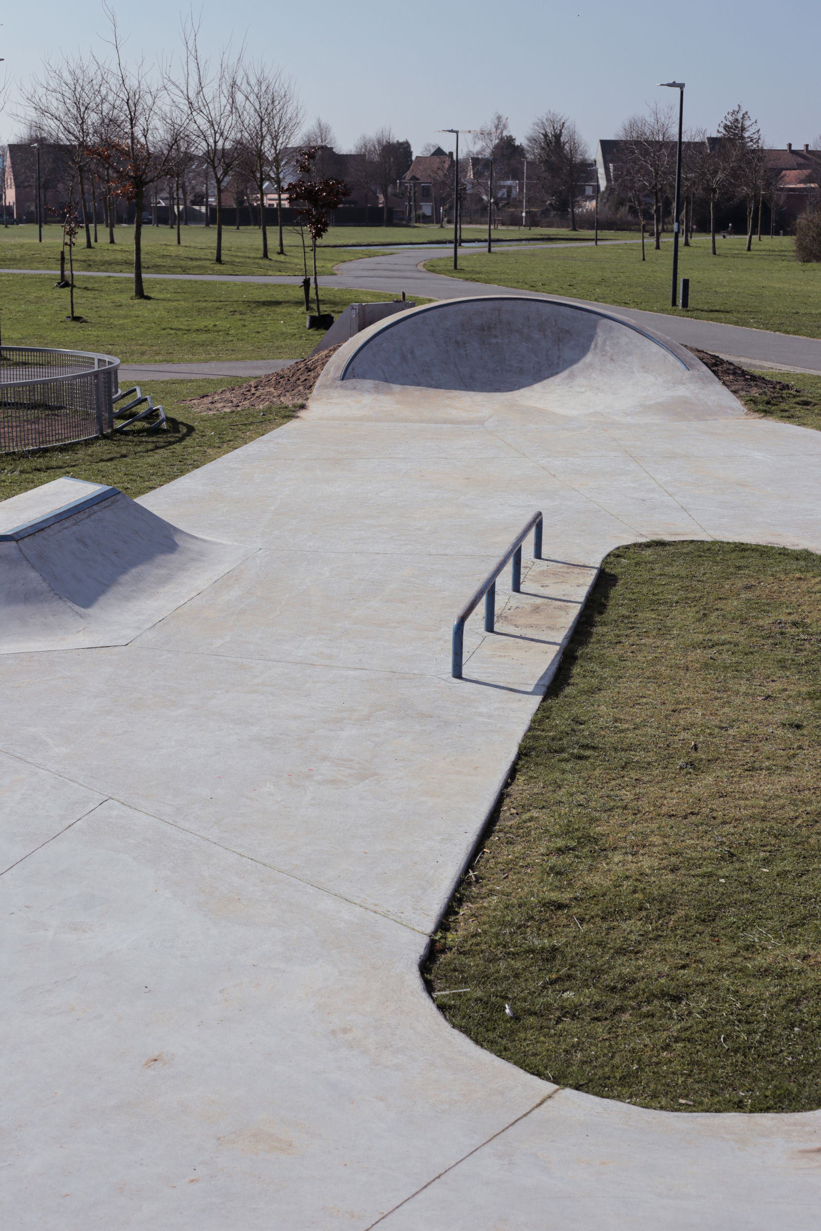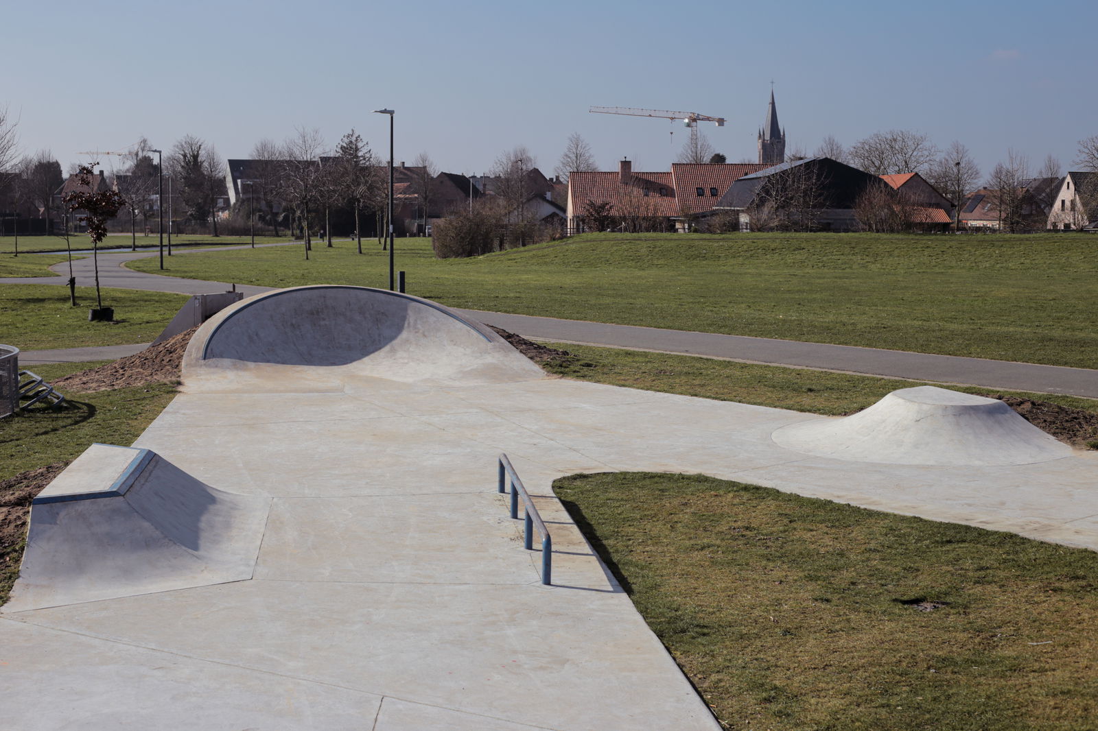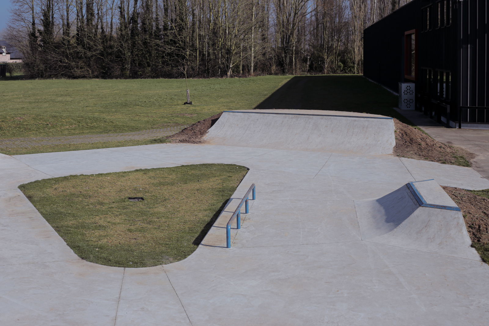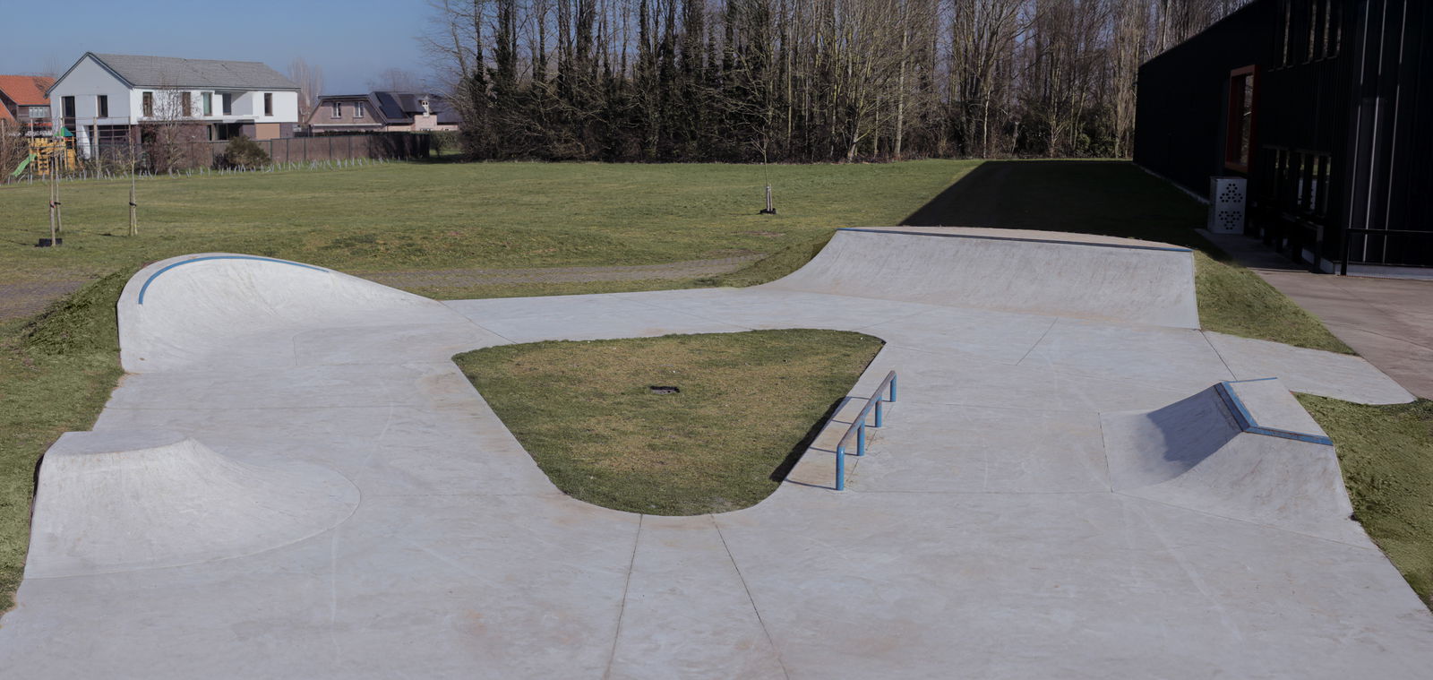 Jabbeke skatepark is a triangular shaped street focused park, built by IOSkateparks.
