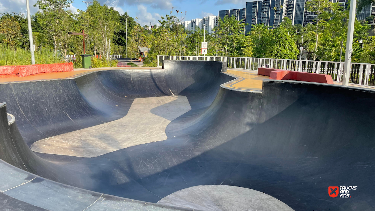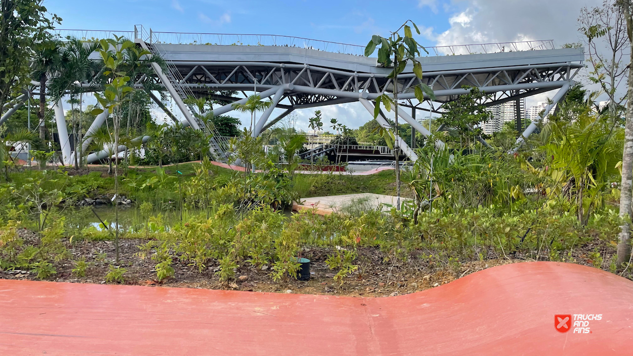 Built by Convic, a renowned Australian skatepark design company, the park features five different skate pods to cater to skaters of all skill levels, including a Learn to Skate Pod, Mini Bowl Pod, and Plaza Pod. Additionally, it includes Singapore's first parkour park and a 3-meter-high bouldering wall. The skatepark is located in a scenic environment next to the Lakeside MRT station and forms part of a larger initiative to develop the Jurong Lake District into a vibrant urban center.