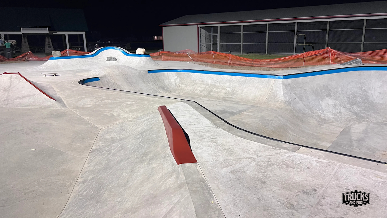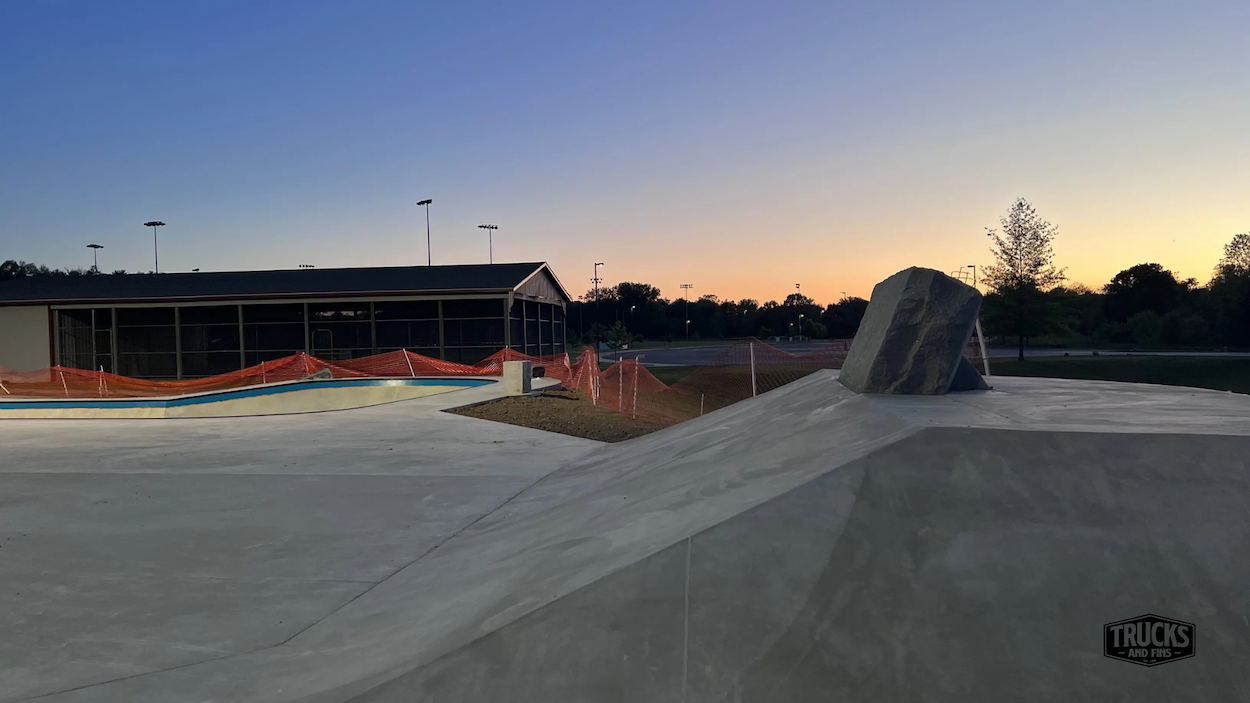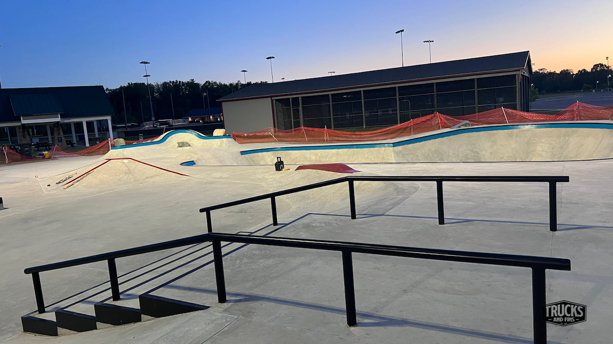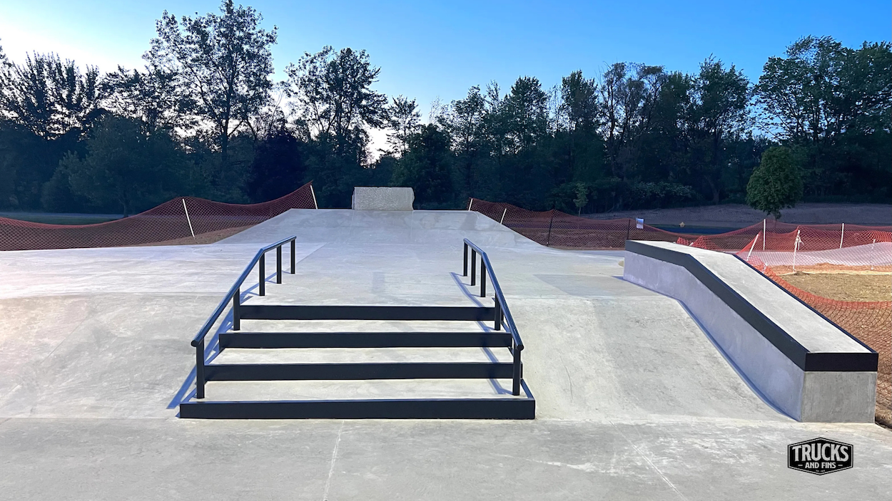 Did you know Kendallville has a lake with sandy beaches right in the heart of town? It's true — and now, right next to that lake, you’ll find the brand-new Kendallville Skatepark, nestled inside the Outdoor Recreation Complex. This awesome spot also features camping areas and cozy little cabins you can rent through the city’s website. Whether you're into swimming, kayaking, or just soaking up summer vibes, Kendallville is shaping up to be the perfect adventure destination. This skatepark has been a long time coming — over 15 years in the making — with interest rising and falling through the years. The real momentum came when Kendallville local Diane Peachy, known for her work on community projects, teamed up with skatepark advocate Ron Witham to cut through the red tape and make it happen. Big shoutout to the parks department, especially Ryan and Dawn — thanks for the rocks, the food, and all the support that brought this vision to life! The final result? A super fun, flowy park featuring a bowl with surrounding deck elements and a smooth roll-in perfect for setting up big lines. The street section is split into two distinct zones: a central plaza and a bonus leg that runs all the way out toward the parking lot. Some standouts include two stair sets, a variety of ledges and combos, bank to curb, a rock jersey barrier — and yes, the whole park is lit up at night!