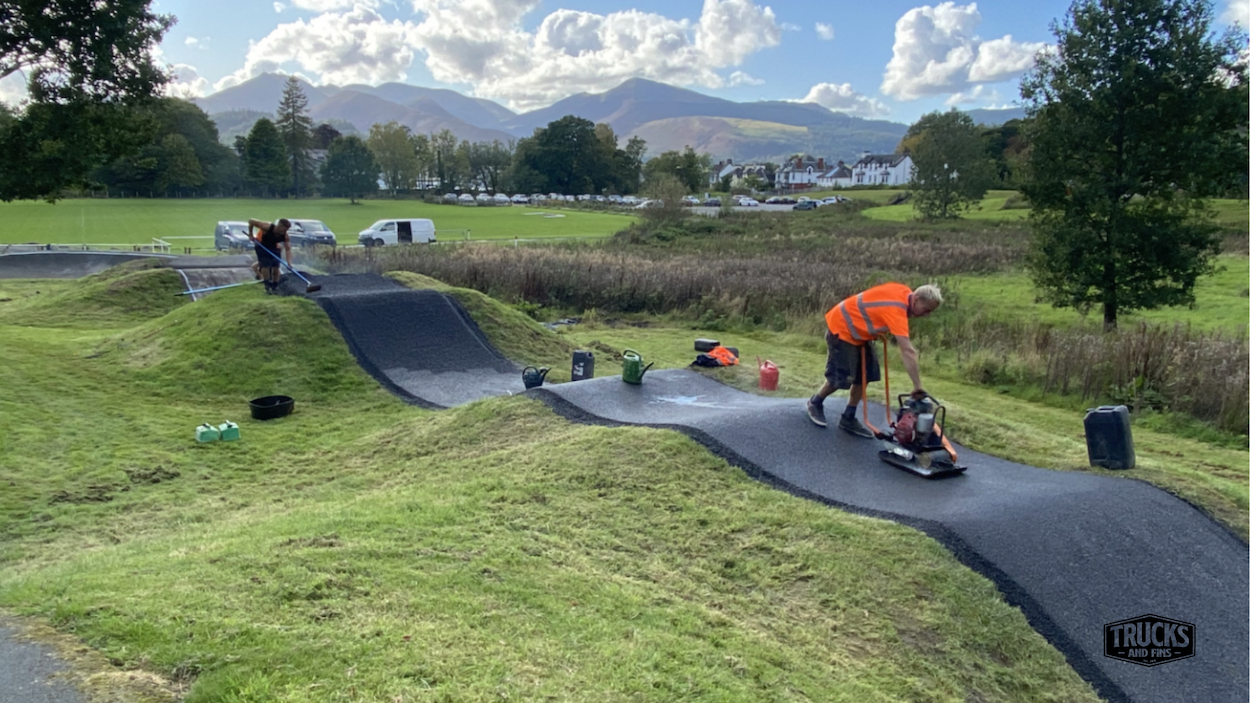 Keswick pumptrack, aka Fitz Park is an asphalt bike and skateboarding track built by Clark & Kent contractors.