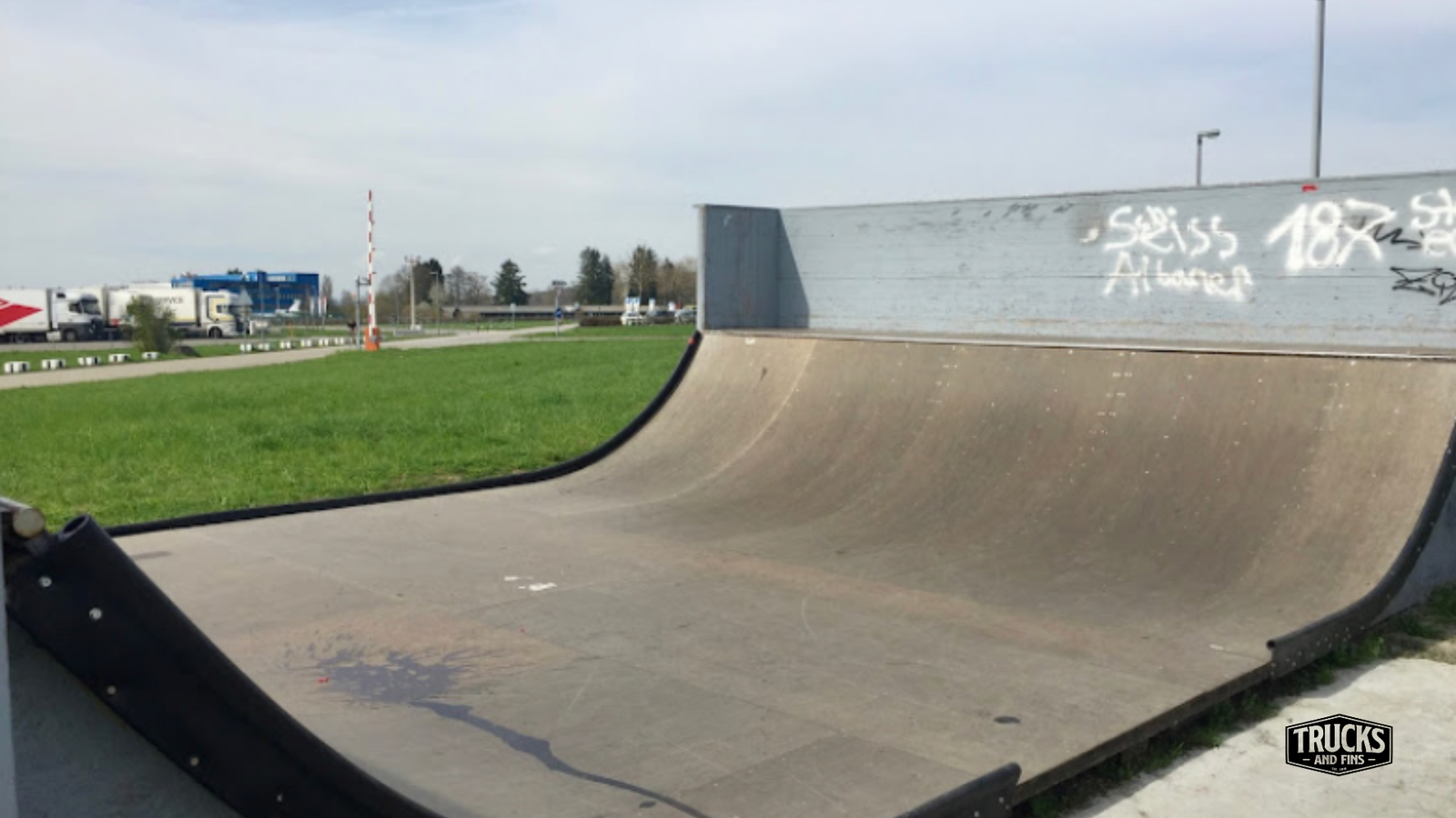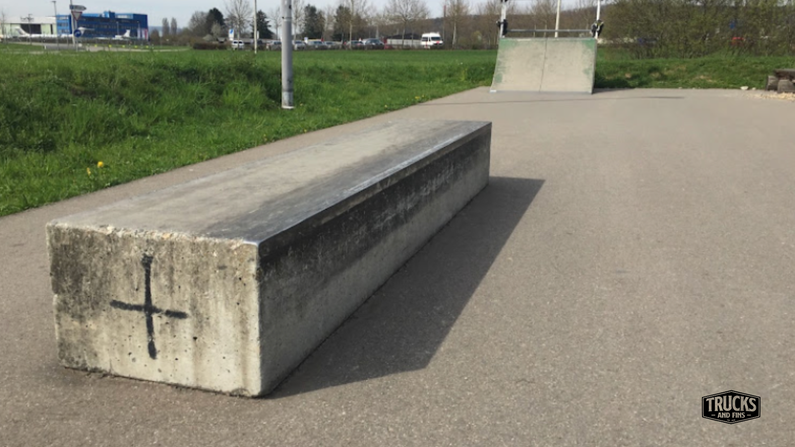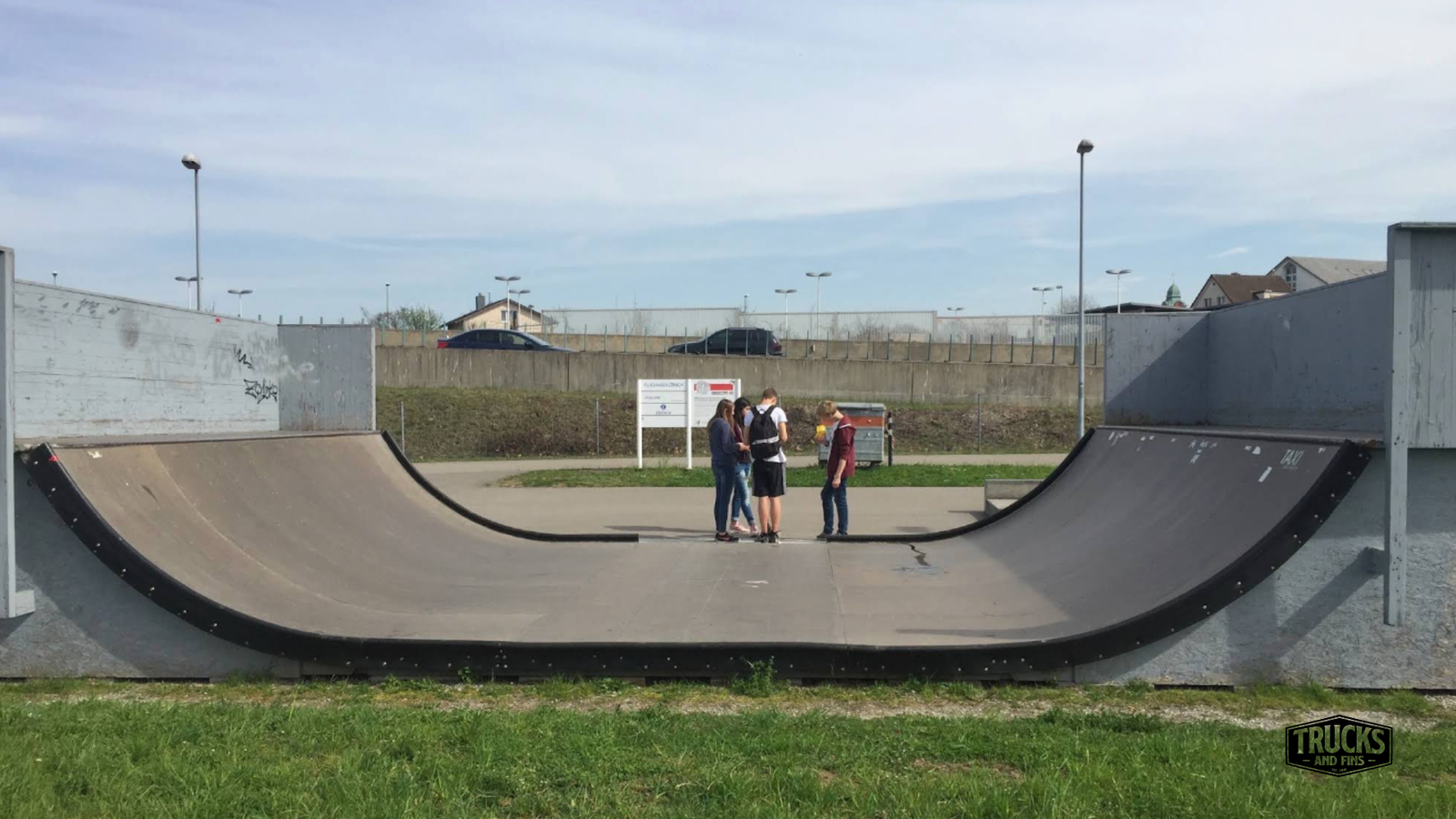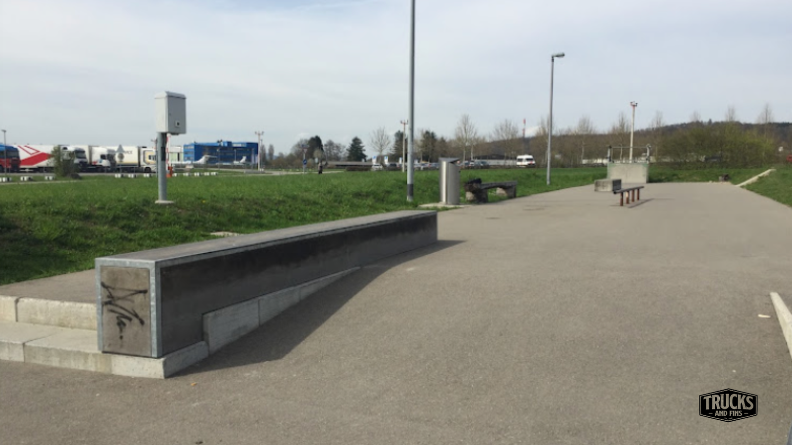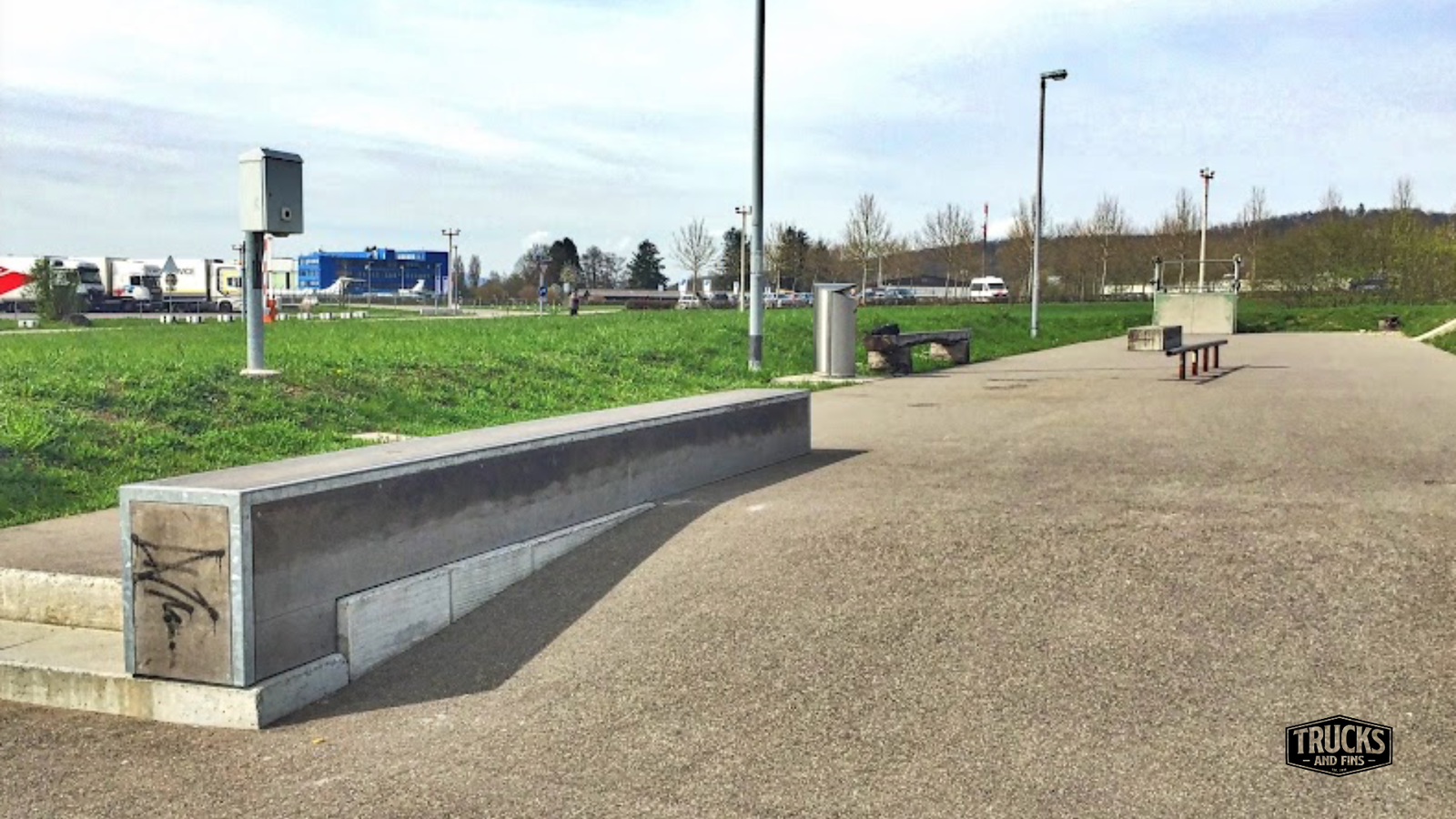 Kloten skatepark is a small park with a miniramp and several basic obstacles in a back and forth setup.