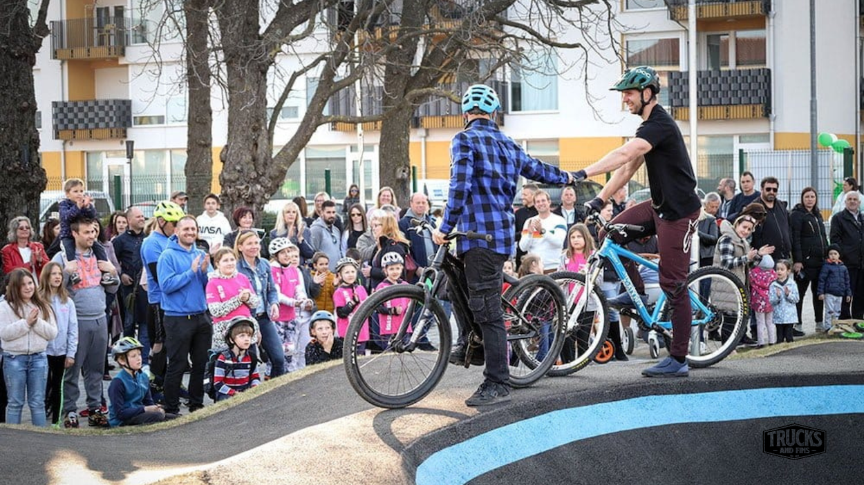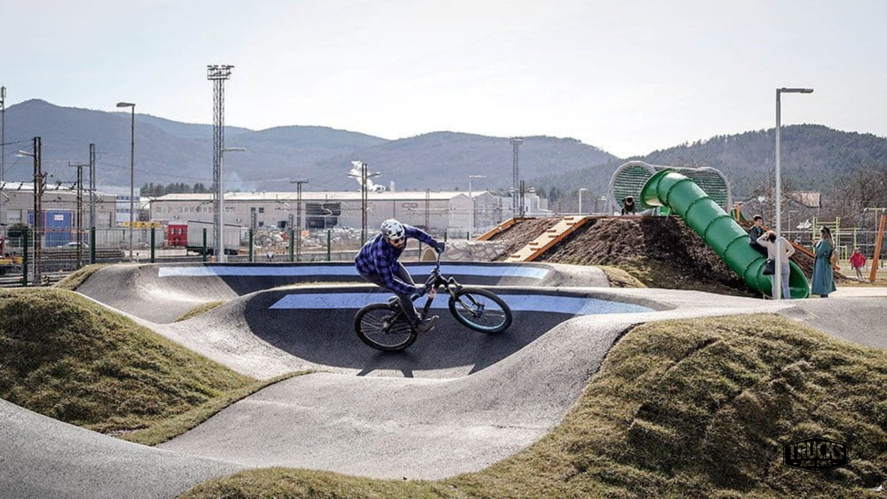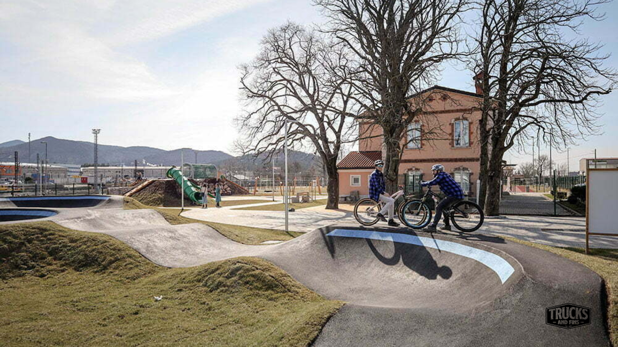 Kozina pumptrack is a 620 m² asphalt bike and skateboarding track built by Alliance ASE. The track has a paved area of 220 m².