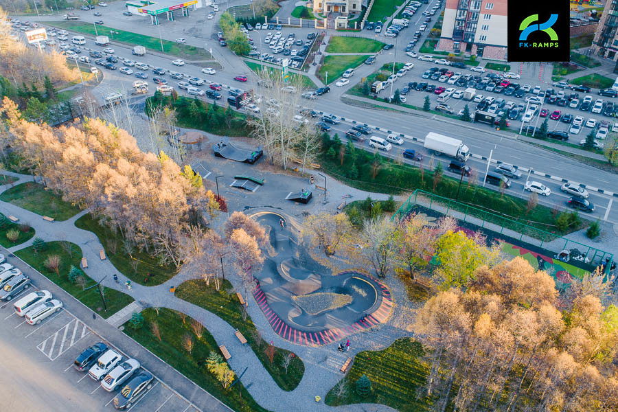 Krasnoyarsk skatepark is a wooden park built by FKramps in 2023. The skatepark features several basic obstacles in a back and forth setup and a miniramp.