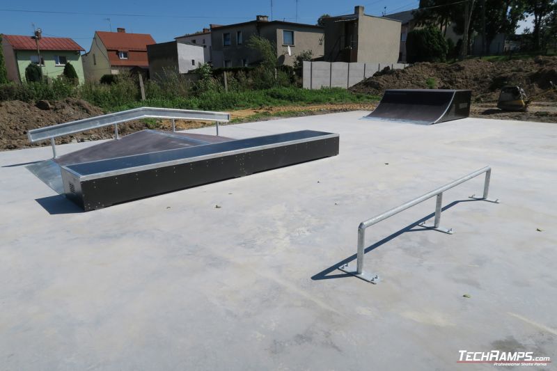 Krzanowice Skatepark is a small park with several basic skateboarding obstacles in a back and forth setup. The skatepark was built by Techramps.