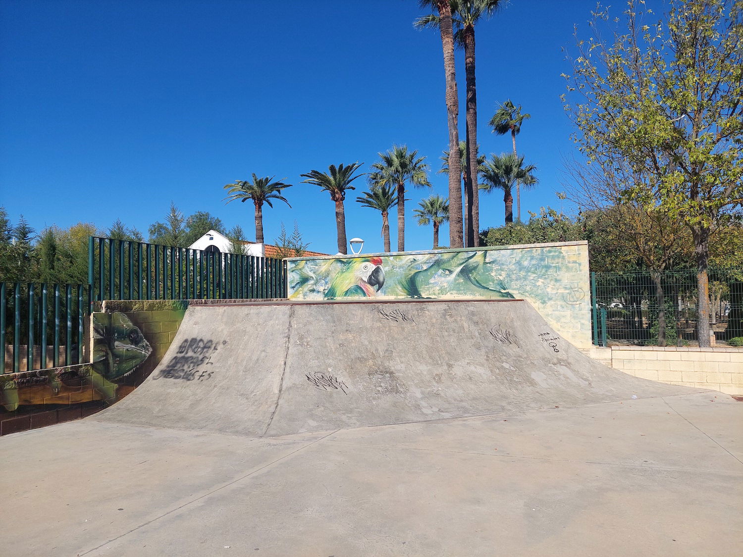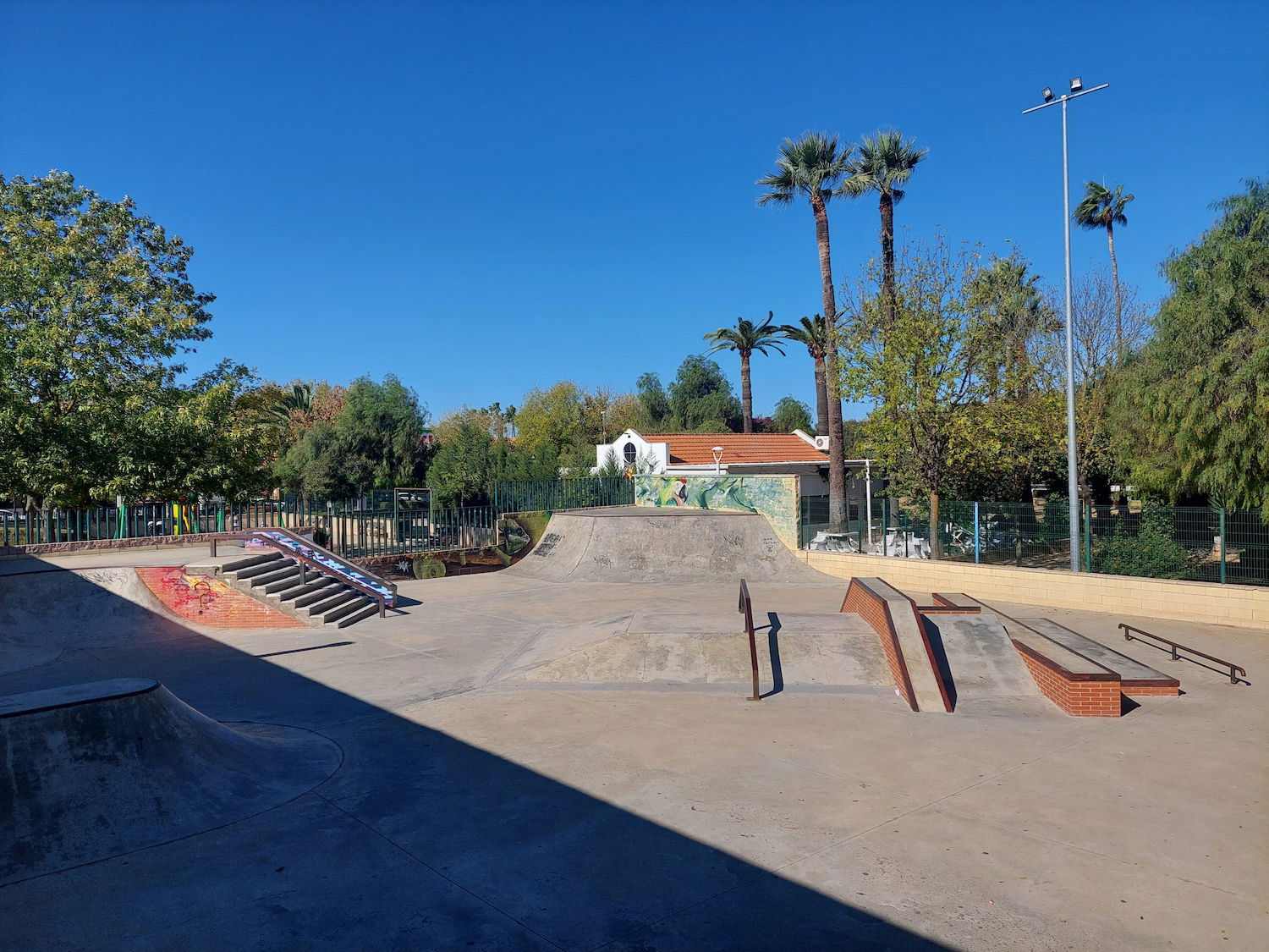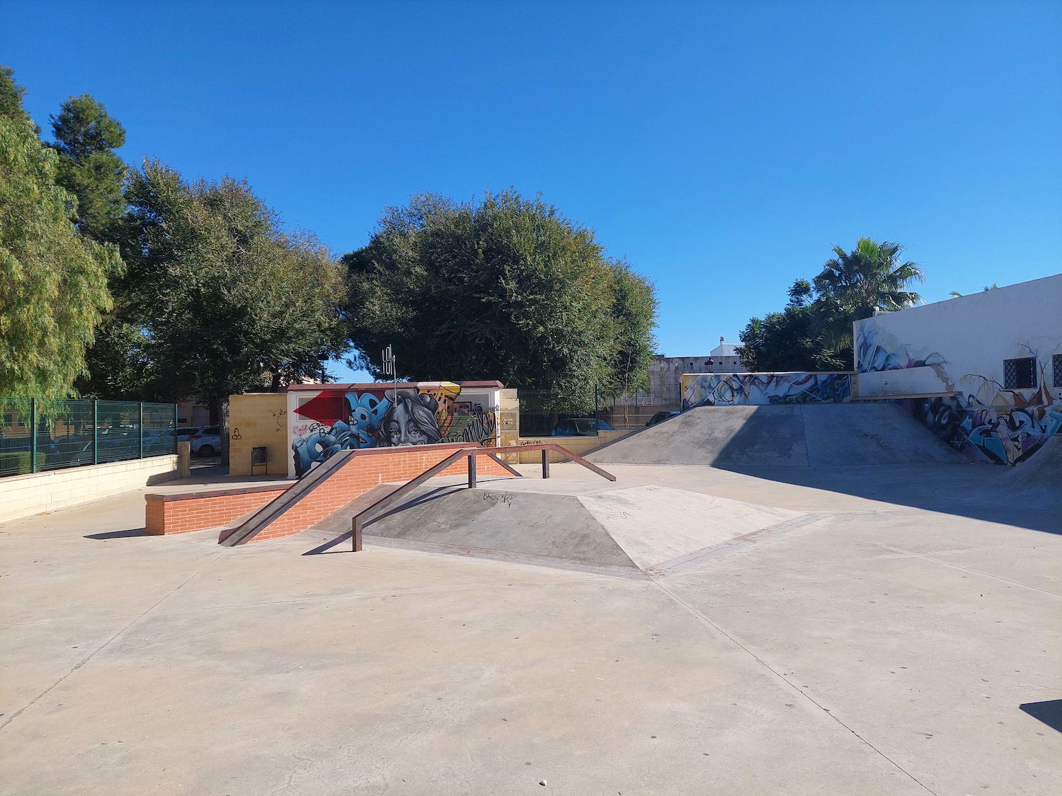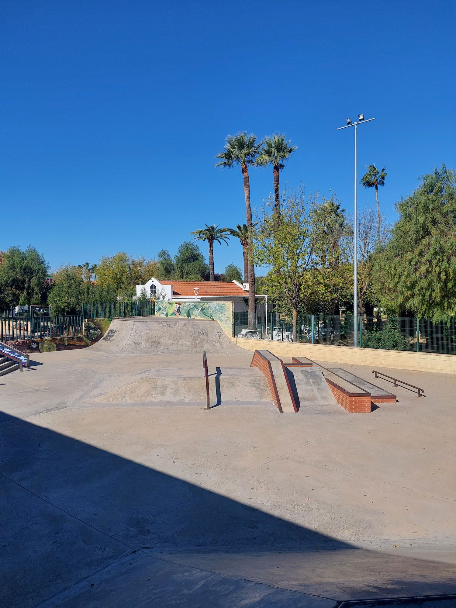La Palma del Condado skatepark is a concrete street focused park with a nice variety of obstacles.