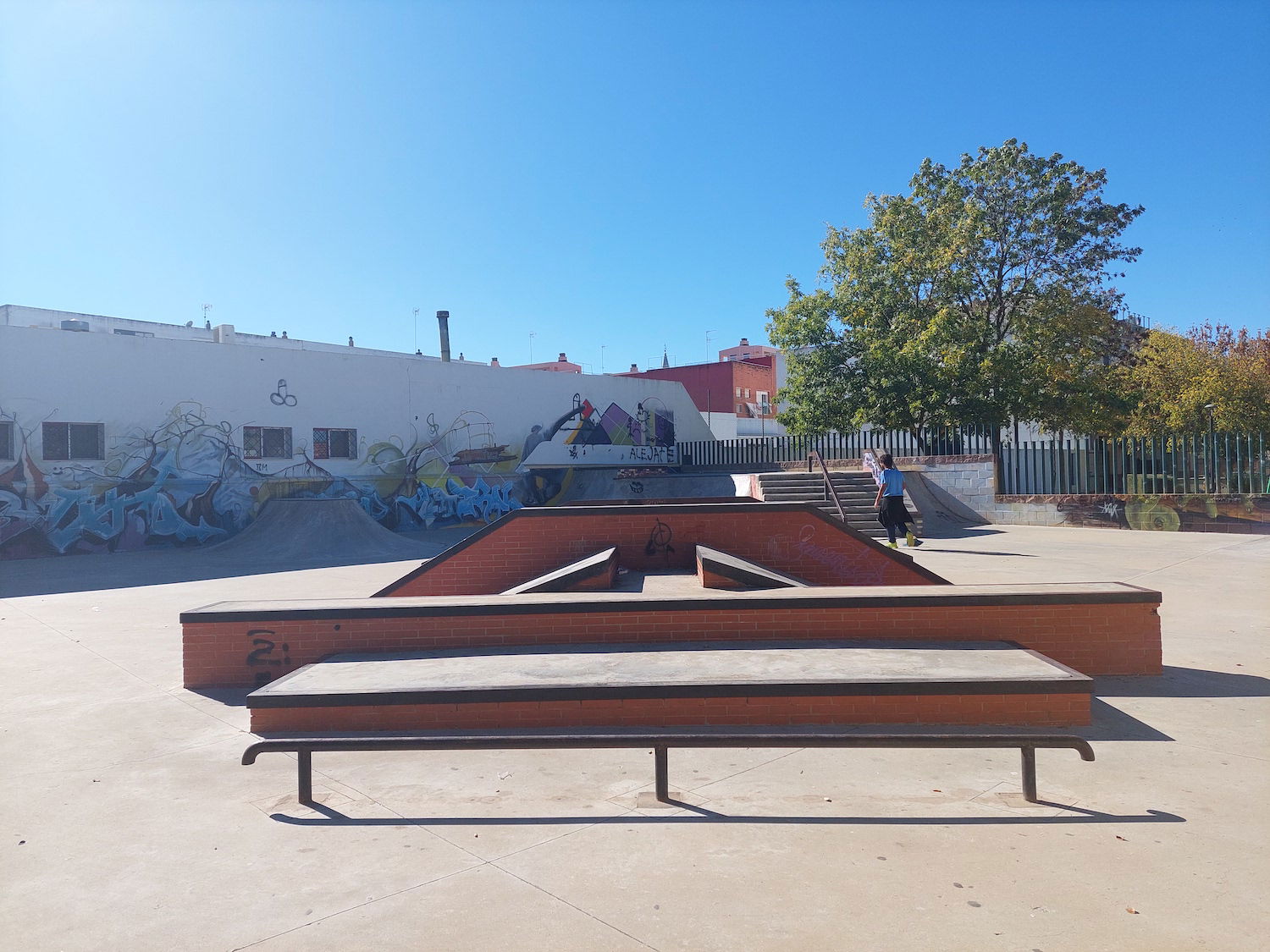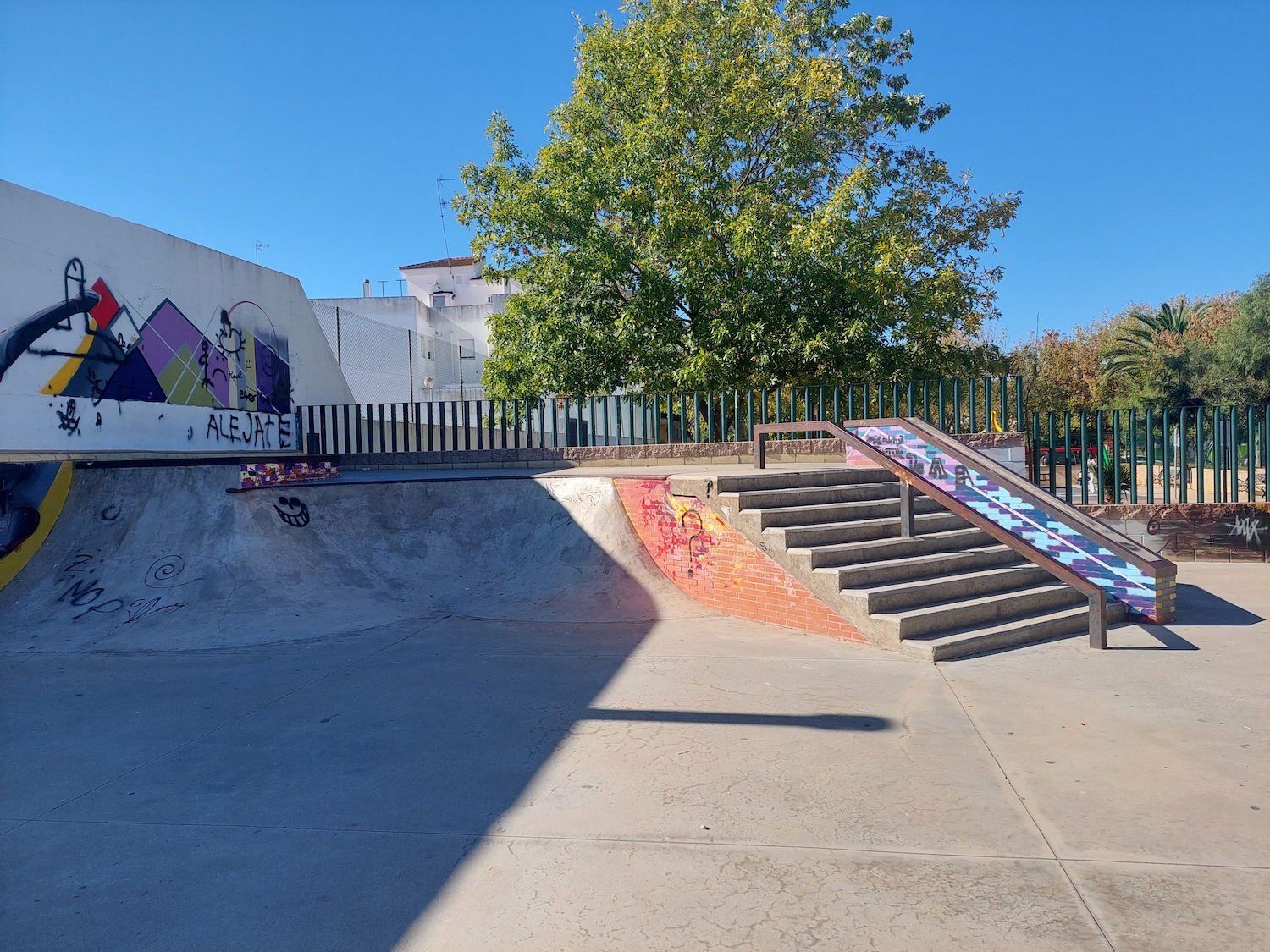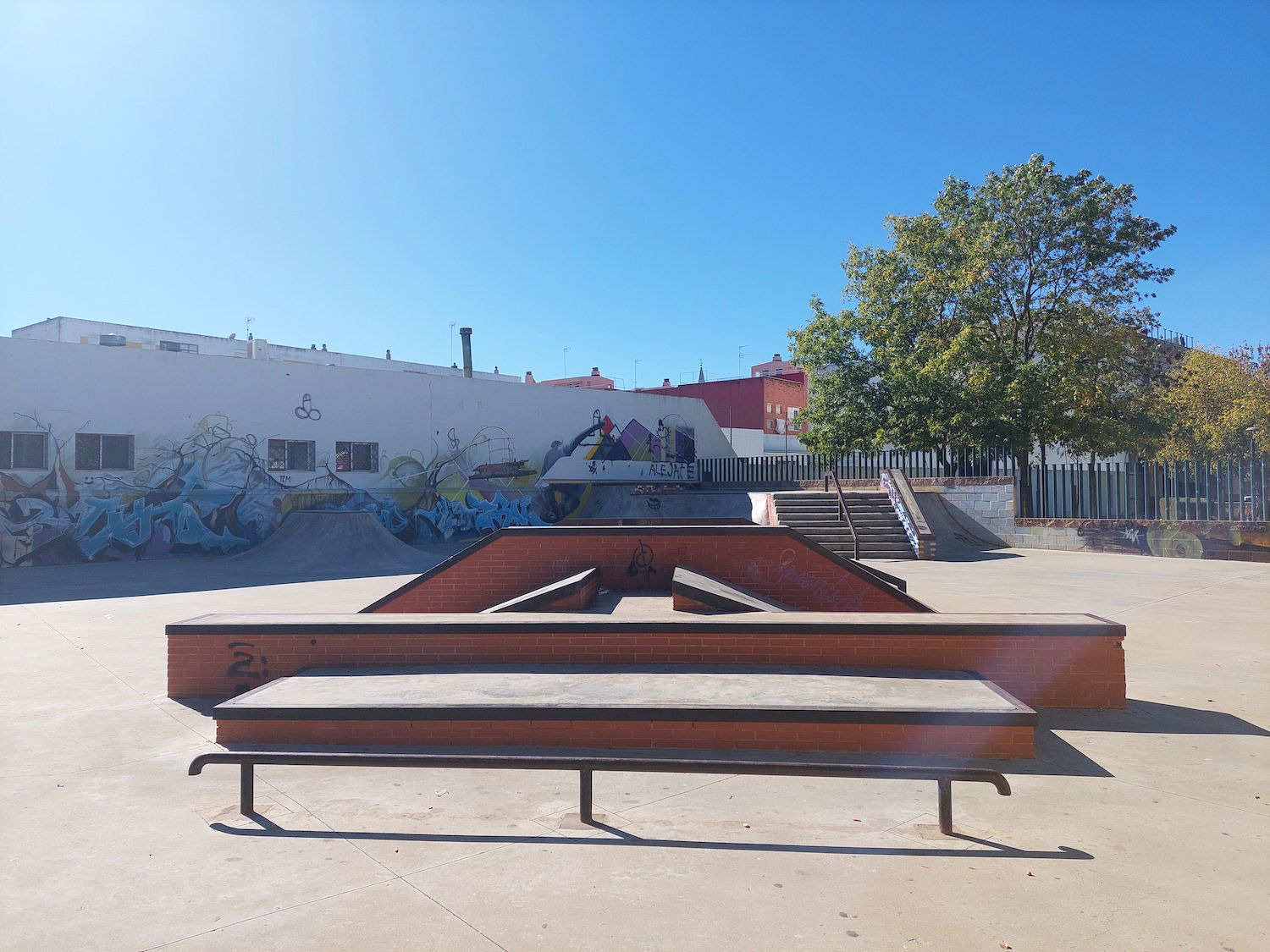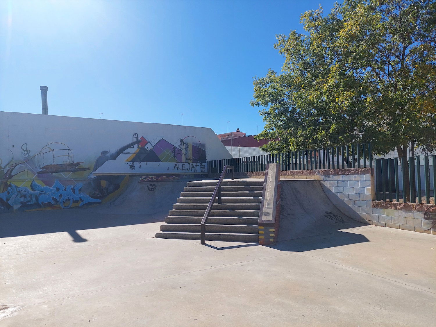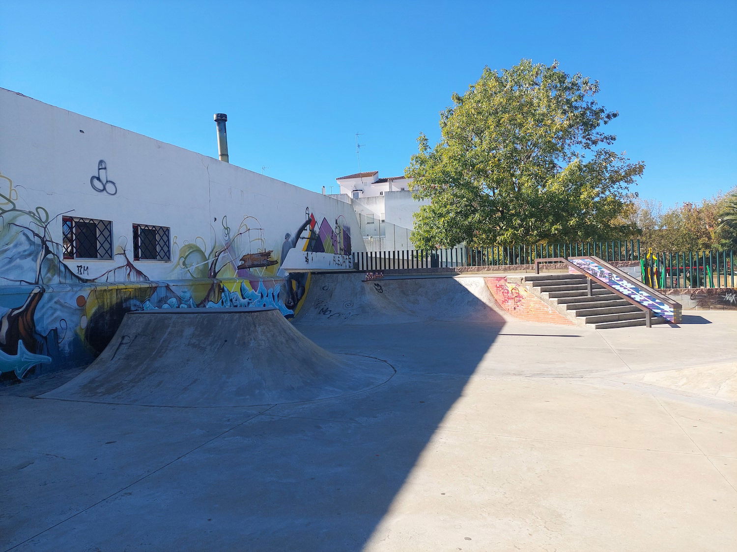 La Palma del Condado skatepark is a concrete street focused park with a nice variety of obstacles.