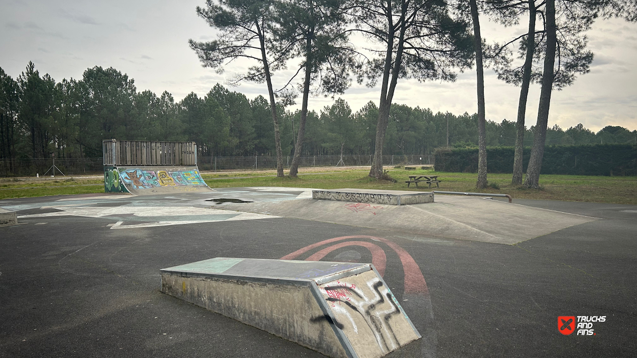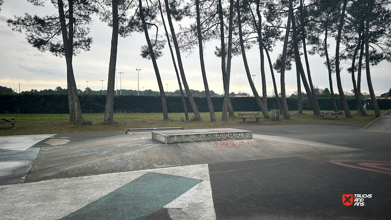 The Cazaux Skatepark, located in Cazaux, a district of La Teste-de-Buch in southwestern France, is a 600-square-meter facility designed for skateboarding and rollerblading enthusiasts. The park features six concrete modules, including simple curbs and a pyramid module topped with a manual pad, providing a variety of obstacles suitable for different skill levels.