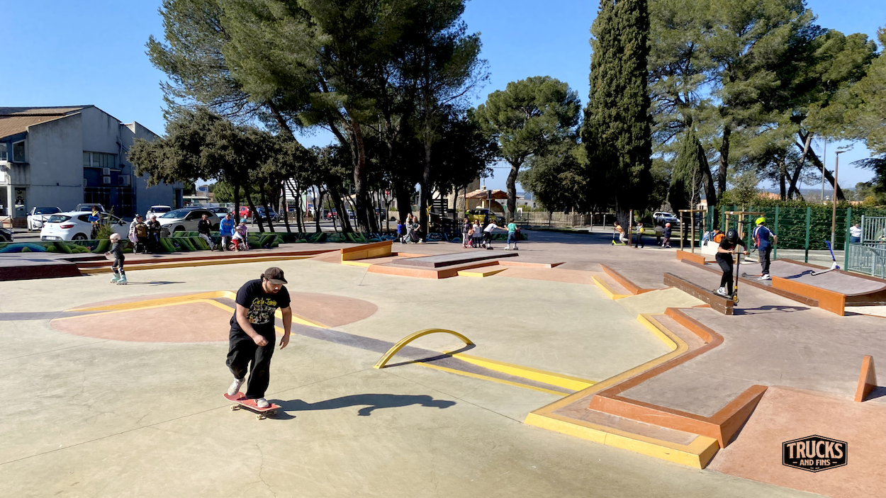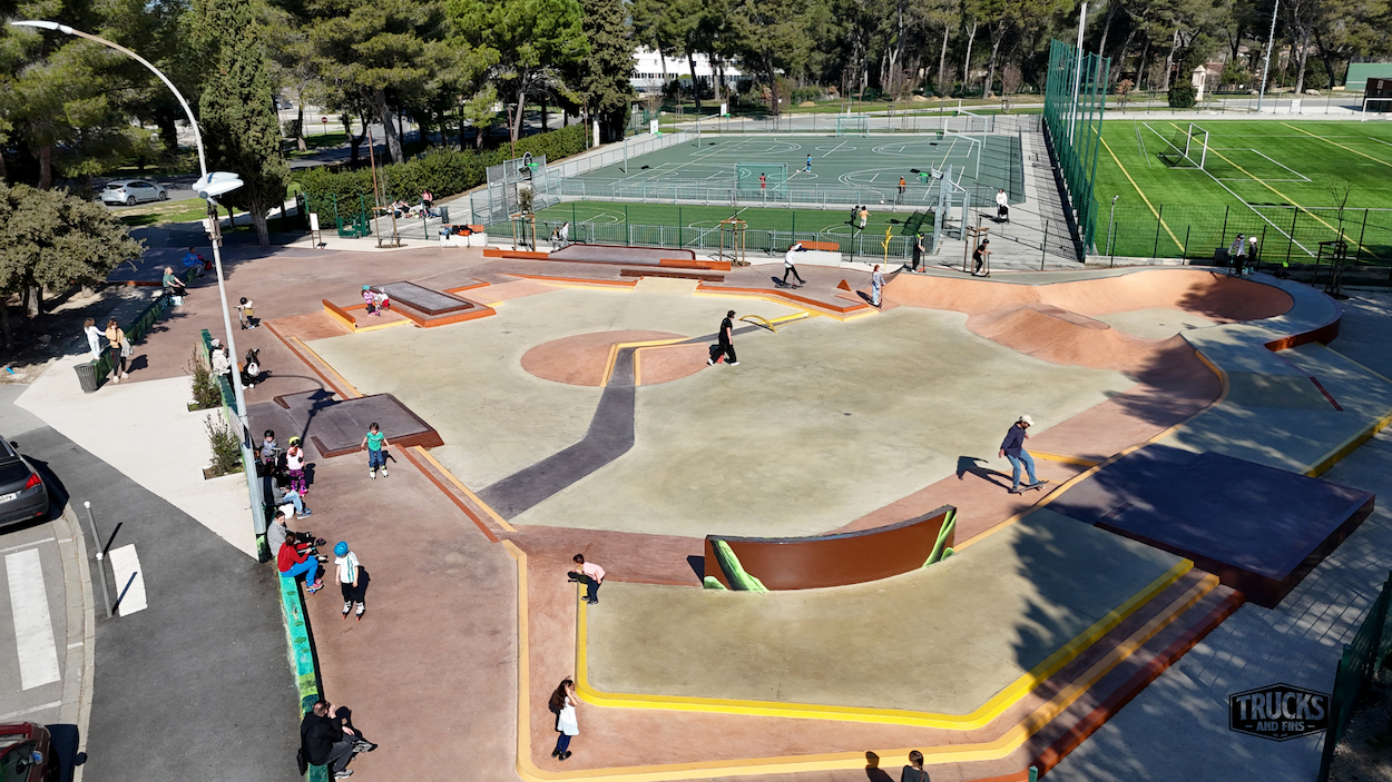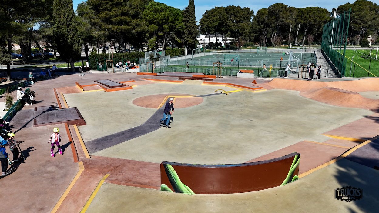 The Lambesc skatepark is a 980-square-meter facility designed for various wheeled sports enthusiasts. Construction was completed in May 2024, with the park officially opening on May 31, 2024. The project was undertaken by Constructo skateparks (design) and Territoire Skatepark (cosntruction), a subsidiary of Groupe SOLS, established in 2016. Specializing in the creation and renovation of action sports facilities, Territoire Skatepark has been involved in numerous projects across the region.