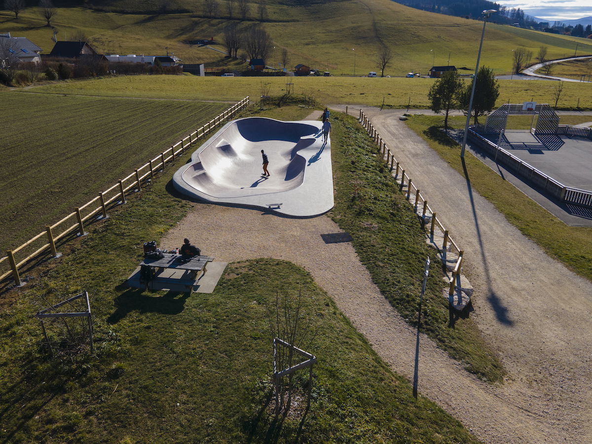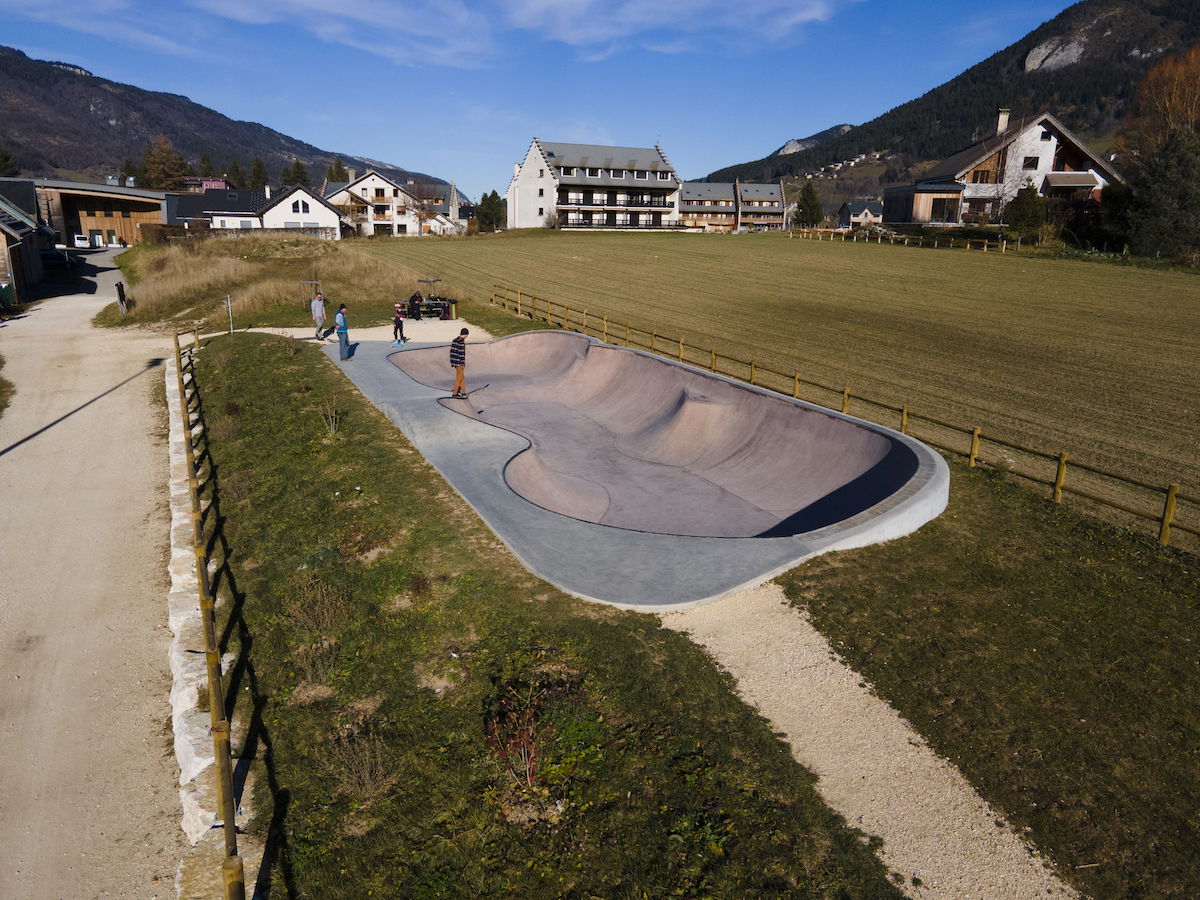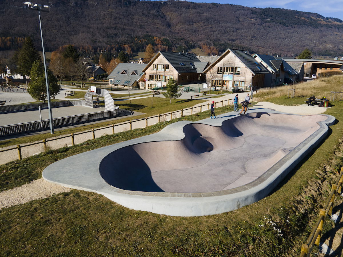 Lans-en-Vercors Skatepark, located in Lans-en-Vercors, Isère, France, is a modern concrete facility built in 2020. The skatepark features a bowl with a depth of 1.8 meters, equipped with metal coping and double hips, catering to skaters of various skill levels. The main feature is a bowl with a depth of 1.8 meters, including double hips, providing a versatile environment for skaters to practice transitions and tricks. The skatepark is situated near the Maison des Sports and tennis courts, making it easily accessible for both locals and visitors.