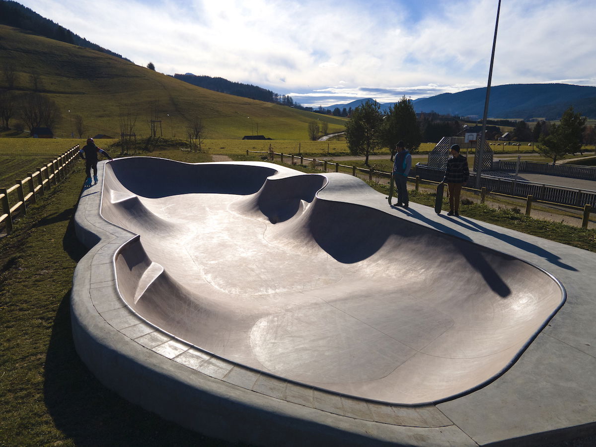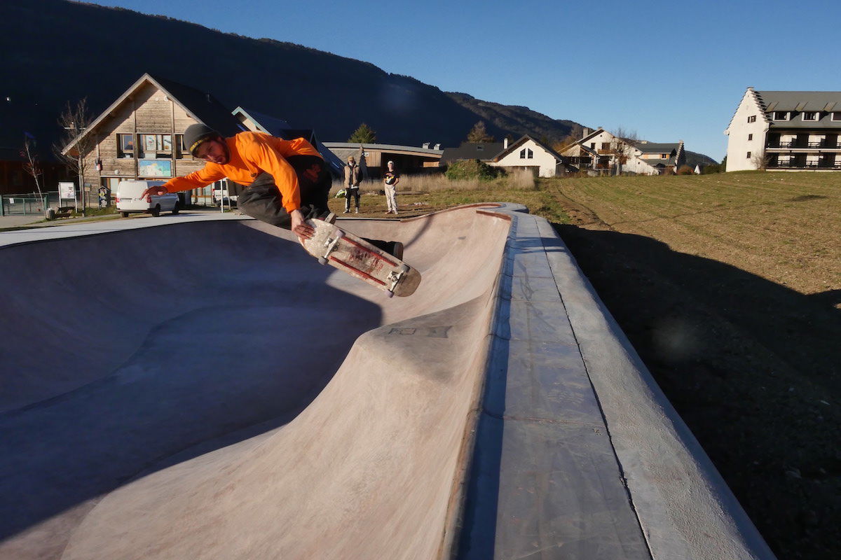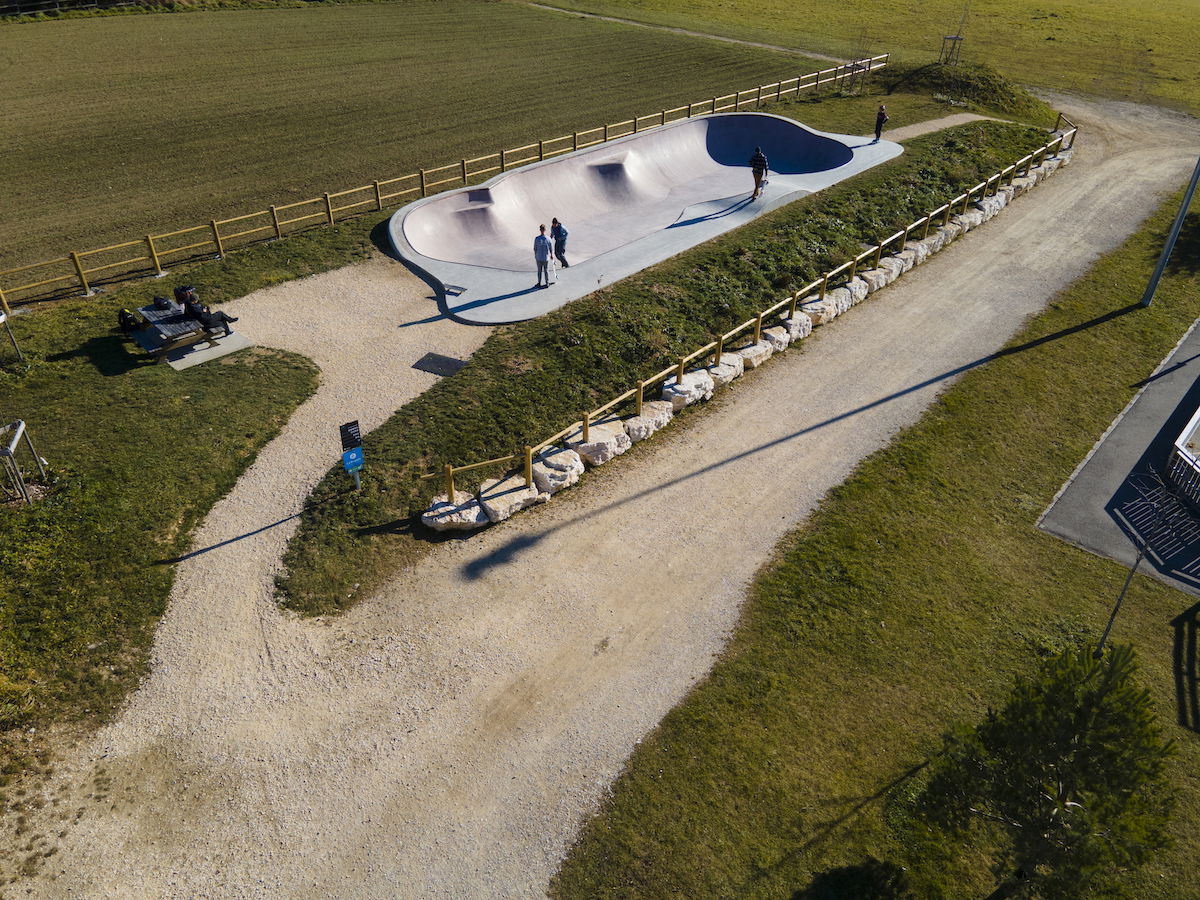 Lans-en-Vercors Skatepark, located in Lans-en-Vercors, Isère, France, is a modern concrete facility built in 2020. The skatepark features a bowl with a depth of 1.8 meters, equipped with metal coping and double hips, catering to skaters of various skill levels. The main feature is a bowl with a depth of 1.8 meters, including double hips, providing a versatile environment for skaters to practice transitions and tricks. The skatepark is situated near the Maison des Sports and tennis courts, making it easily accessible for both locals and visitors.