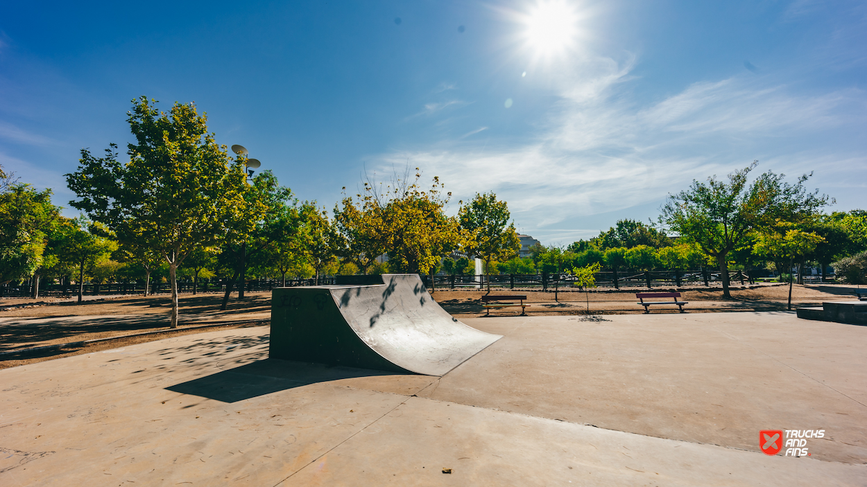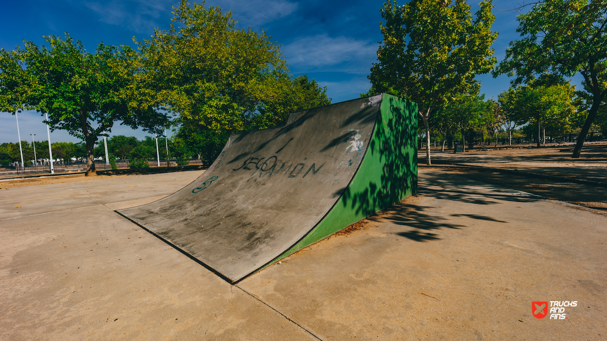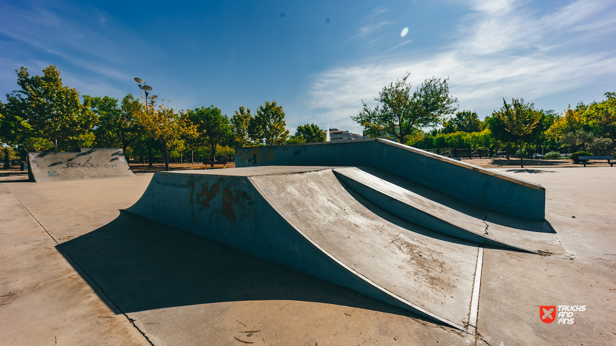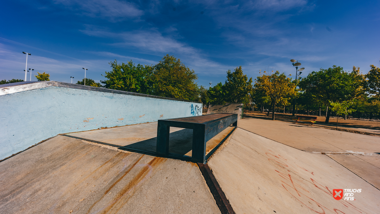 Las Albercas skatepark is a small park with several basic skateboarding obstacles.