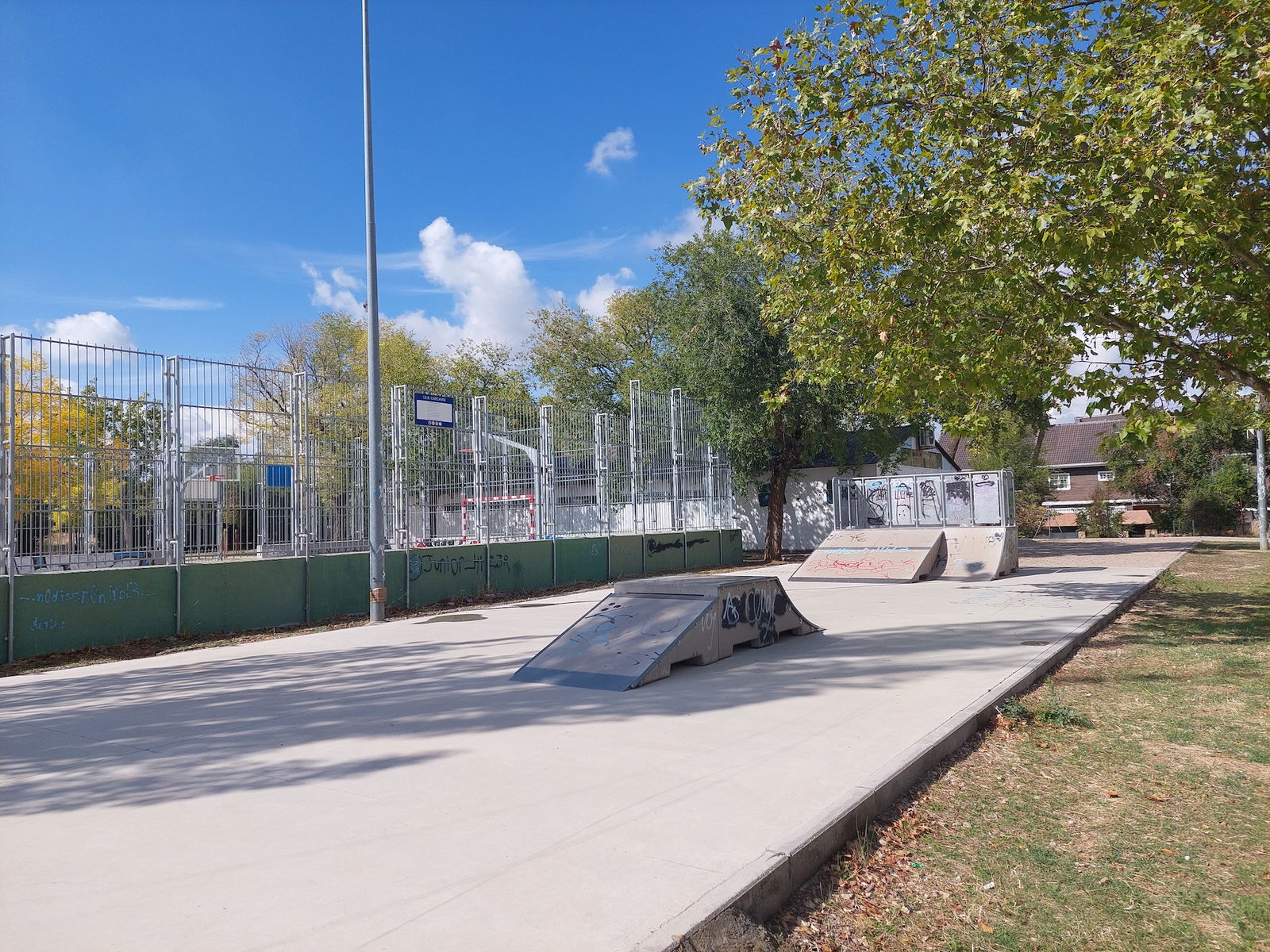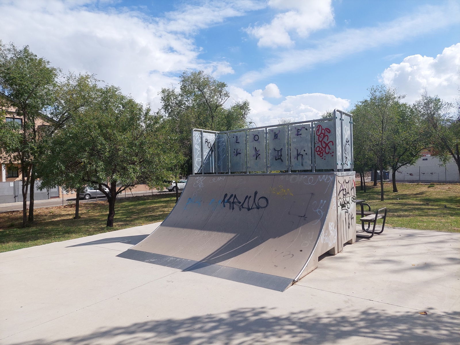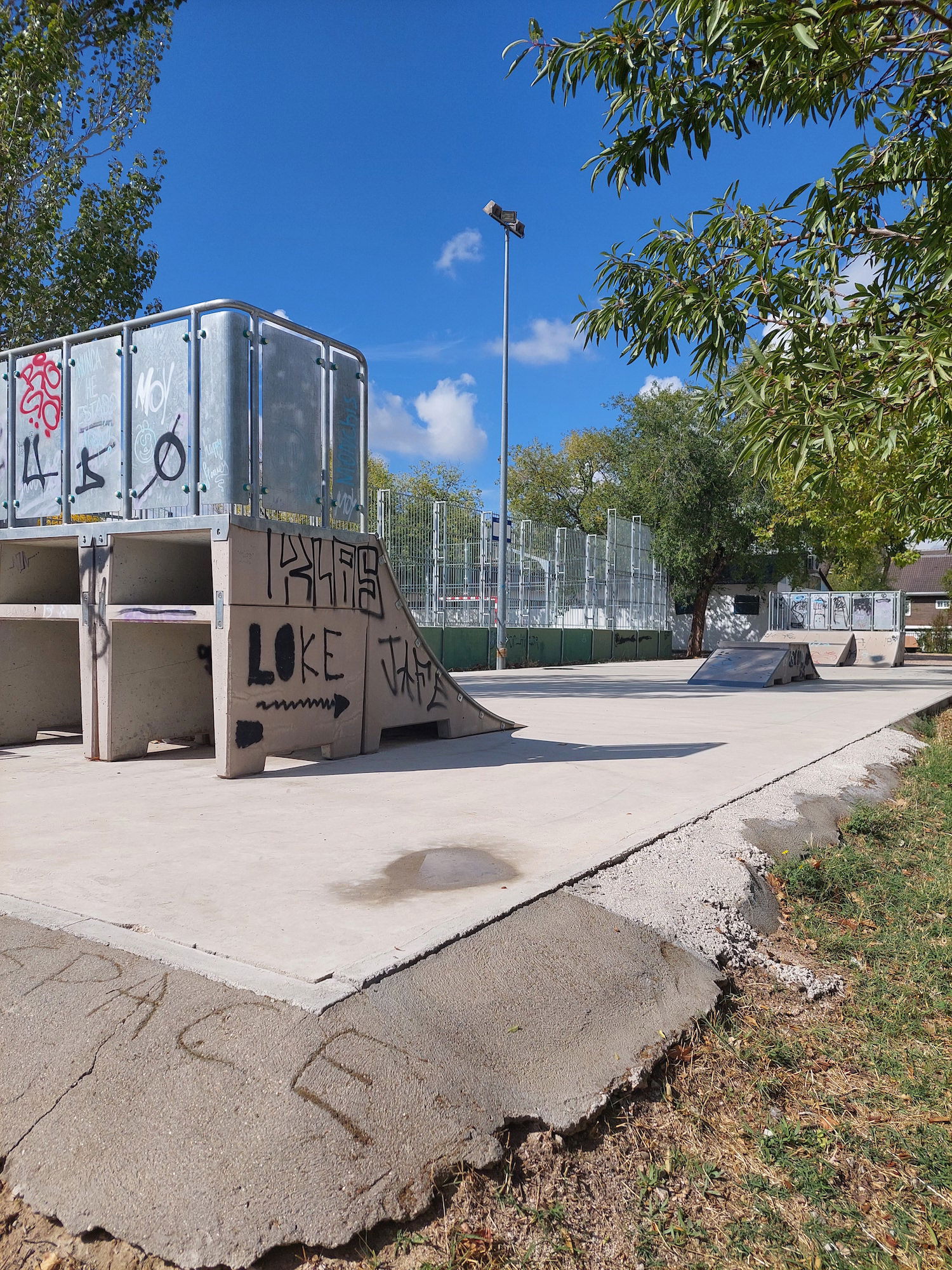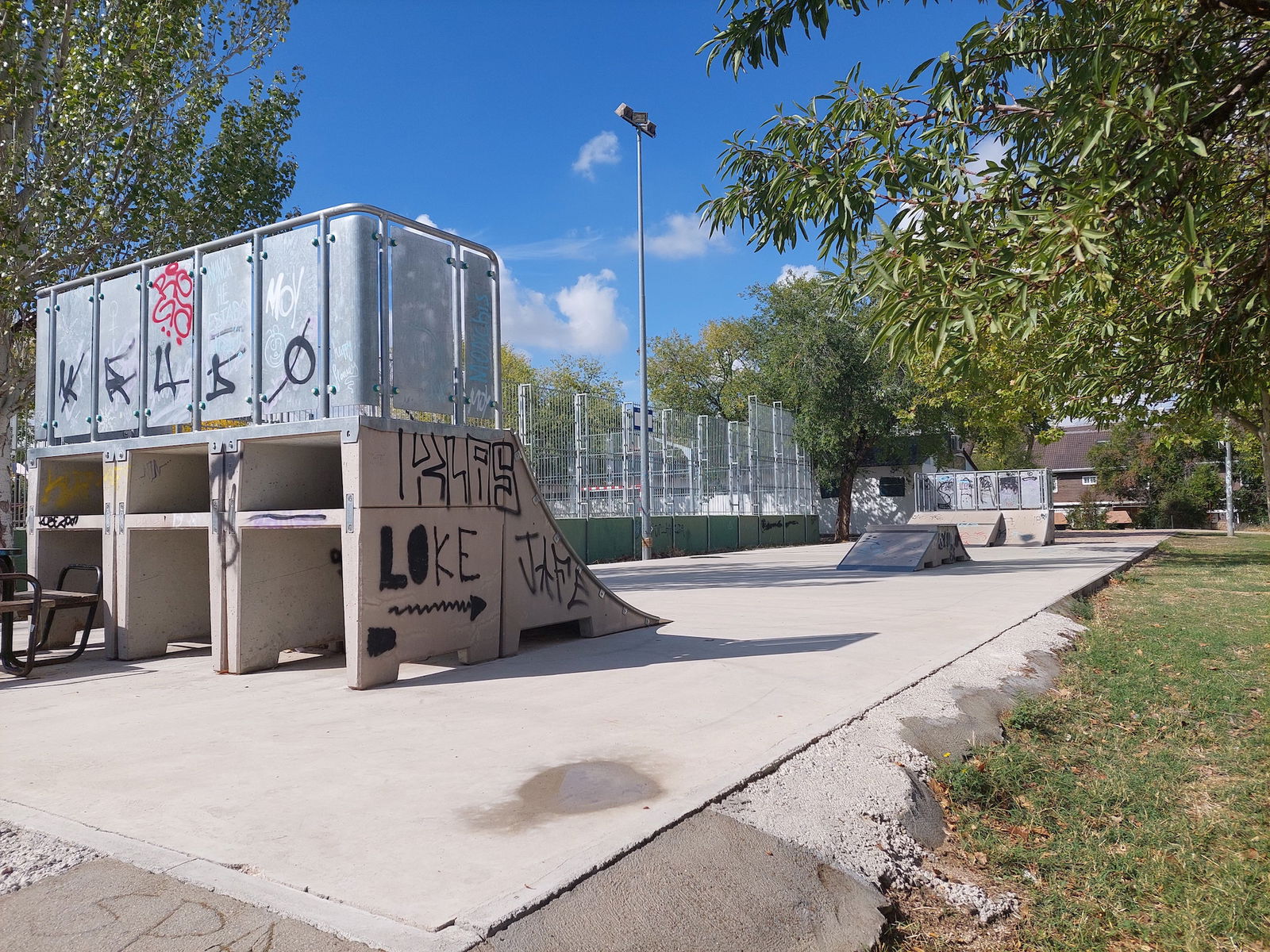 Las Carcavas skatepark is a small park with several basic skateboarding obstacles in a back and forth setup.