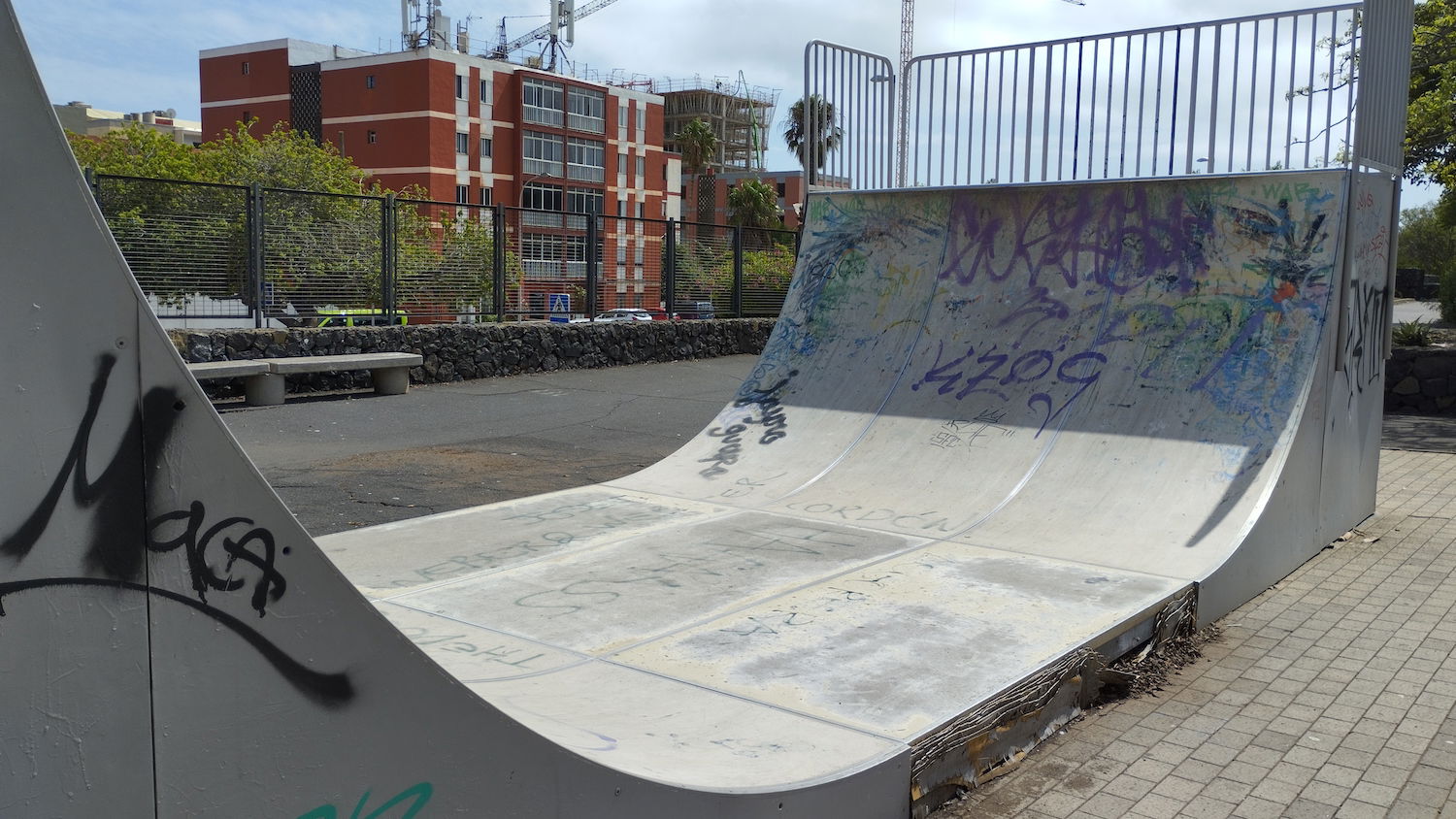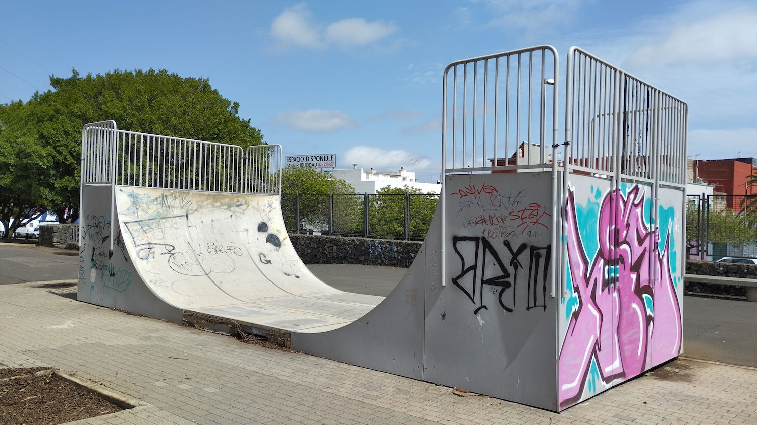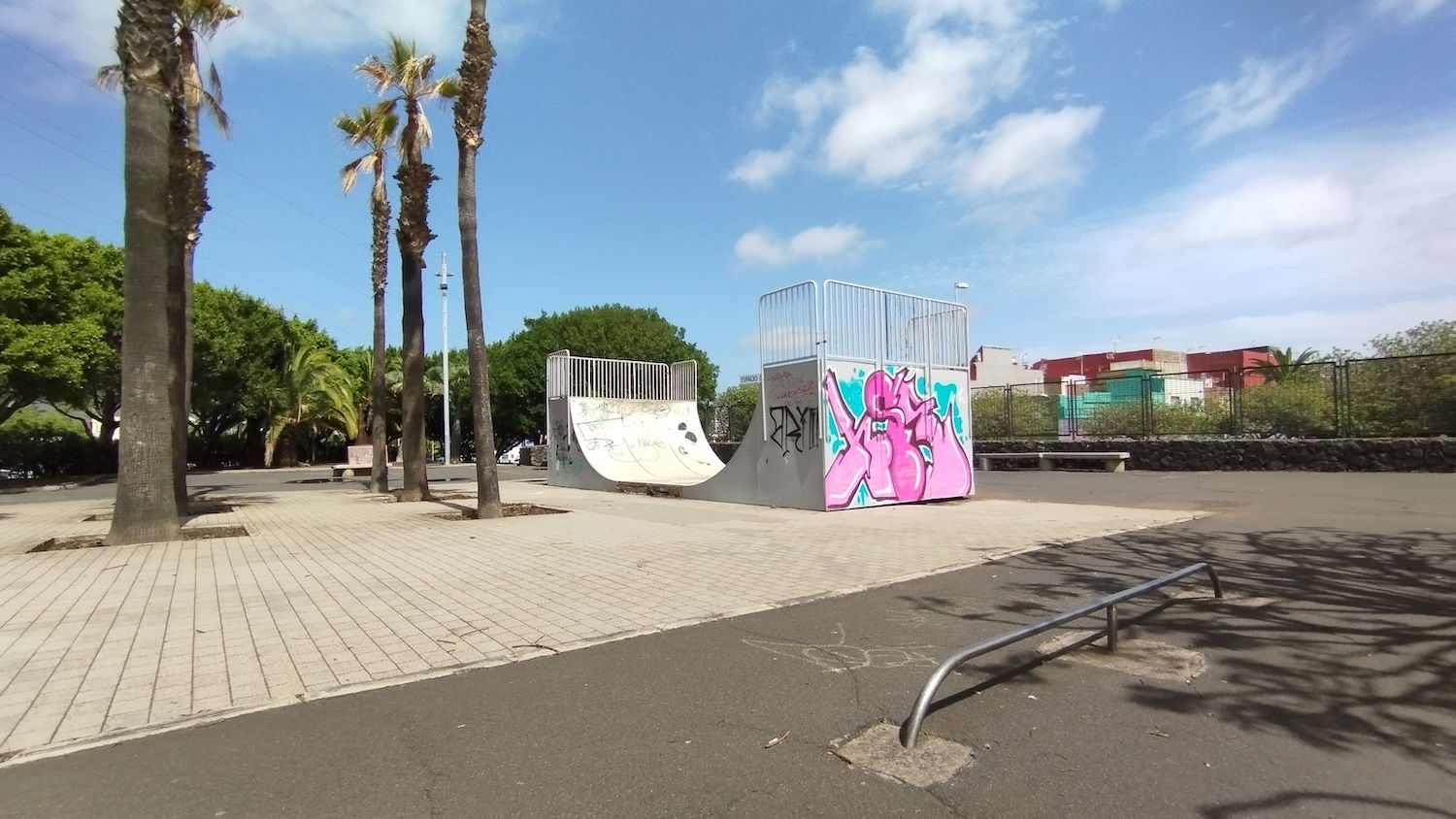 Las Chumberas skatepark is made up of a miniramp and several street elements are around.