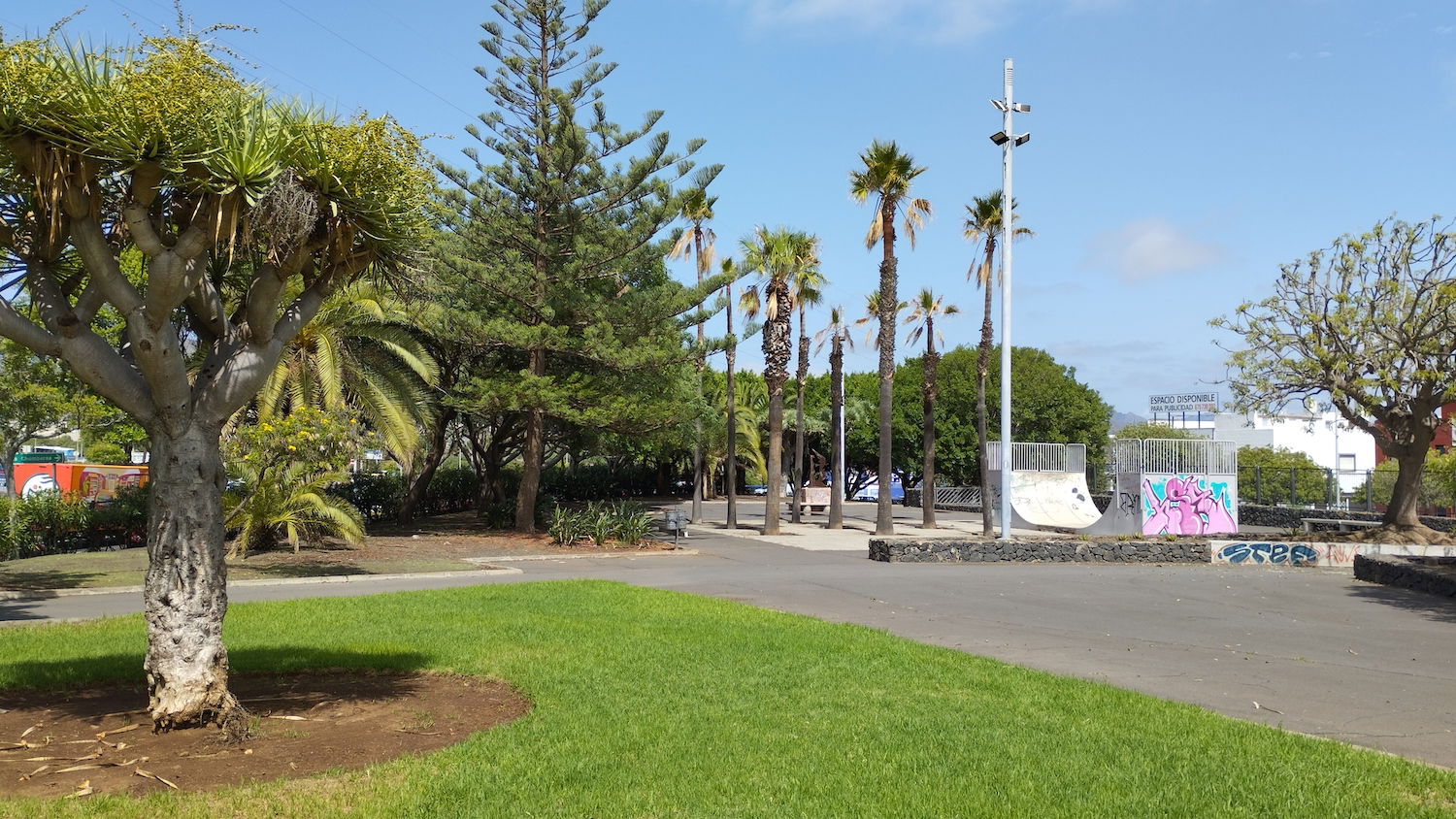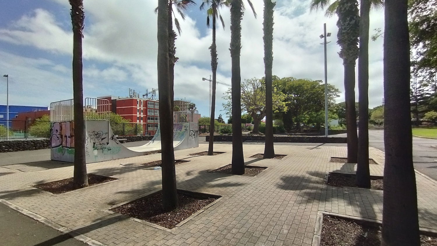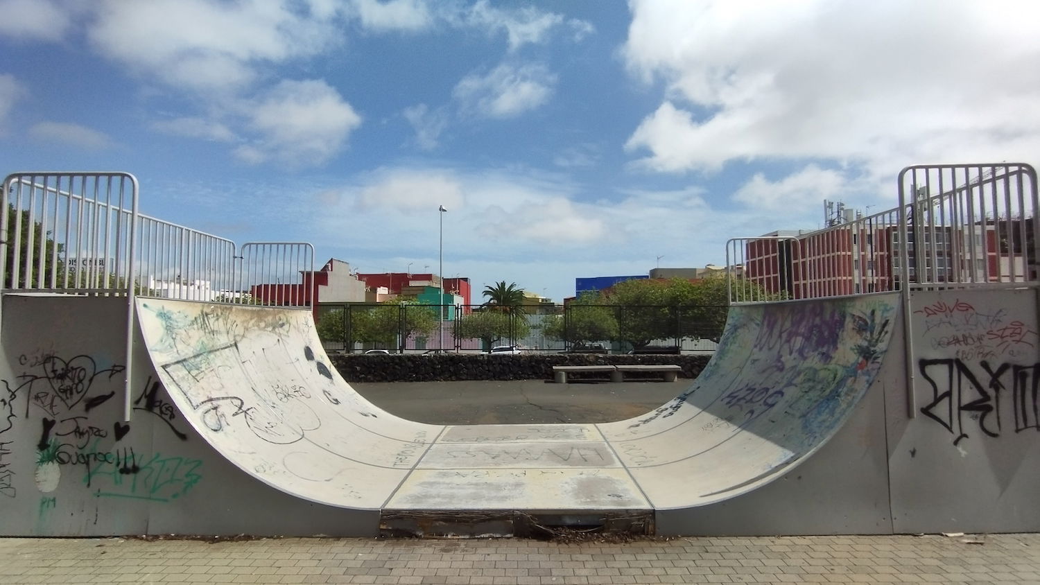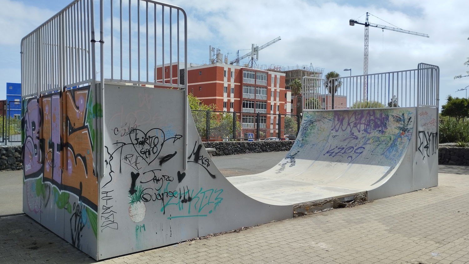 Las Chumberas skatepark is made up of a miniramp and several street elements are around.