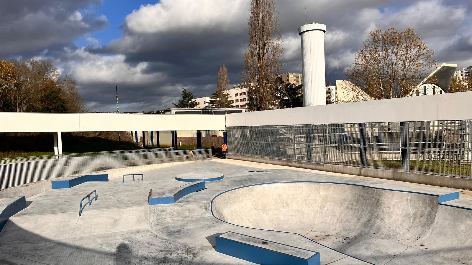 Le Petit-Quevilly skatepark is a concrete park made up of a bowl and street section. The skatepark was built by IOSkateparks.