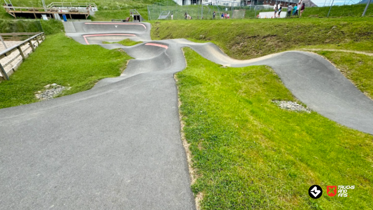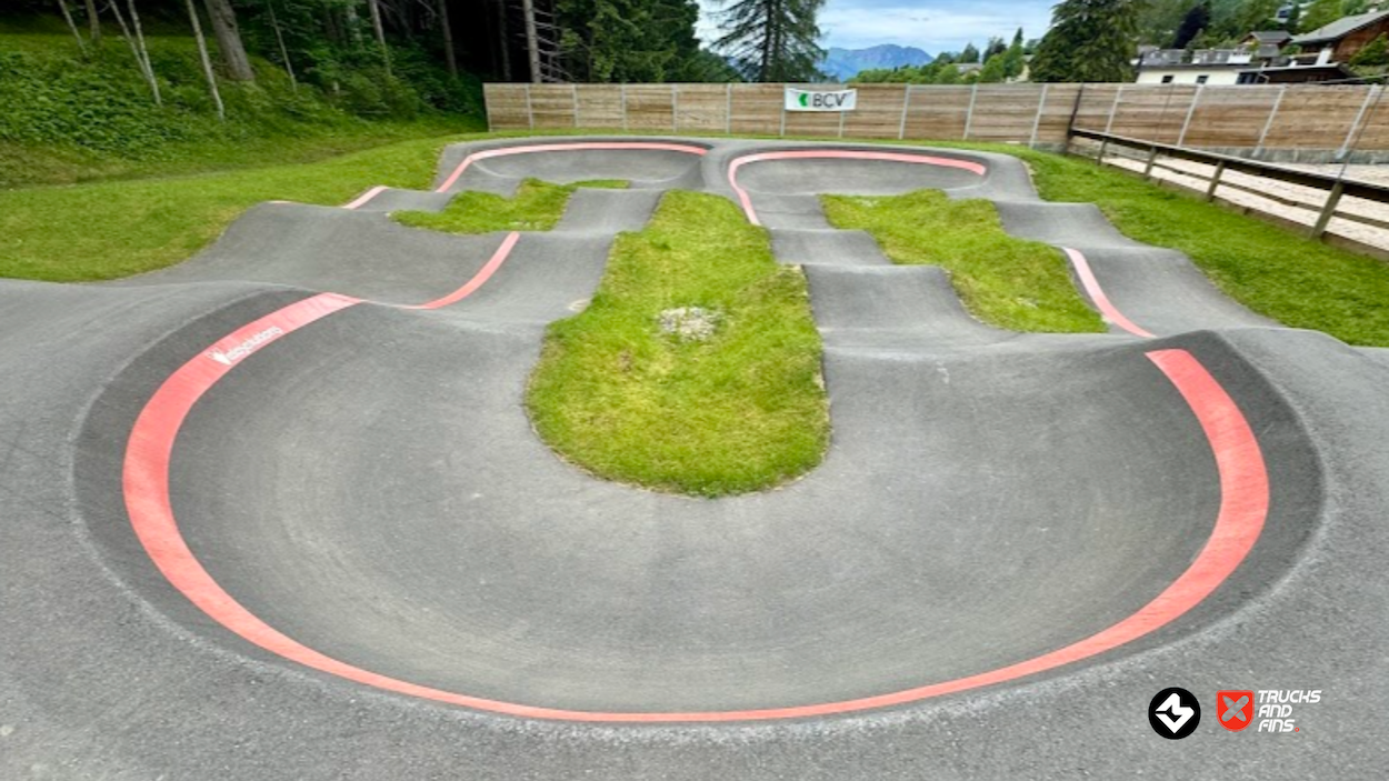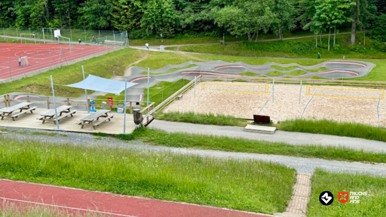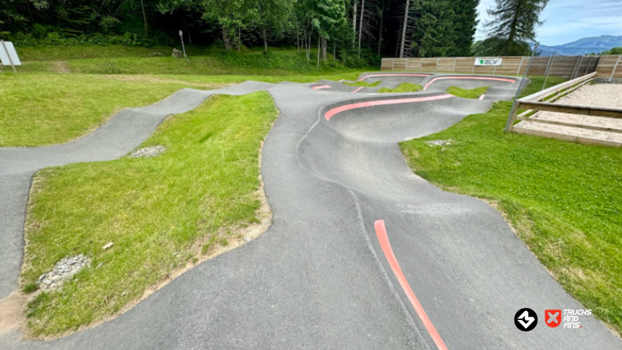 Leysin pumptrack is an asphalt bike and skateboard track built by Velosolutions. You also have a wooden miniramp next to the pumptrack.