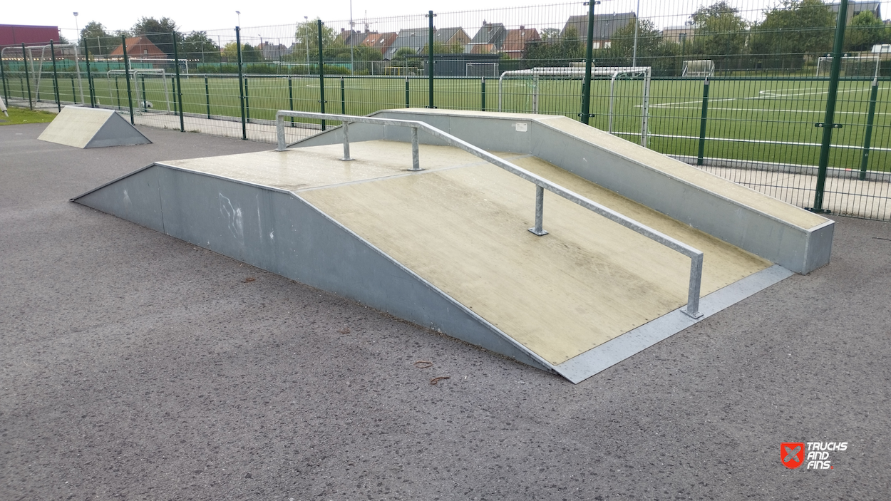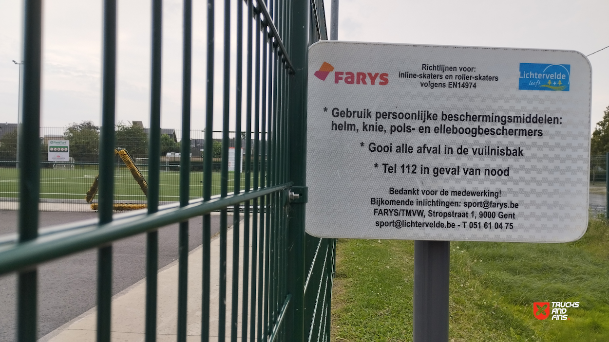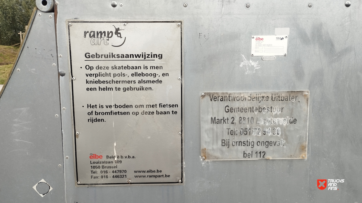 Lichtervelde skatepark features a miniramp and several basic skateboarding obstacles.