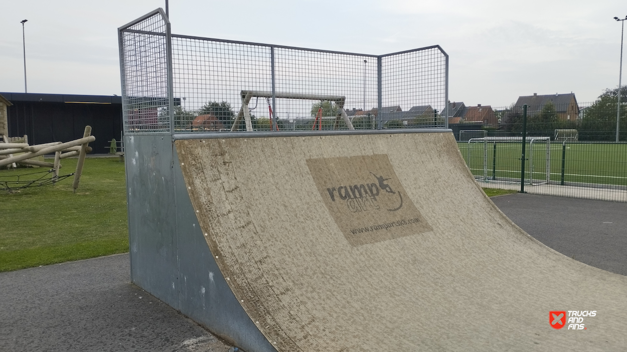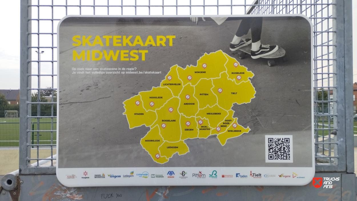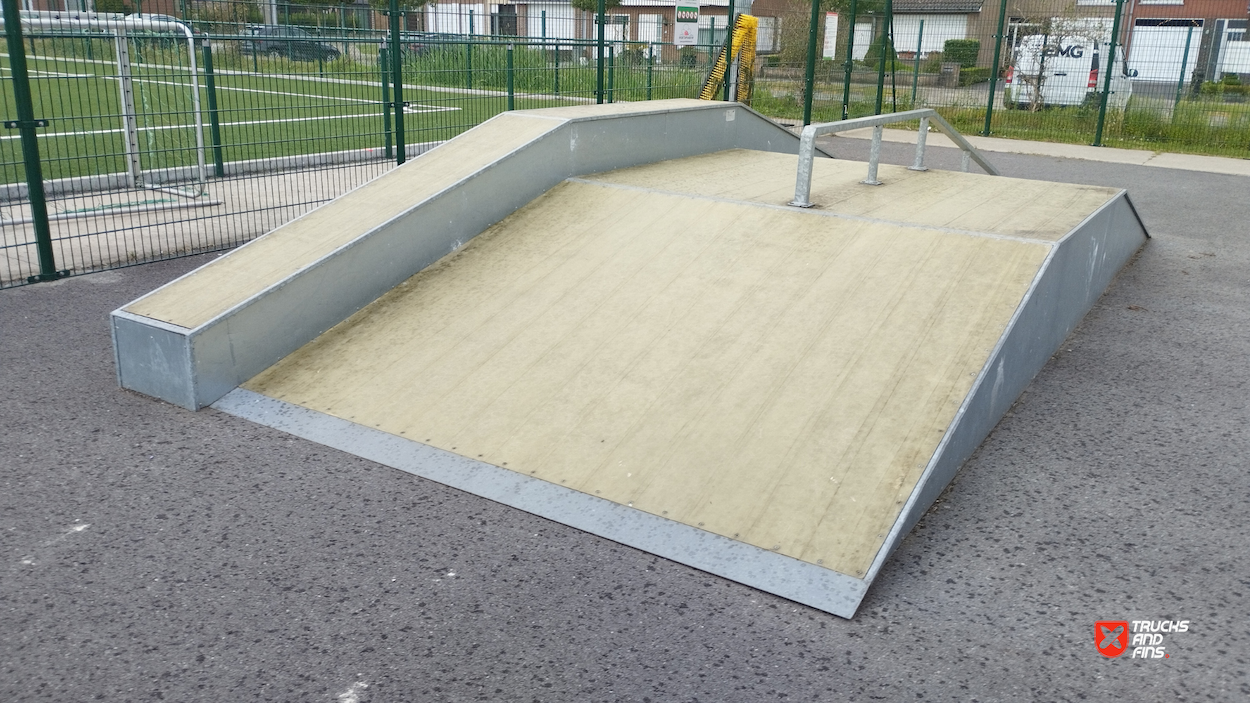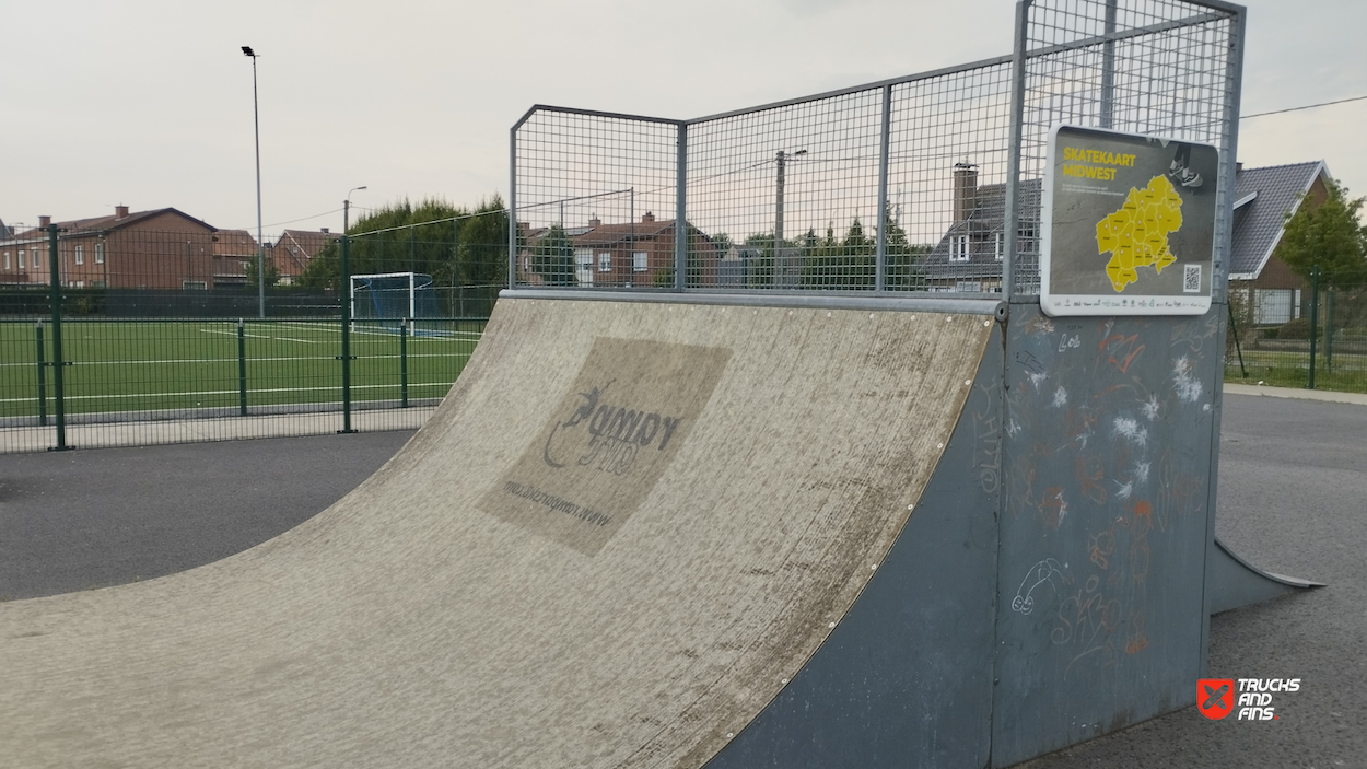 Lichtervelde skatepark features a miniramp and several basic skateboarding obstacles.