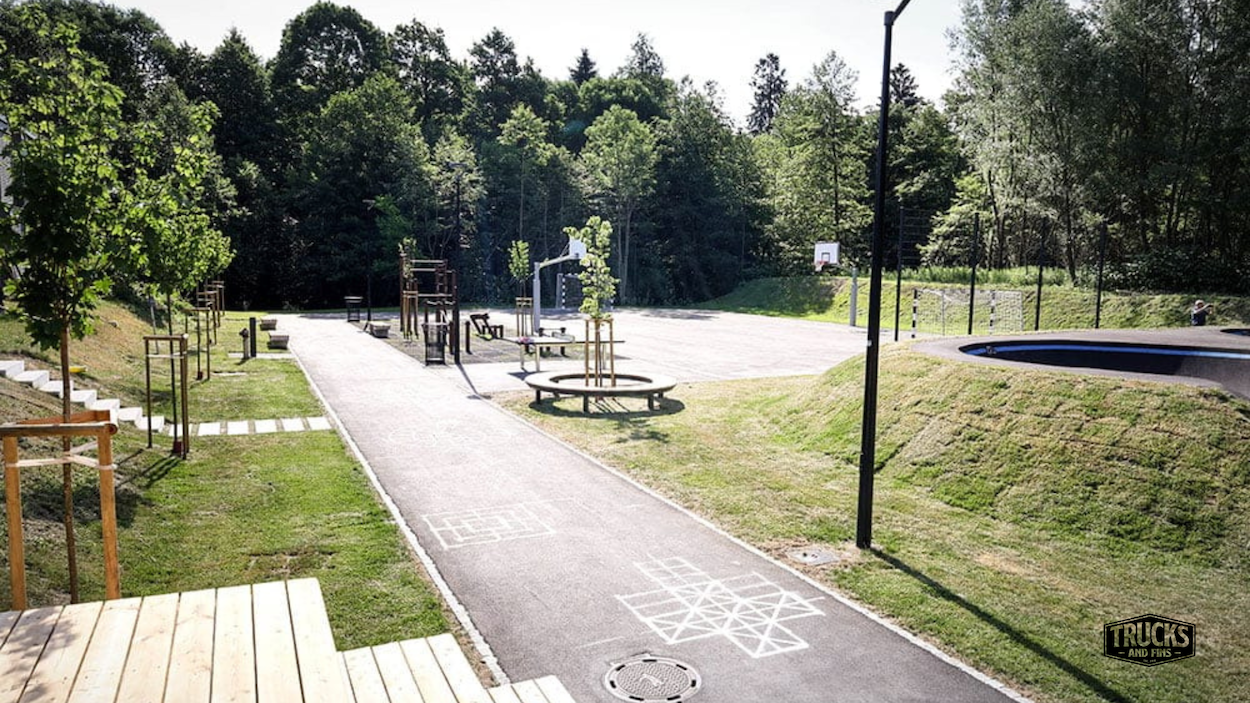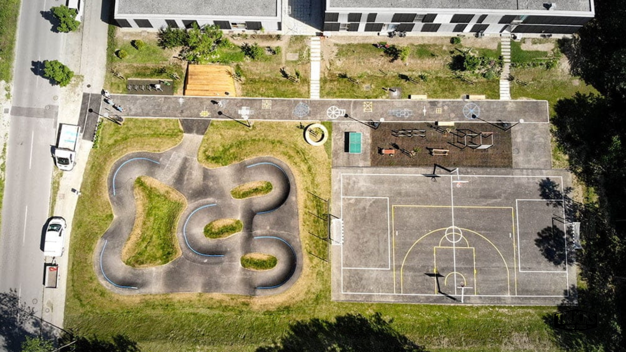 Ljubljana pumptrack is a 630 m² asphalt bike and skateboarding track built by Alliance ASE. The track has a paved area of 320 m².