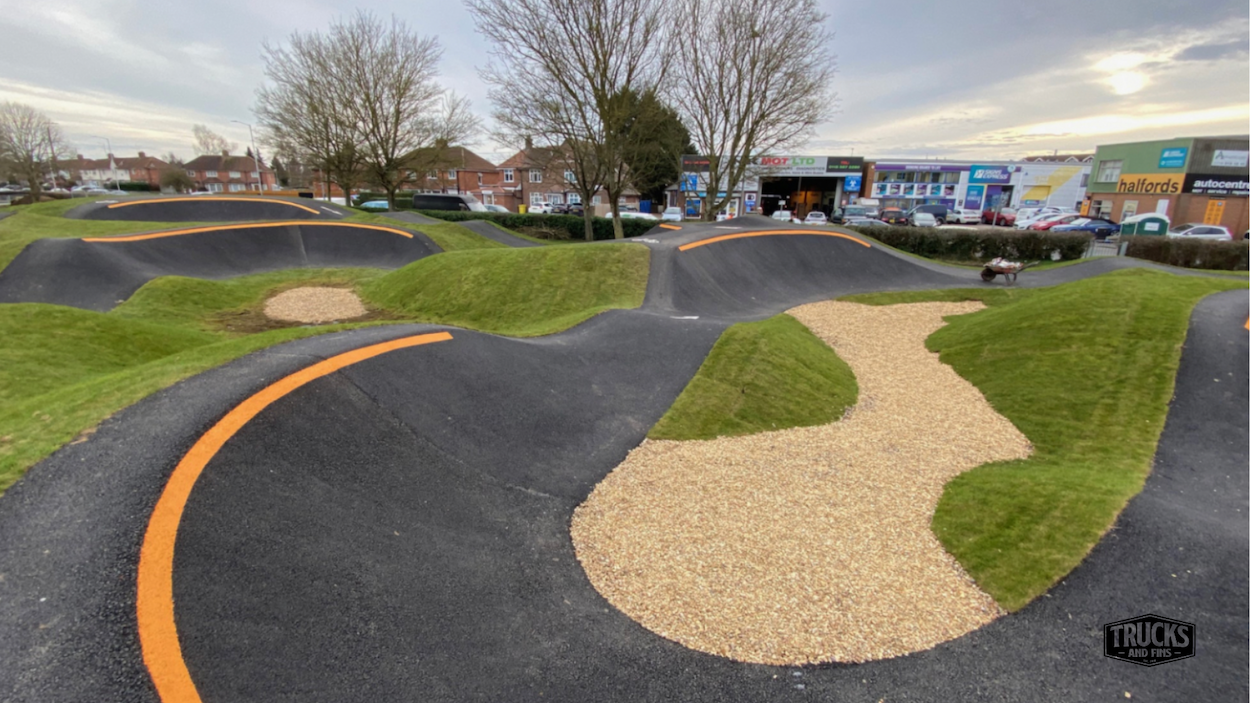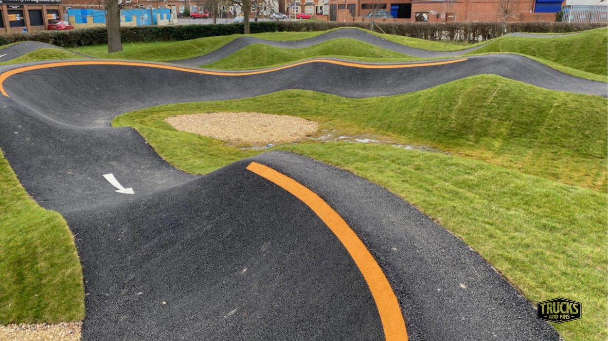Long Barn pumptrack  is an asphalt bike and skateboarding track built by Clark & Kent contractors.