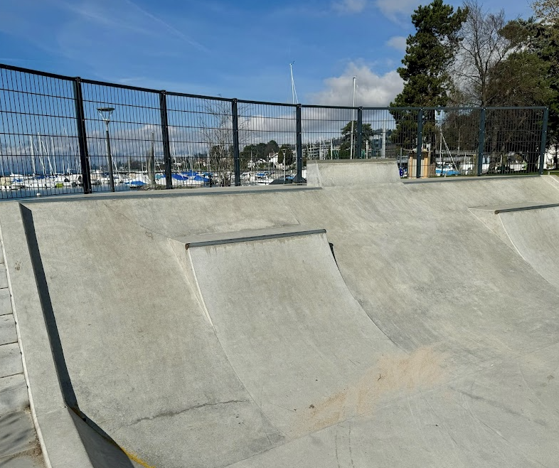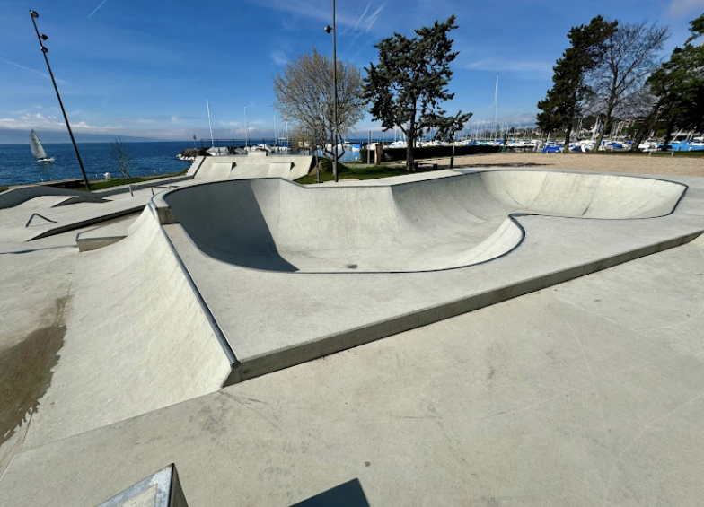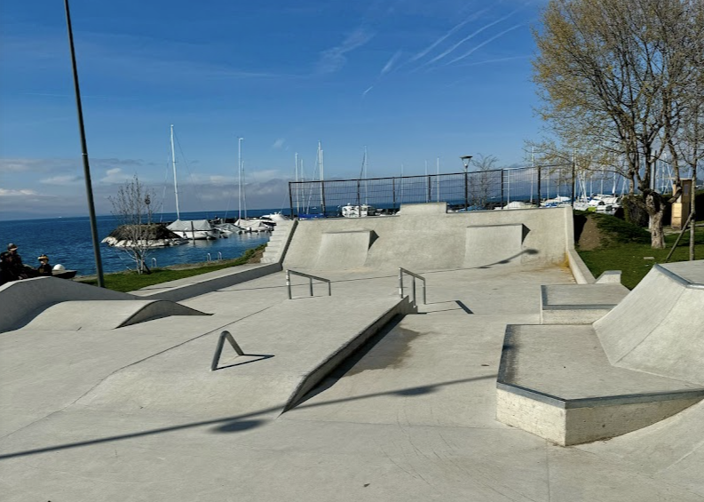 Skatepark de Lutry is a concrete park featuring a bowl and a street section with a nice variety of obstacles.
