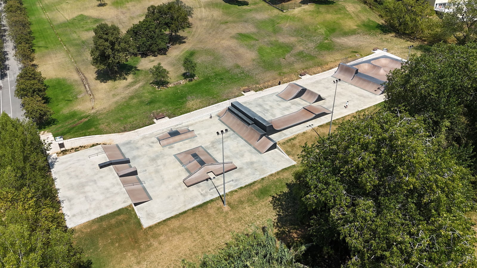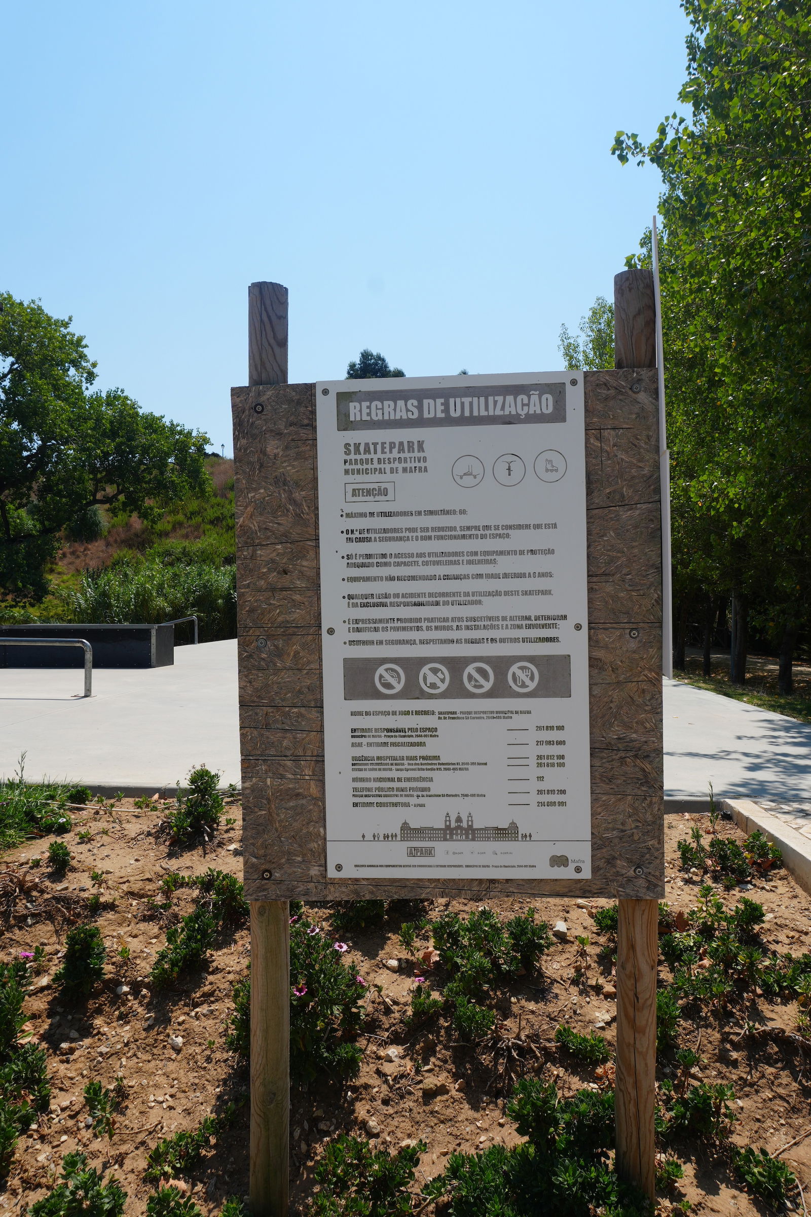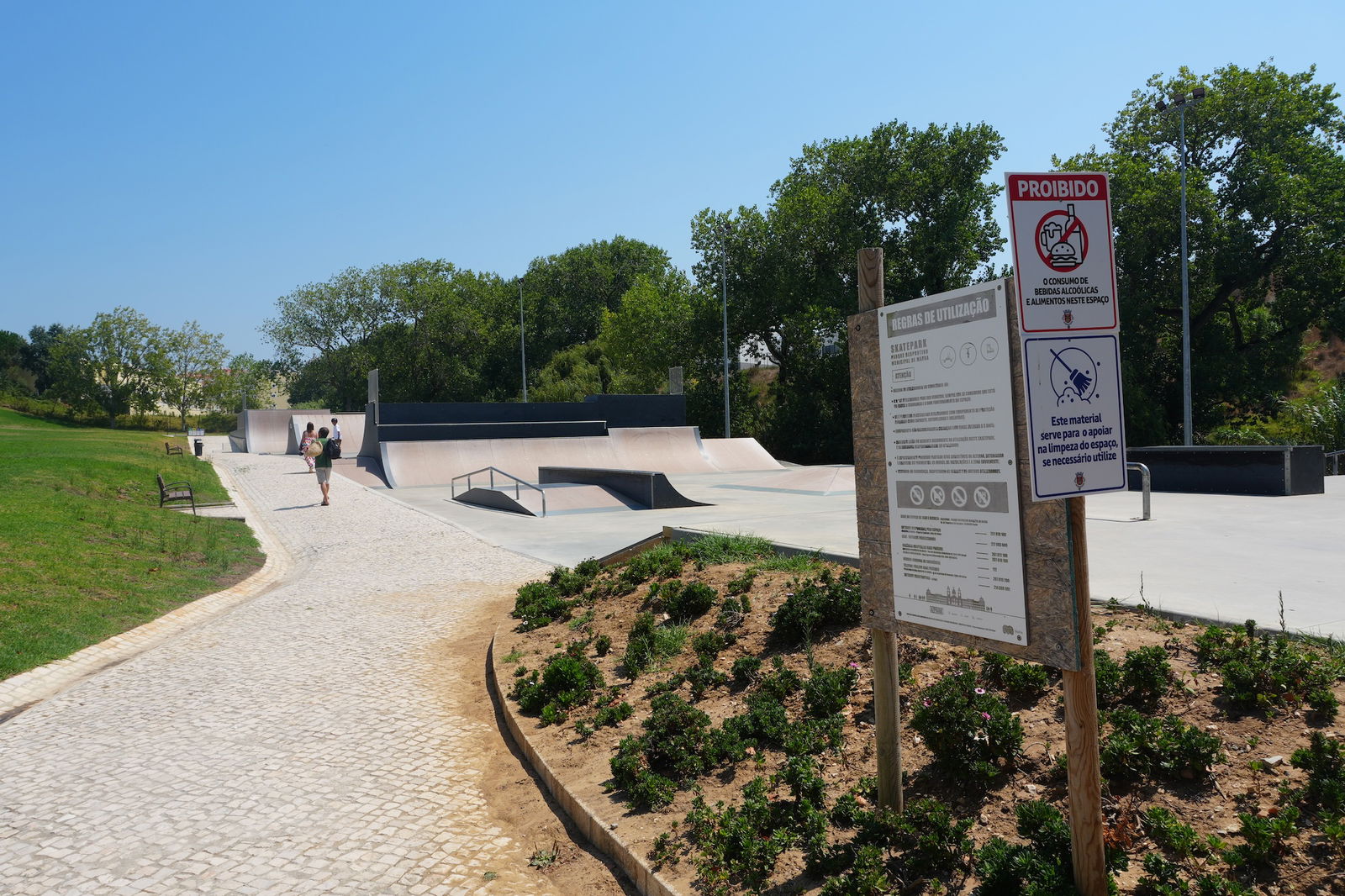 Mafra is a Portuguese city and a municipality in the district of Lisbon, on the west coast of Portugal close to Ericeira, known around the world for its surf reserve. Mafra is famous for the sumptuous Mafra National Palace inscribed as a UNESCO World Heritage Site, but since 2023 you have another valid reason to visit this historic city: Mafra skatepark. The park measures 1.648,91 m2 and features a bowl, BMX and street section. The skatepark was built by A-park in 2023. The skatepark is located in Parque Desportivo Municipal de Mafra.