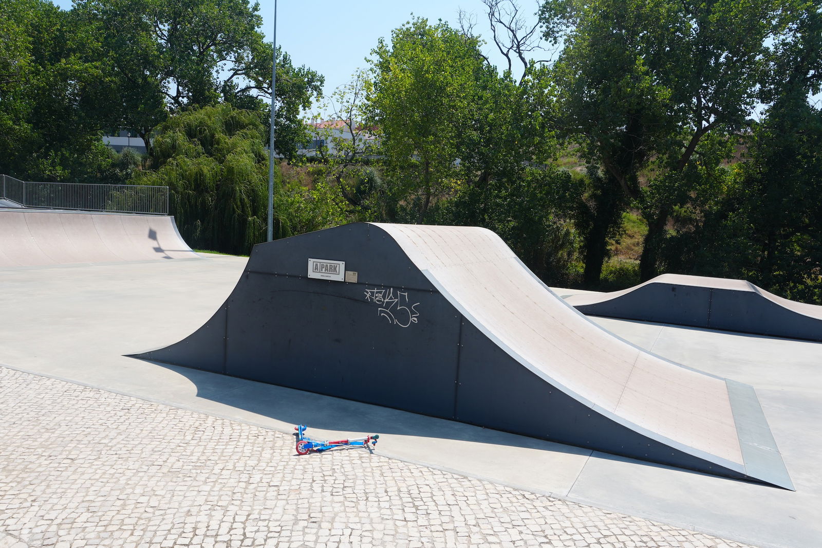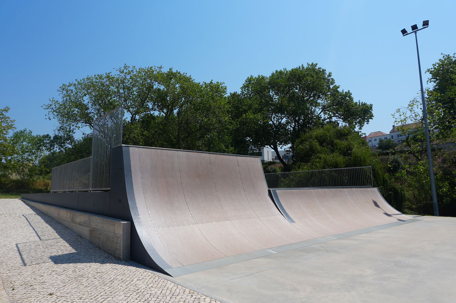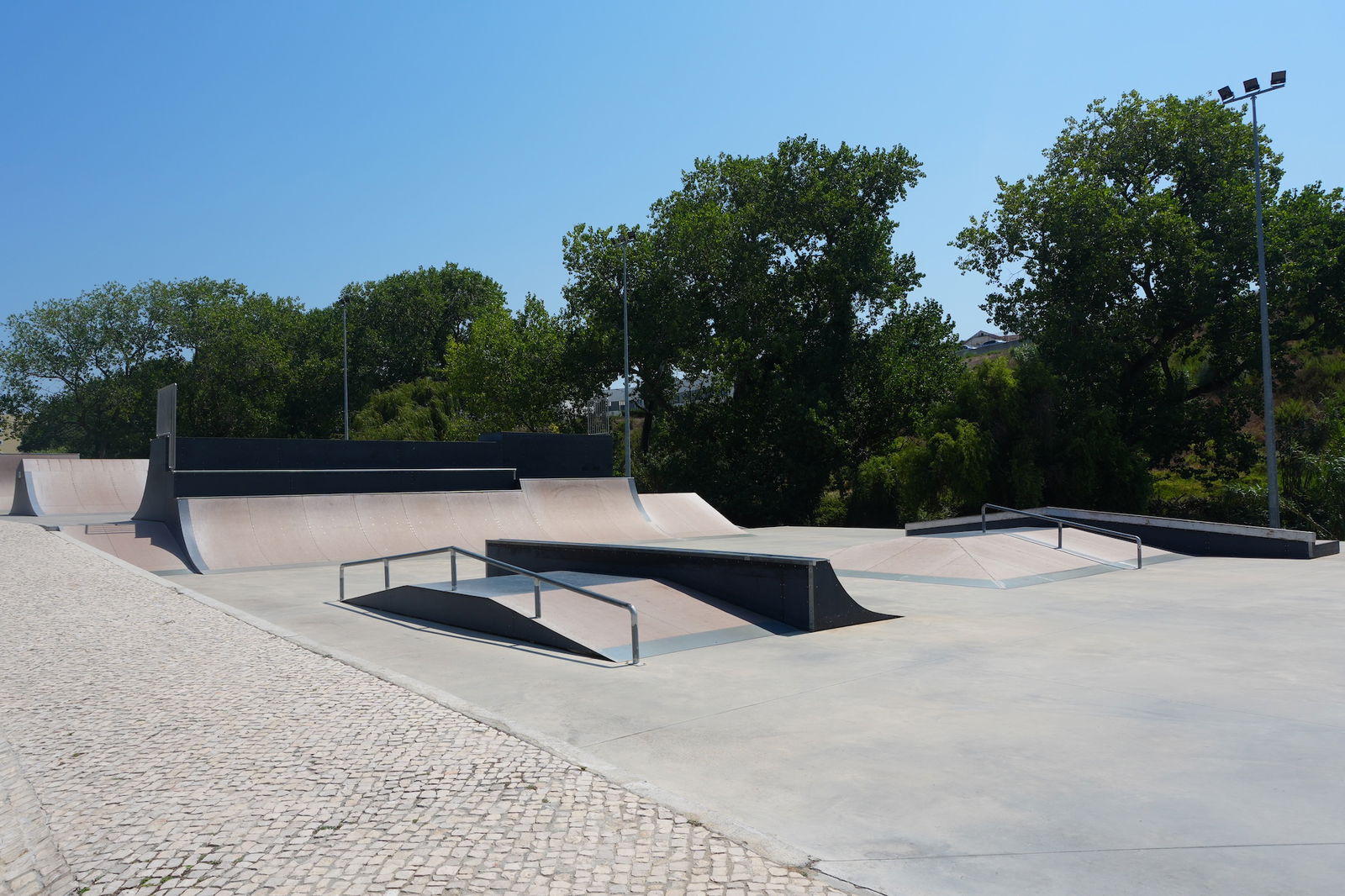 Mafra is a Portuguese city and a municipality in the district of Lisbon, on the west coast of Portugal close to Ericeira, known around the world for its surf reserve. Mafra is famous for the sumptuous Mafra National Palace inscribed as a UNESCO World Heritage Site, but since 2023 you have another valid reason to visit this historic city: Mafra skatepark. The park measures 1.648,91 m2 and features a bowl, BMX and street section. The skatepark was built by A-park in 2023. The skatepark is located in Parque Desportivo Municipal de Mafra.
