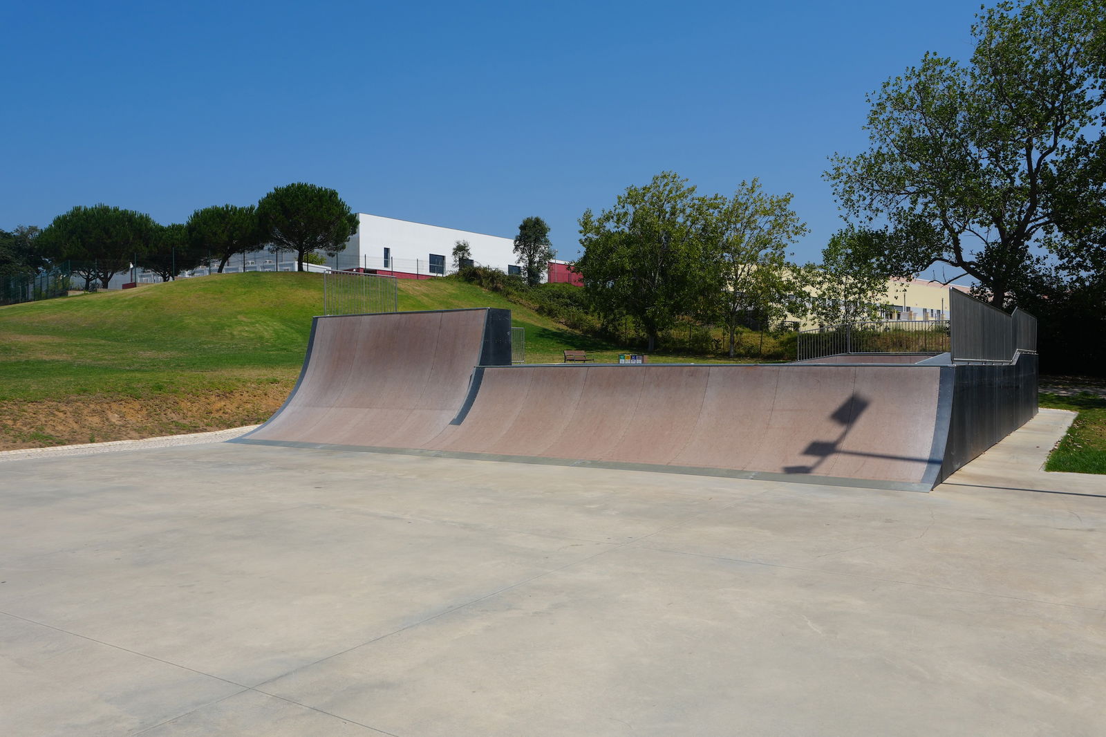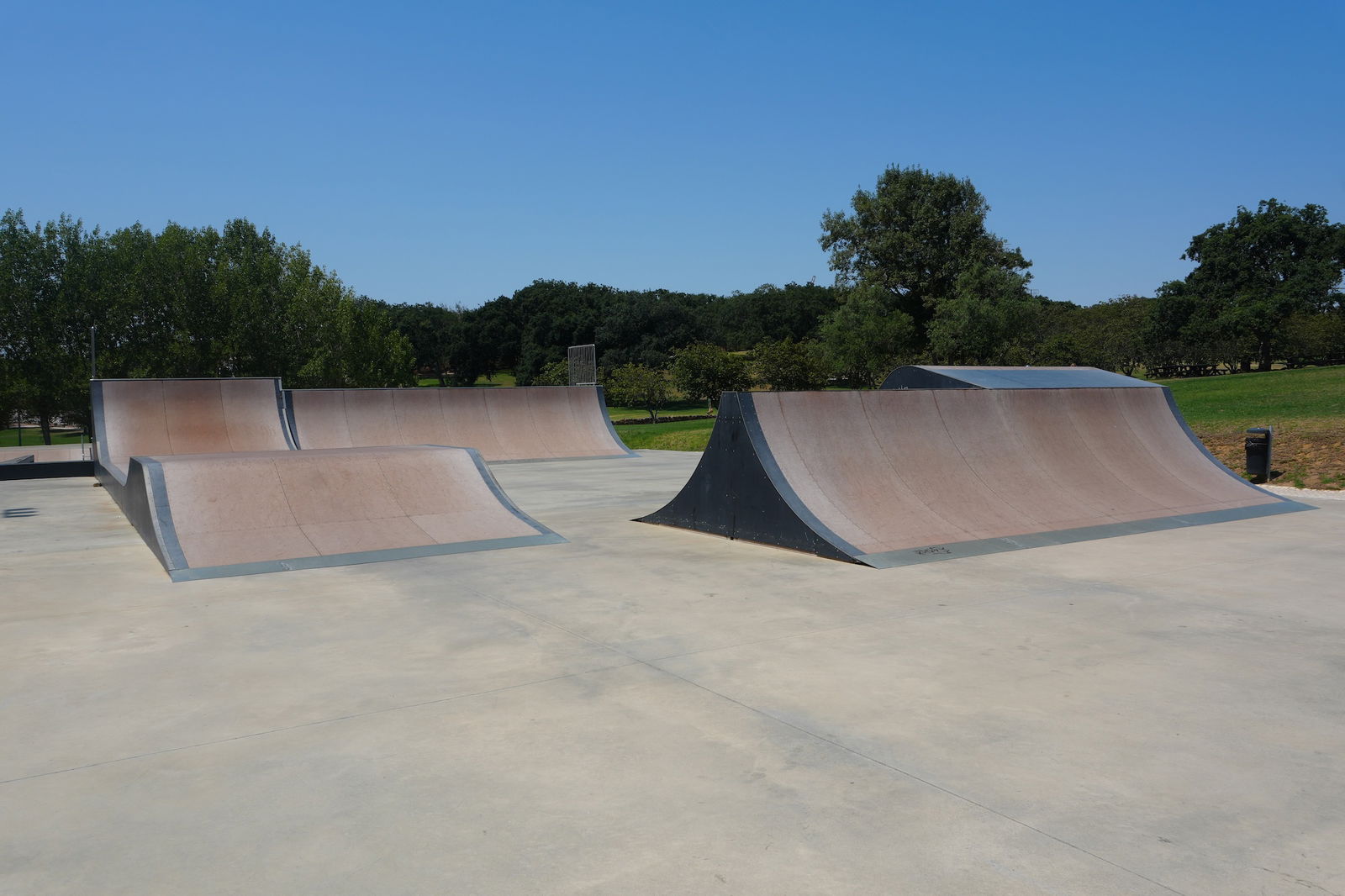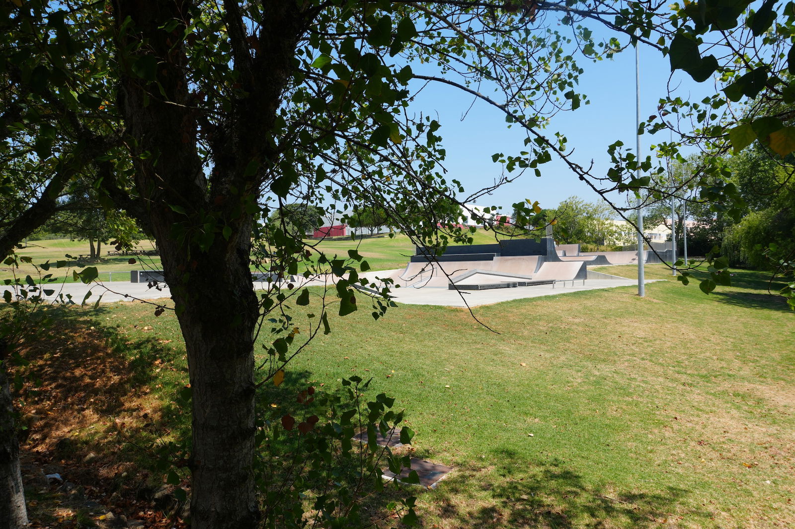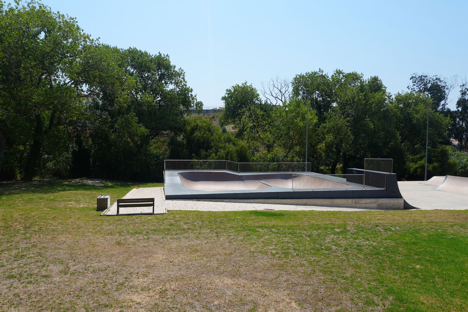 Nice park in a beautiful setting located in a sports complex with loads of other infrastructures on site: swimming pool (indoor/outdoor), tennis fields, bike track, football field...). Dig the bowl.