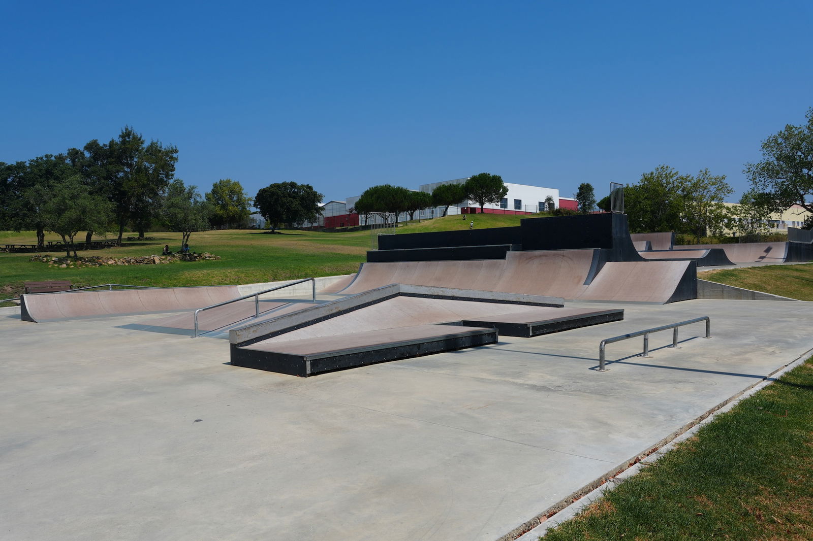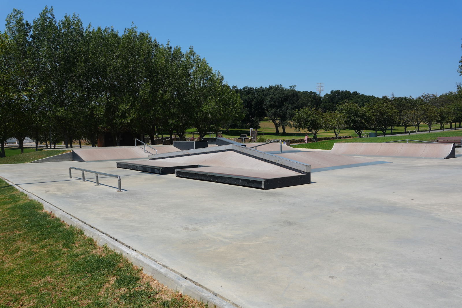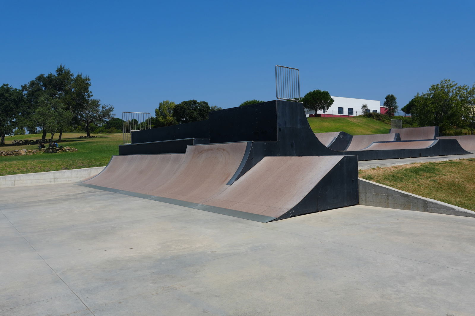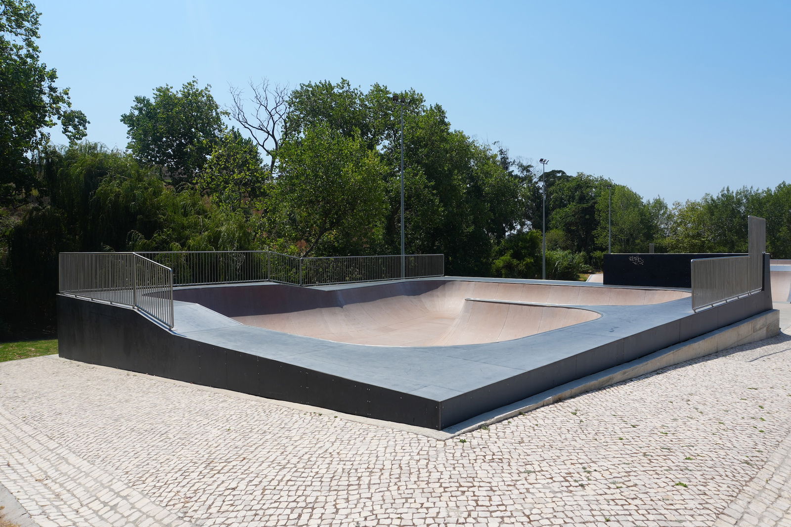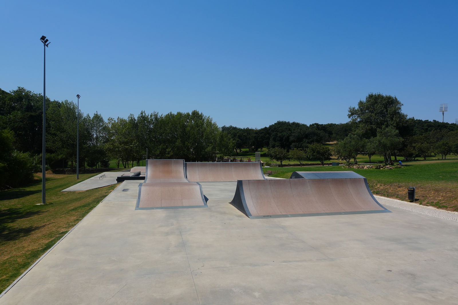 Nice park in a beautiful setting located in a sports complex with loads of other infrastructures on site: swimming pool (indoor/outdoor), tennis fields, bike track, football field...). Dig the bowl.
