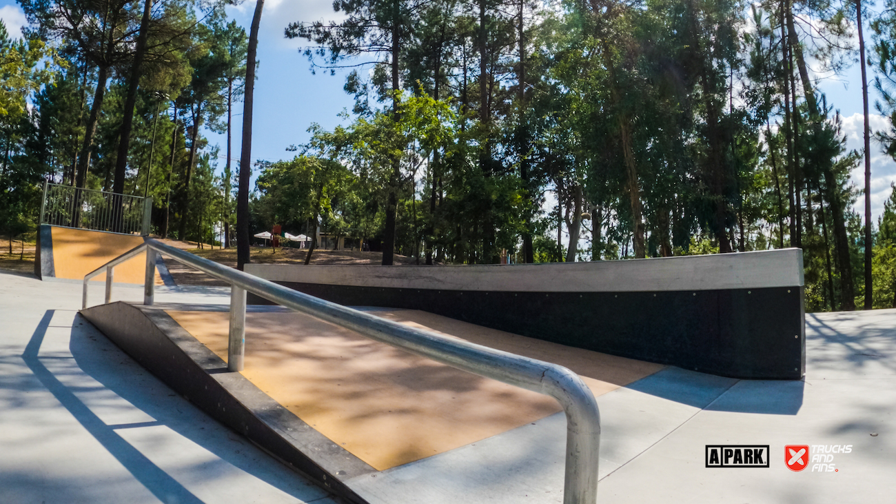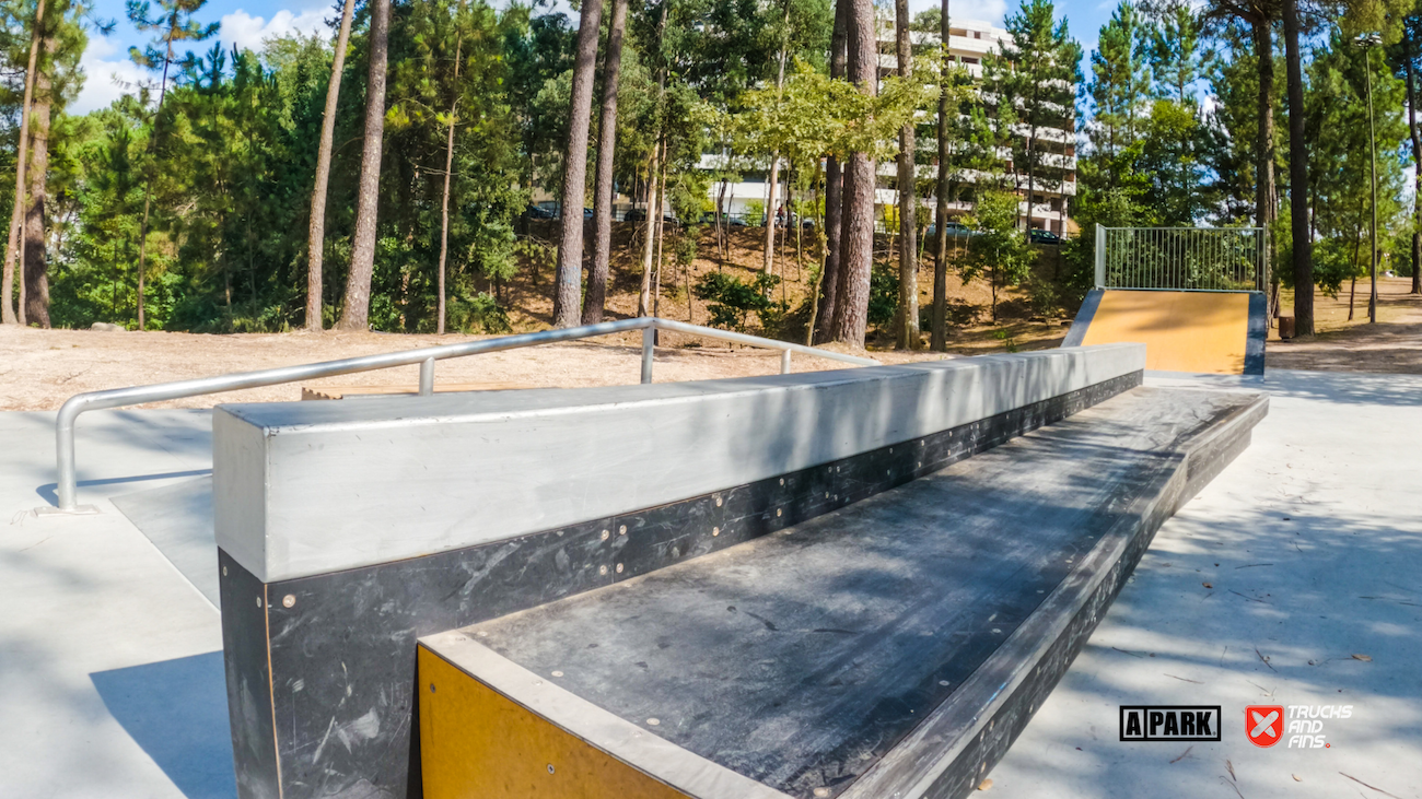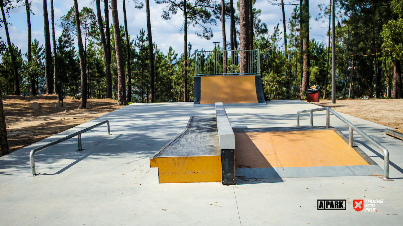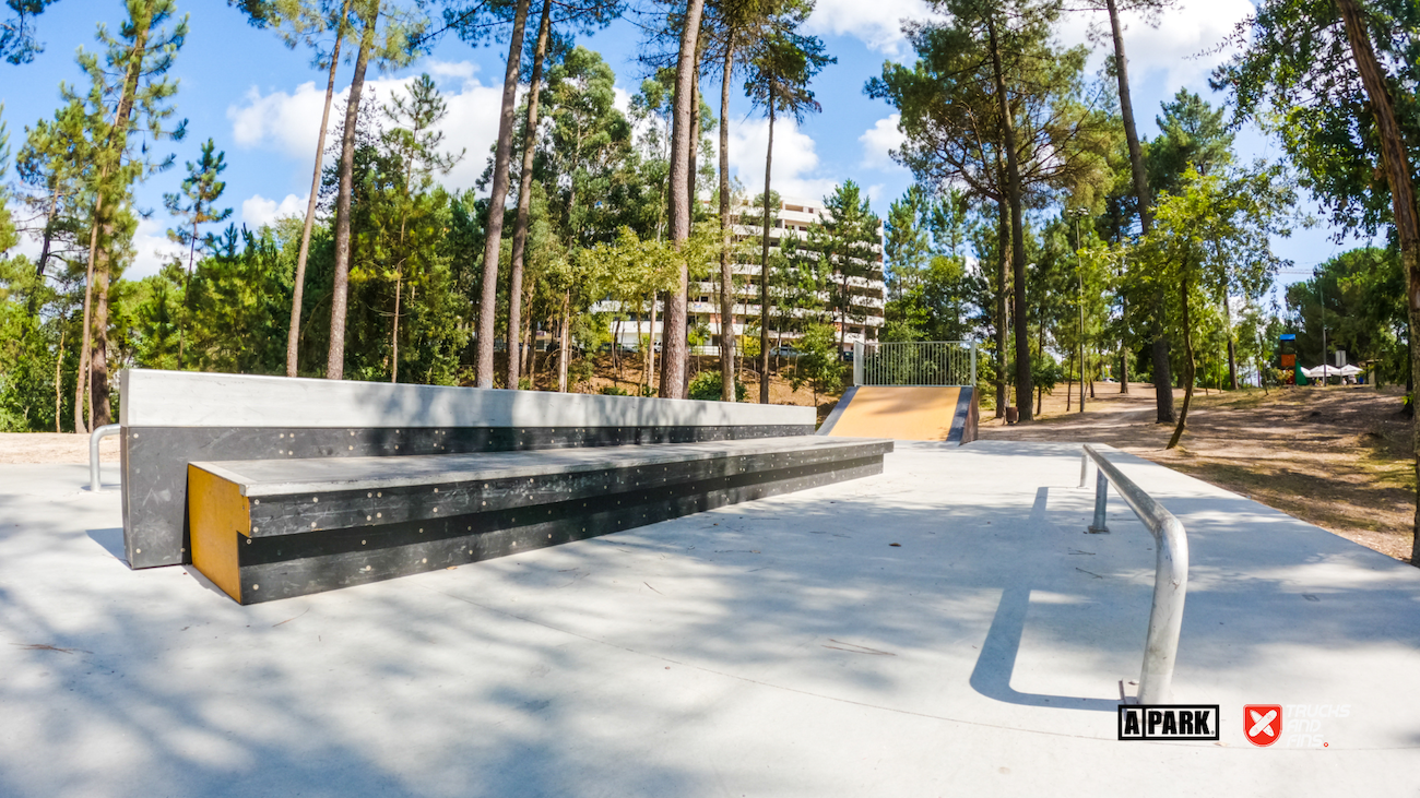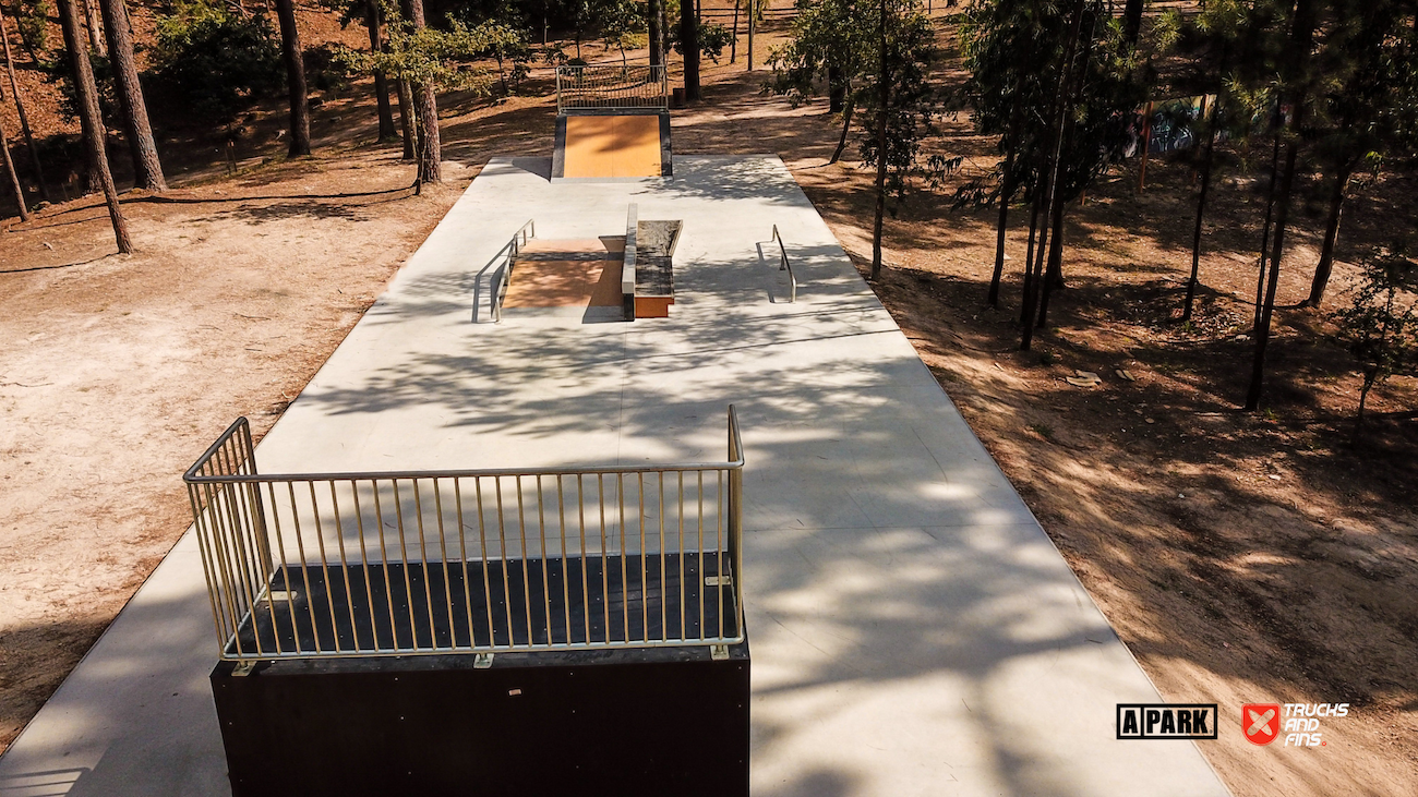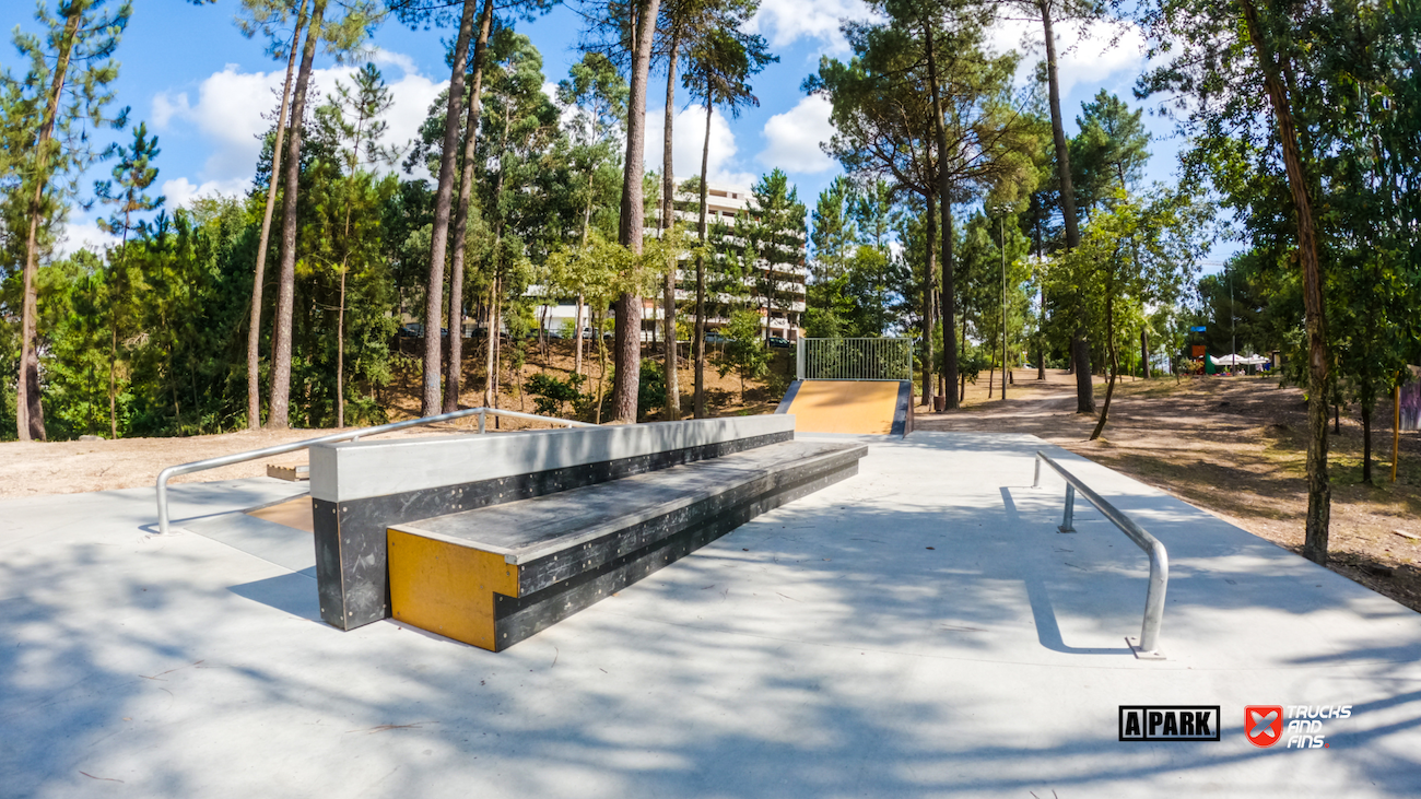 Marco de Canaveses skatepark is a small park, built by A-park, with several basic skateboarding obstacles in a back and forth setup. The Marco de Canaveses Skate Park is nestled within the city’s urban park, surrounded by trees and greenery. Covering approximately 300m², it is a small park featuring both intermediate and beginner zones. Primarily focused on skateboarding, it includes a funbox, small curbs, and a flatbar.