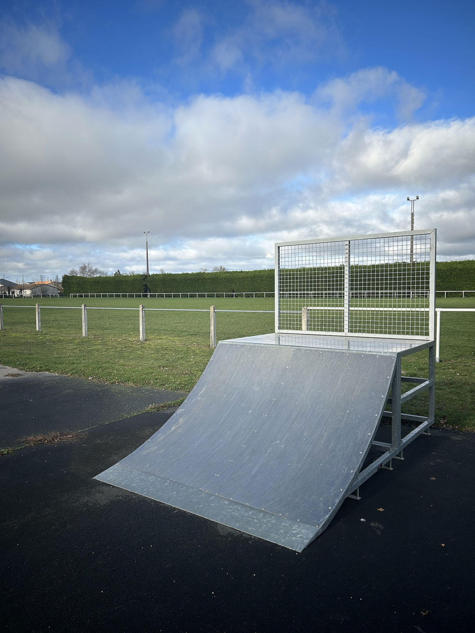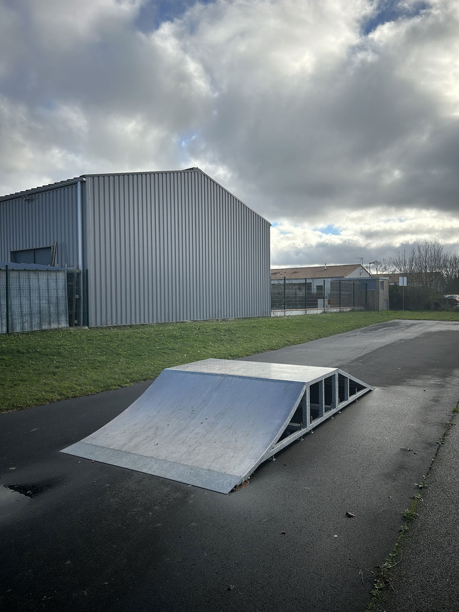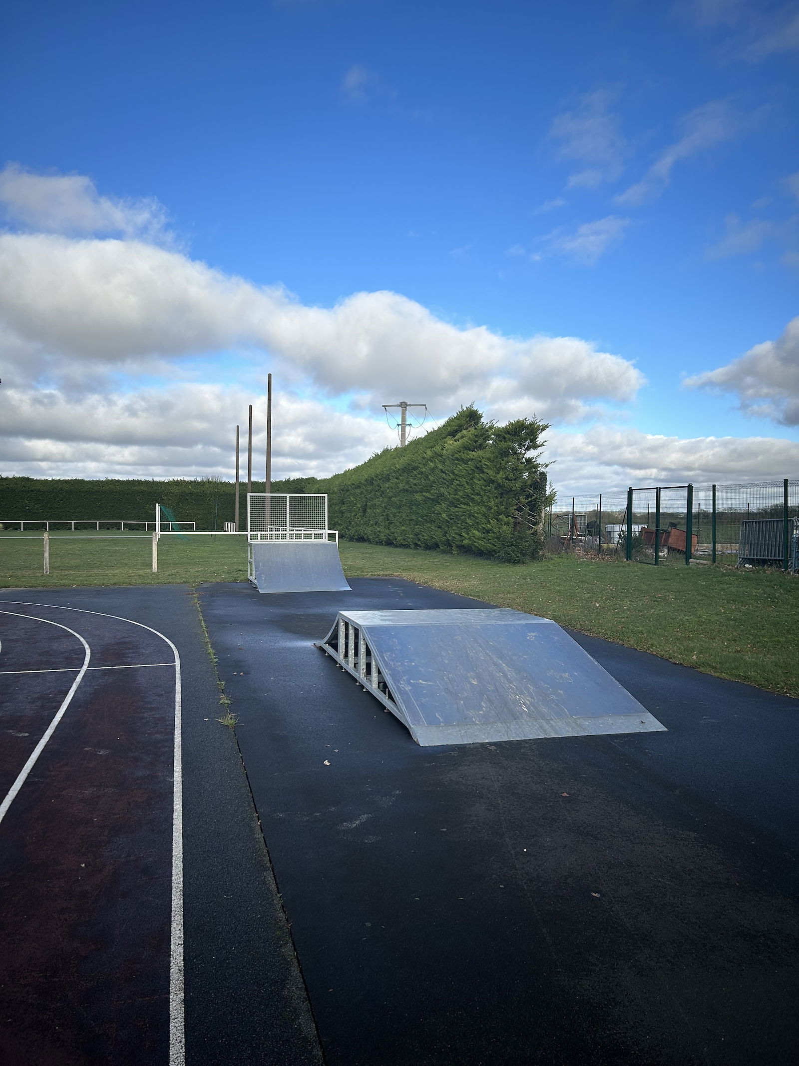 Marigny skatepark is a small park with several basic skateboarding obstacles in a back and forth setup.
