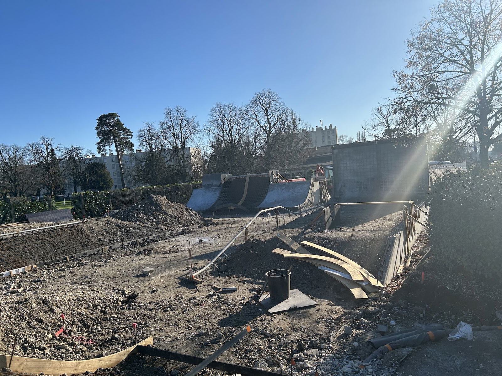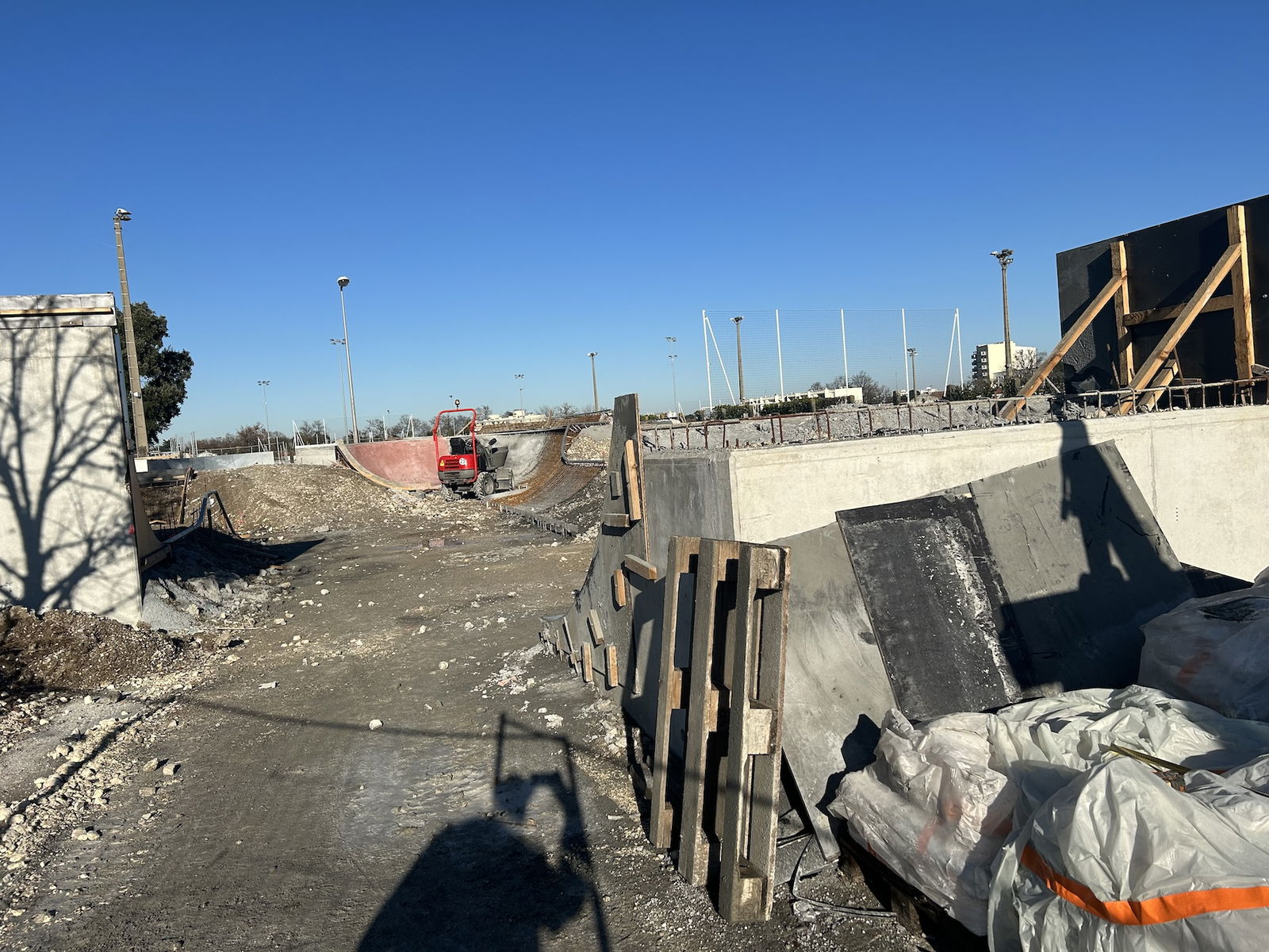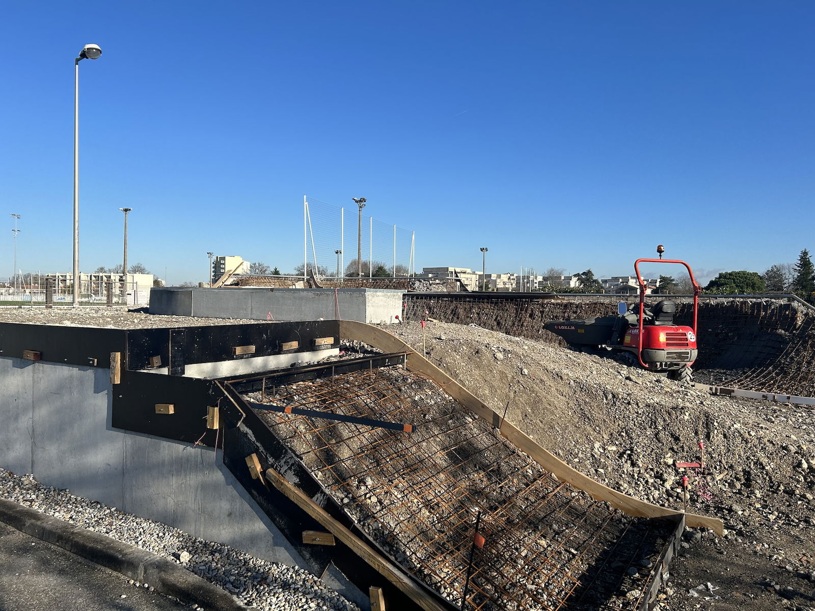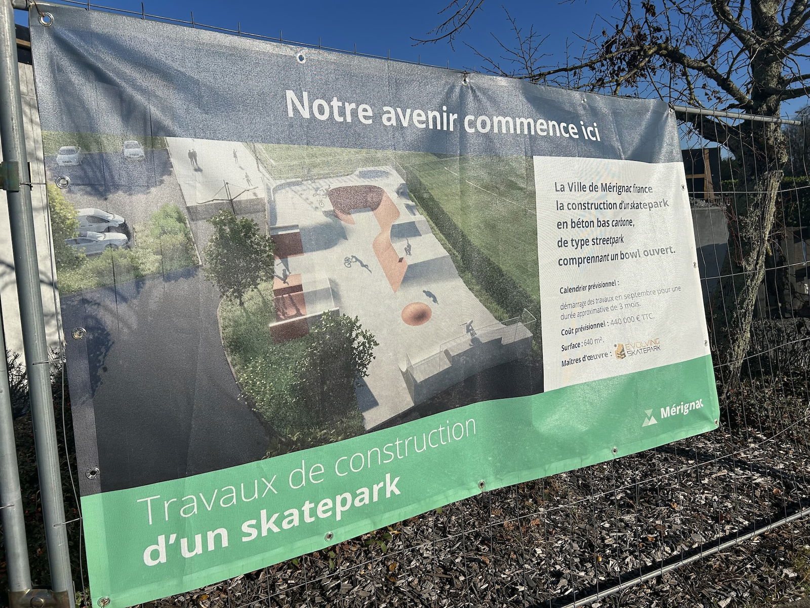 Skatepark de Mérignac features a miniramp and several basic skateboarding obstacles.