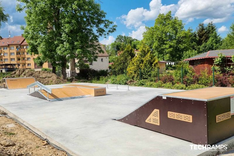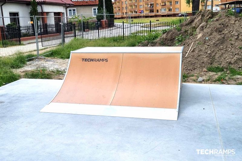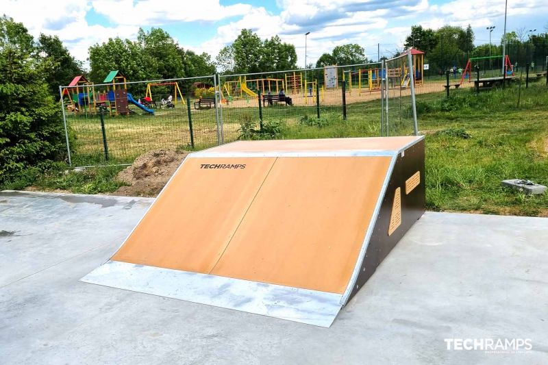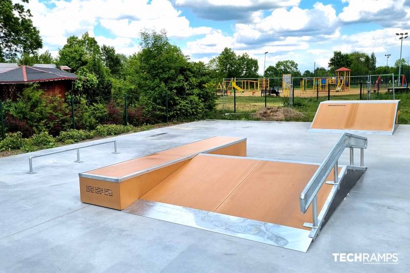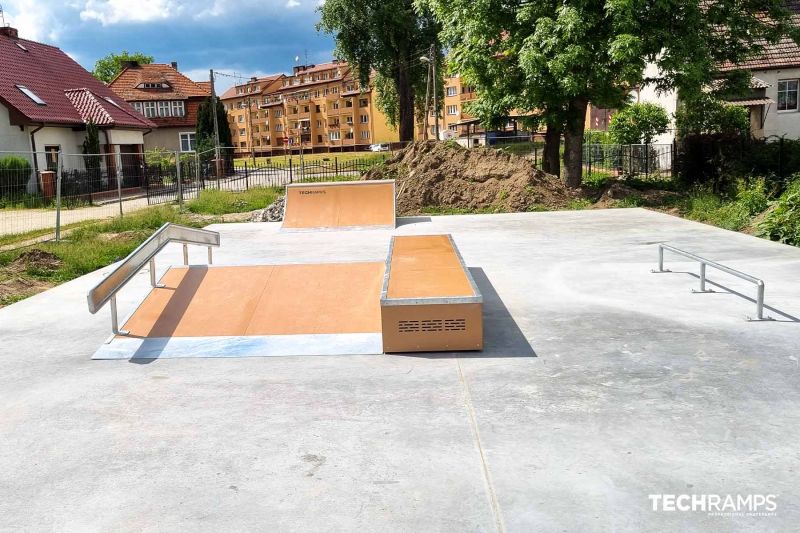 Mieszkowice skatepark is a small park with several basic skateboarding obstacles in a back and forth setup. The skatepark was built by Techramps.