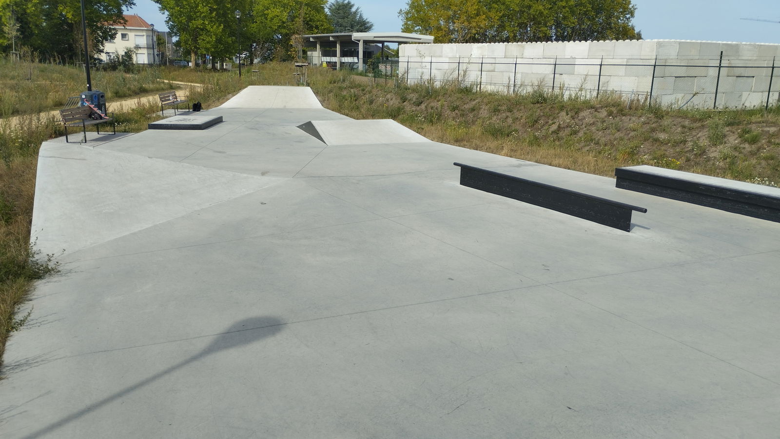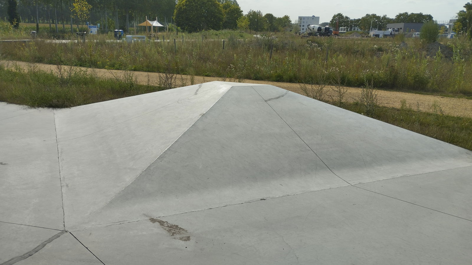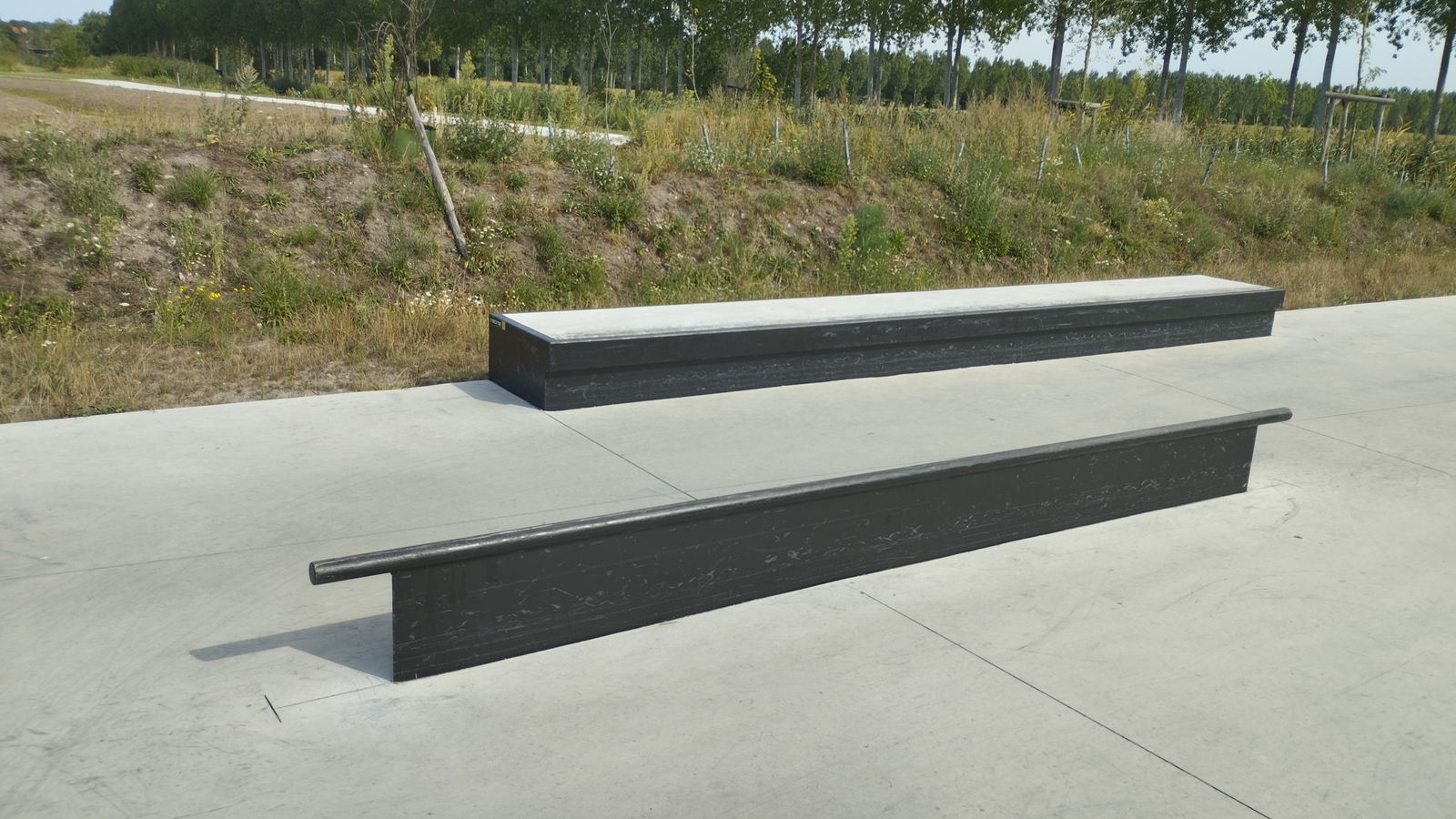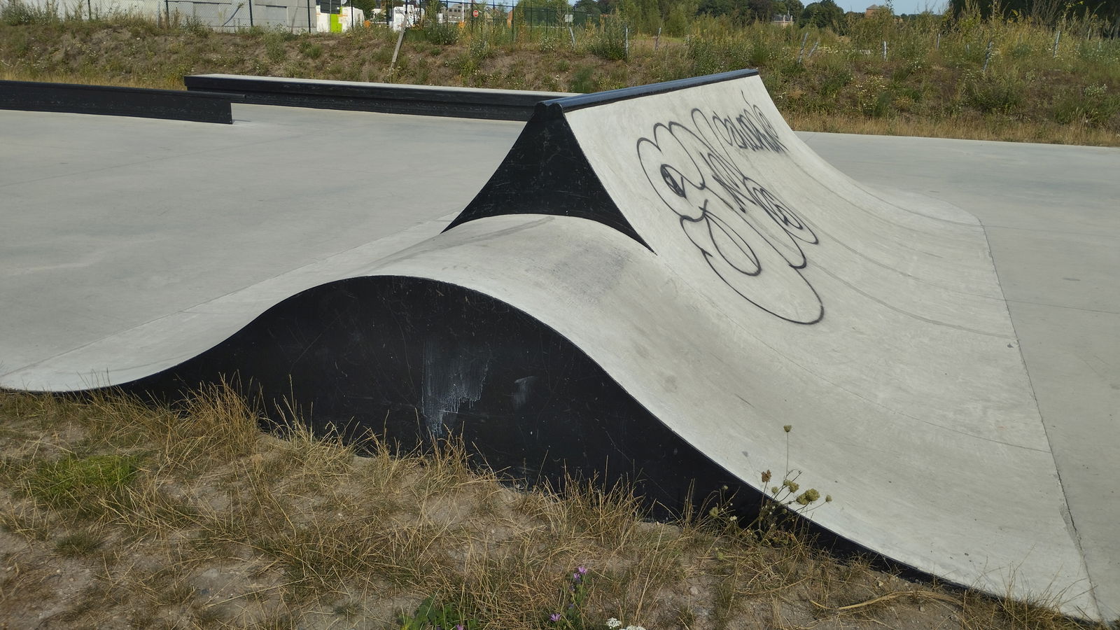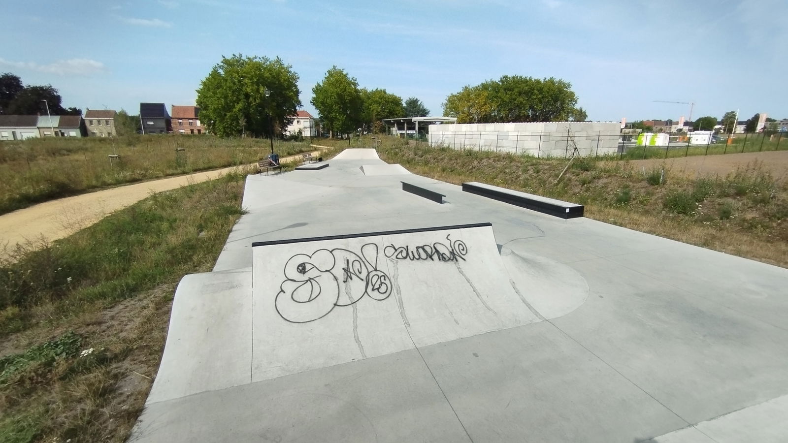 Moerbeke skatepark is a small concrete park with several street obstacles in a back and forth setup.
