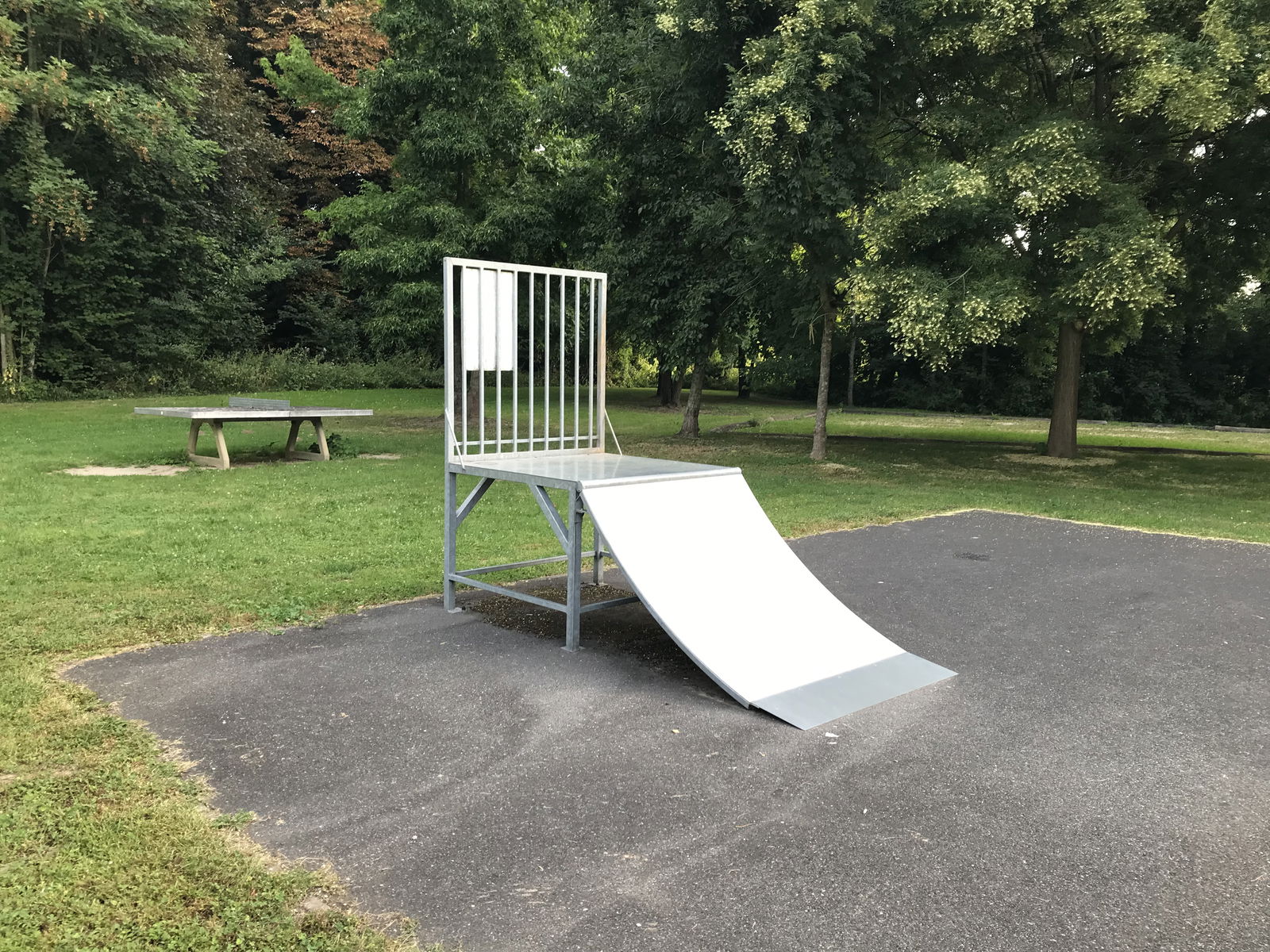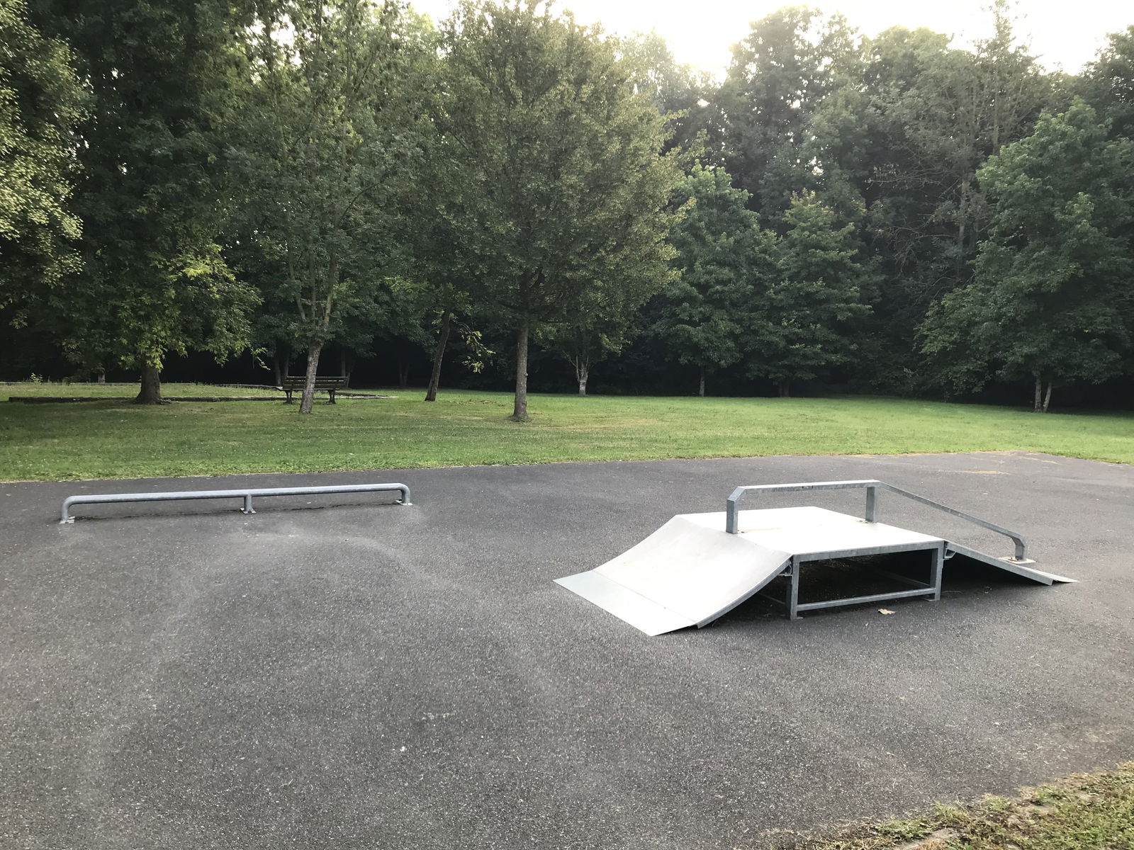 Nantouillet skatepark is a small park with several basic skateboarding obstacles in a back and forth setup.