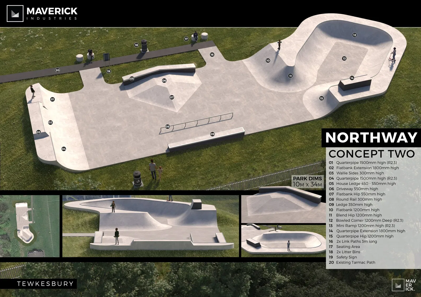 Northway skatepark is a concrete park built by Maverick skateparks in 2025.