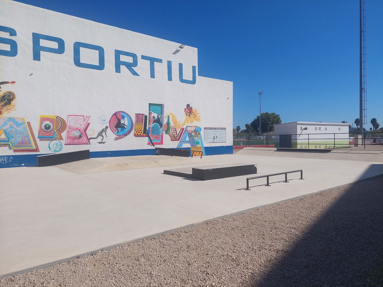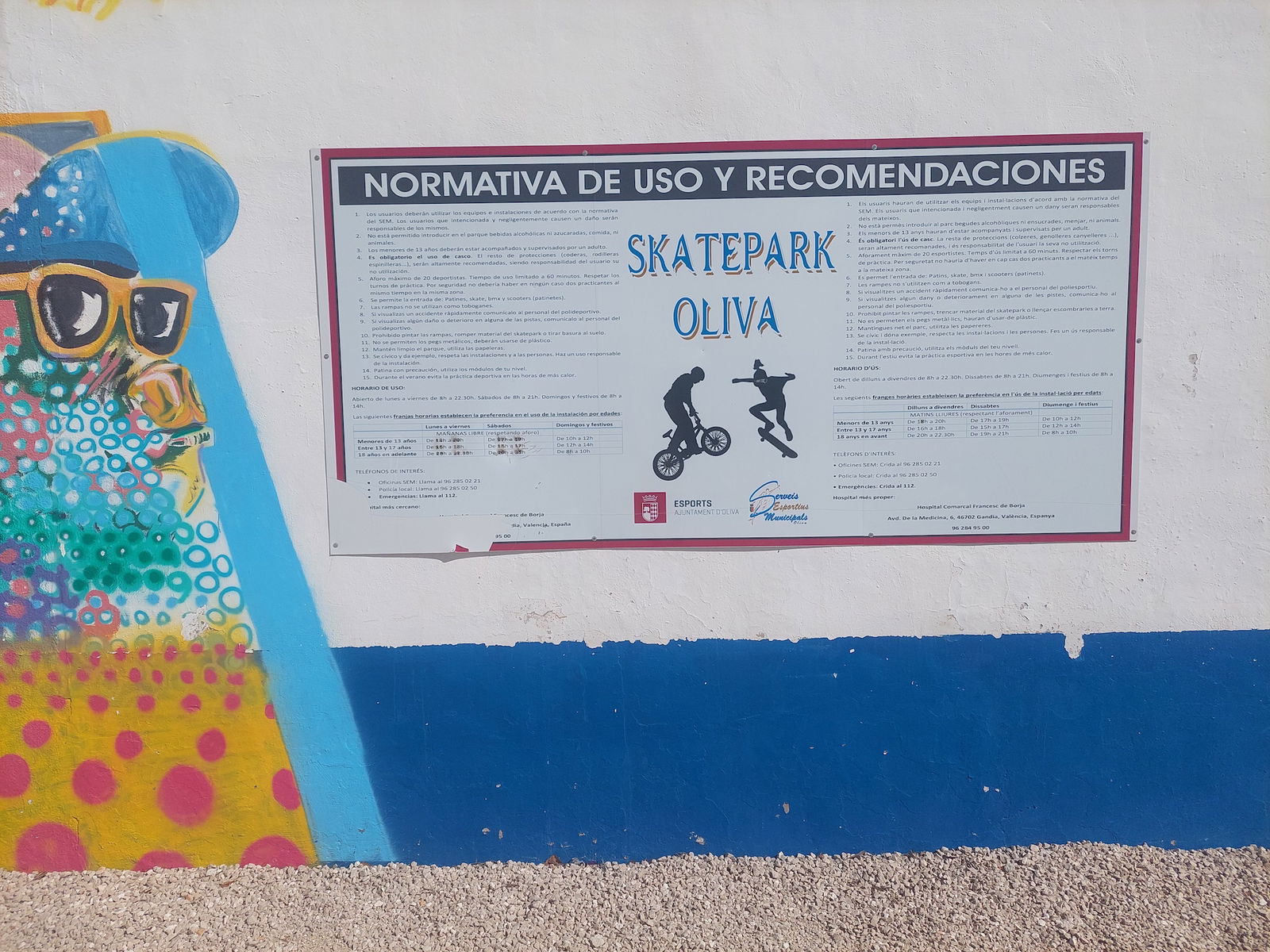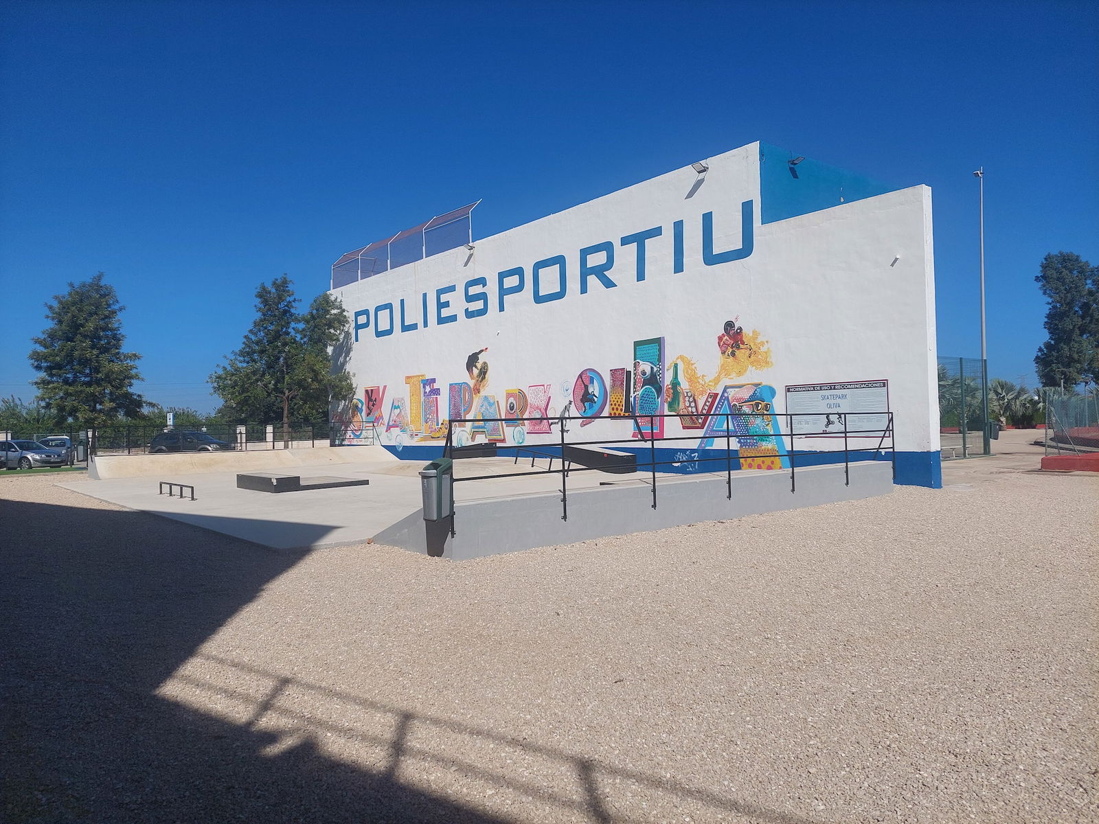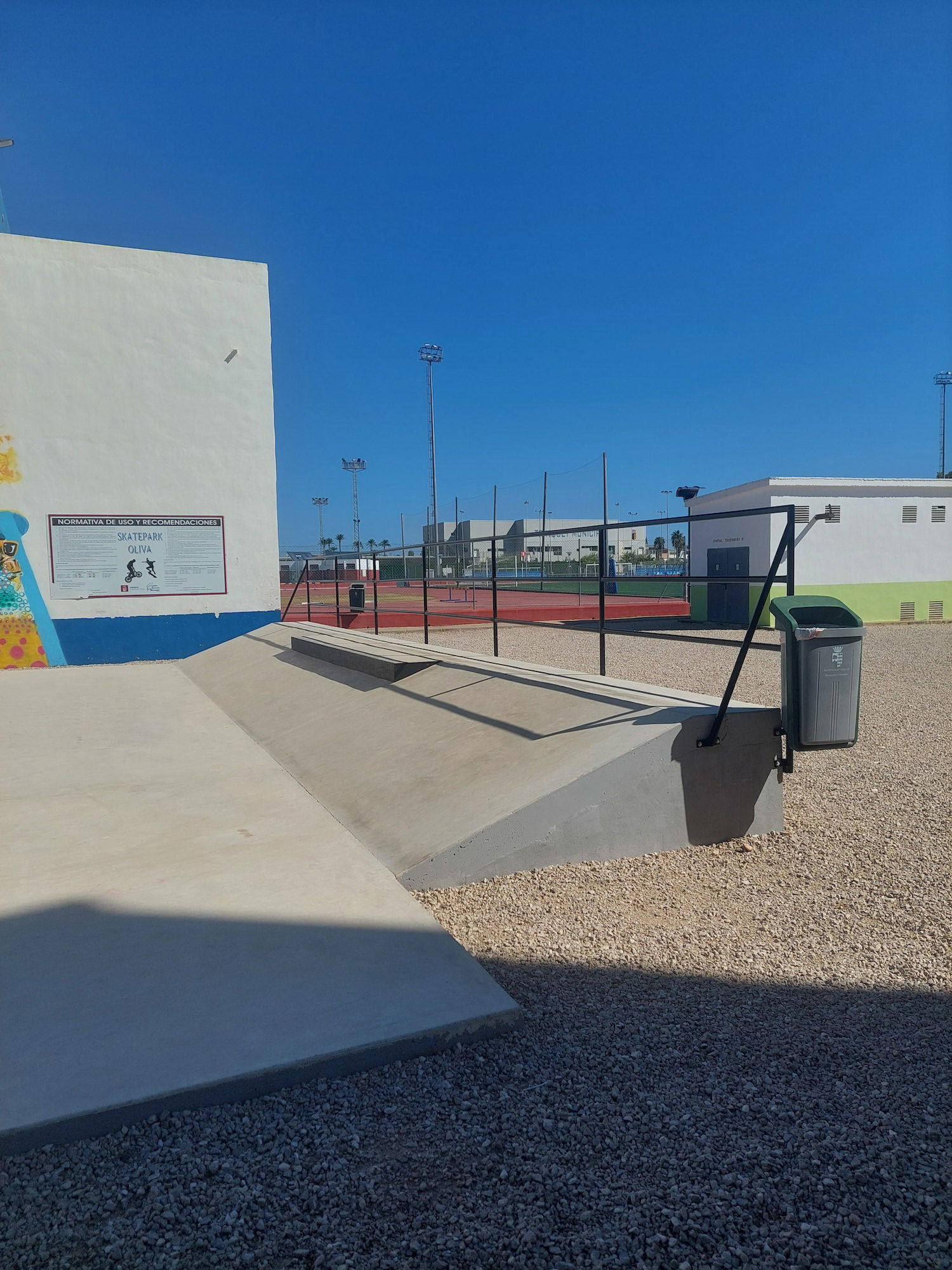 Oliva skatepark is a small park with several basic skateboarding obstacles in a back and forth setup.