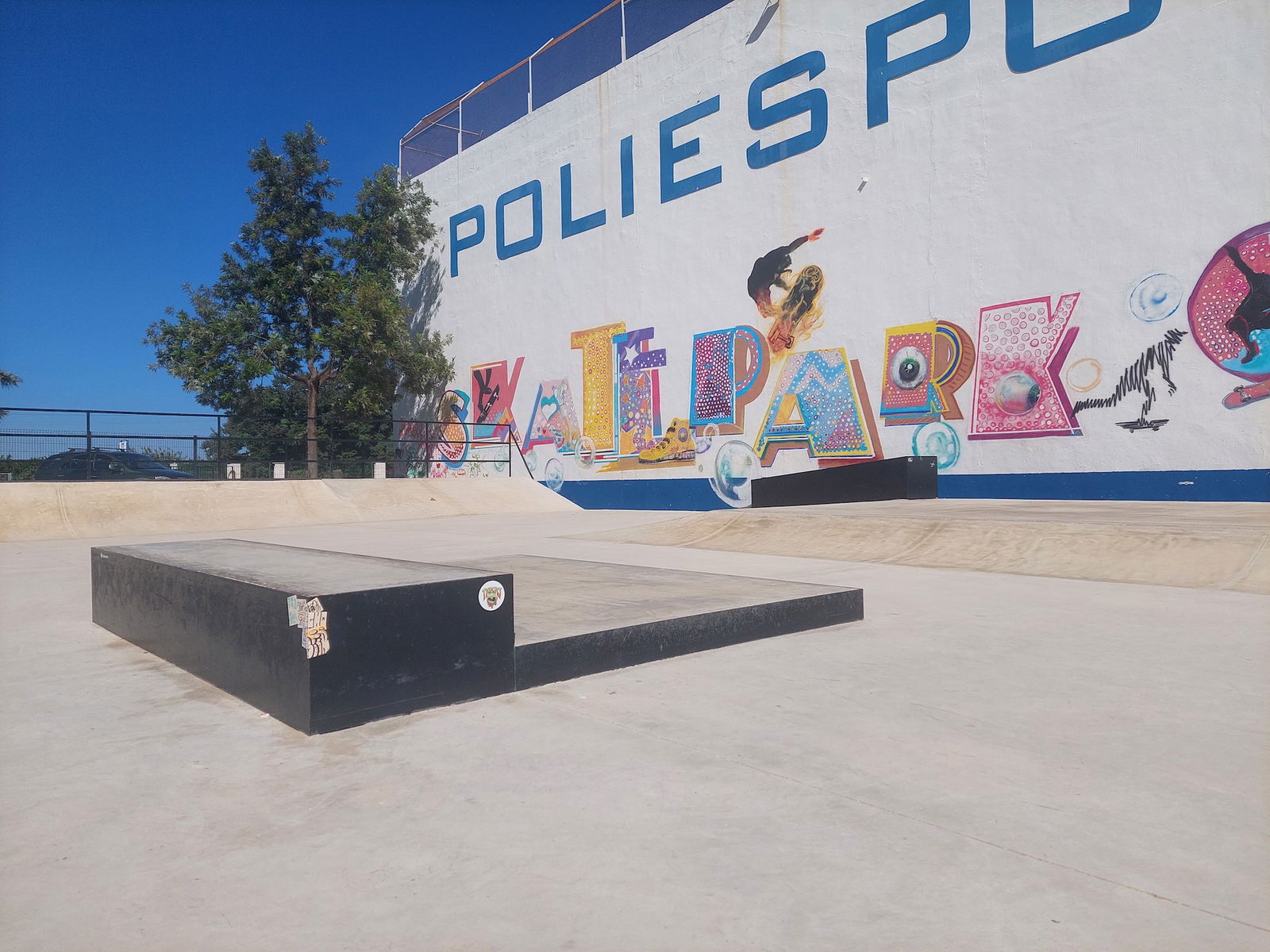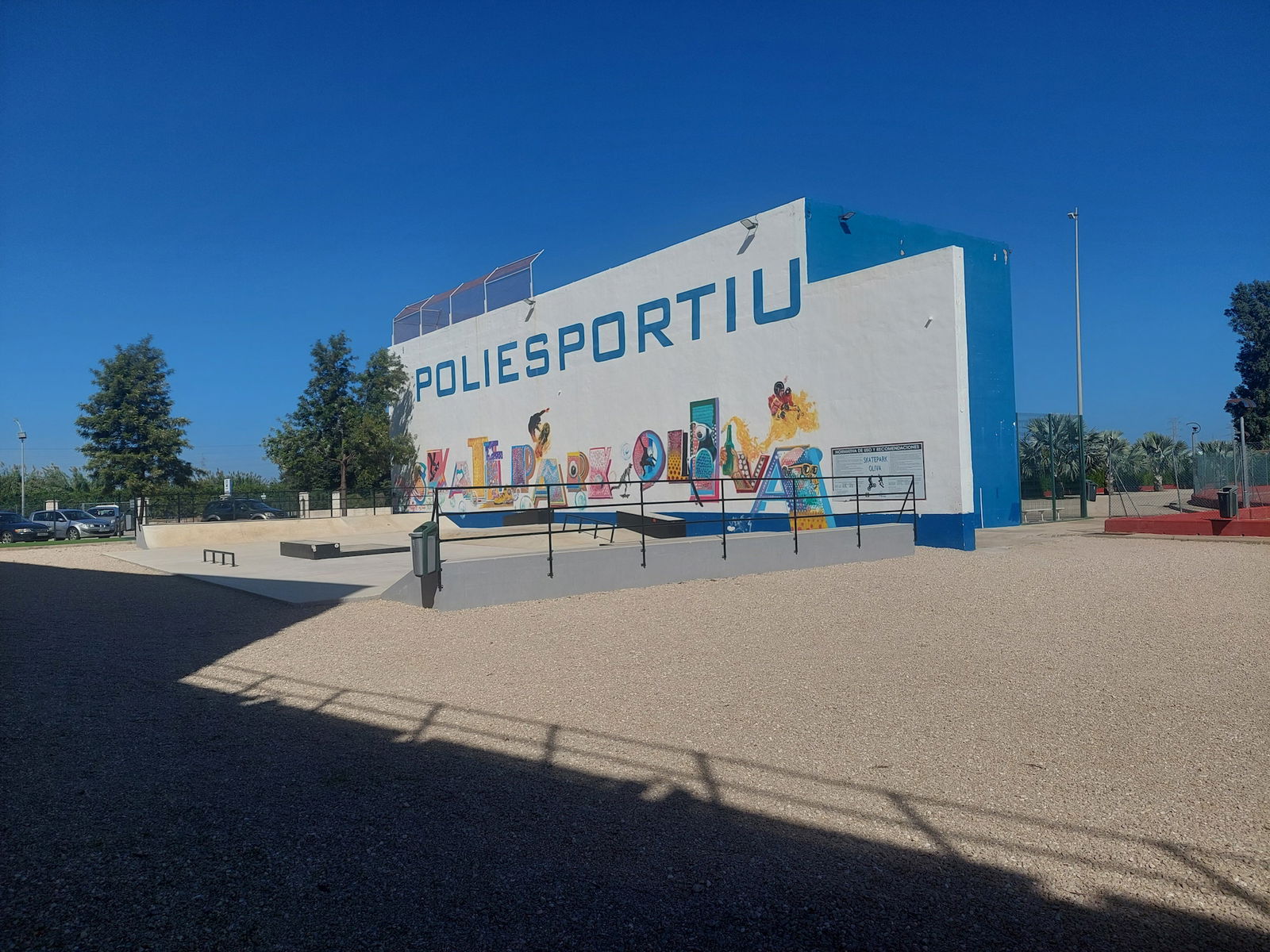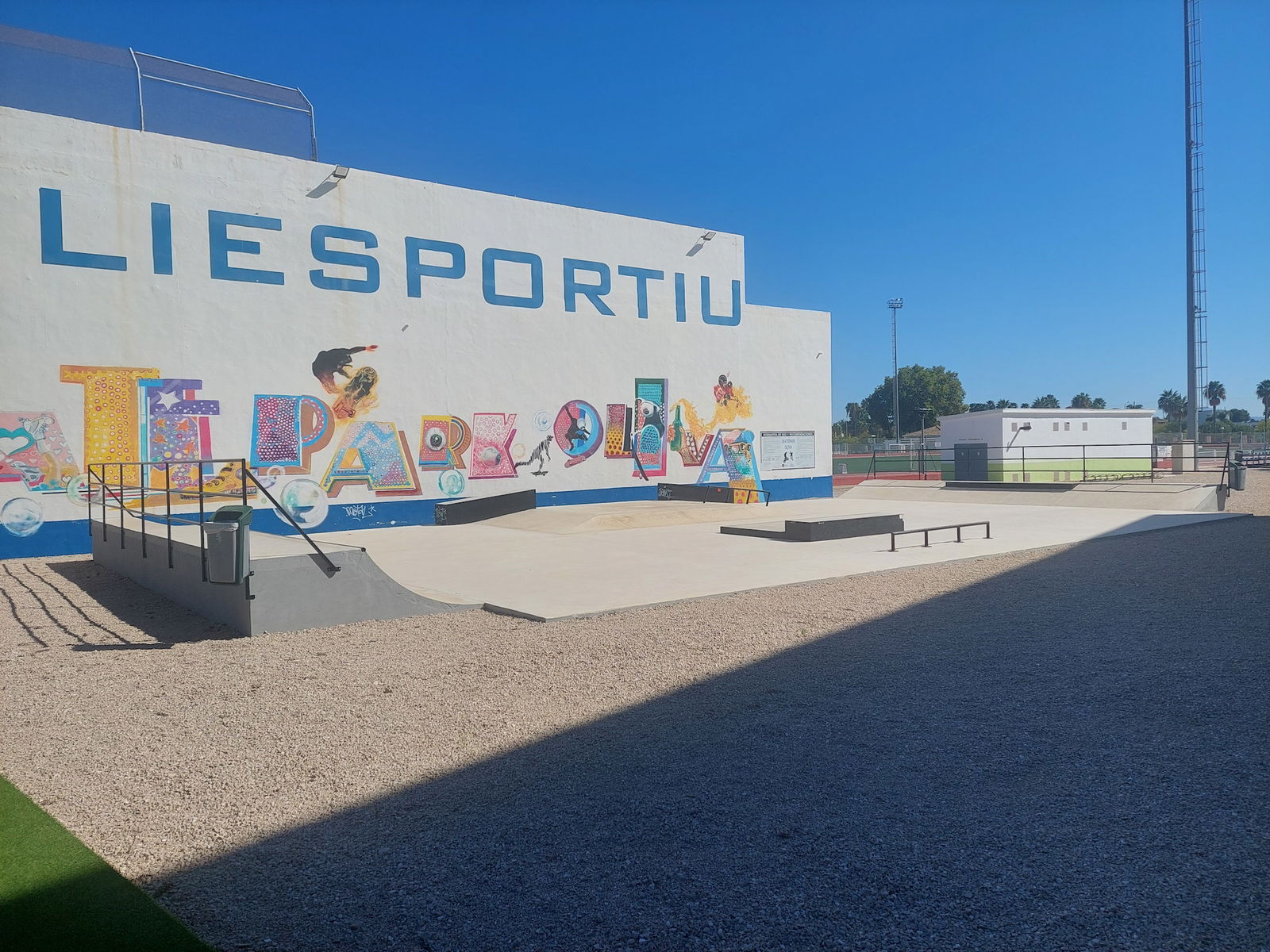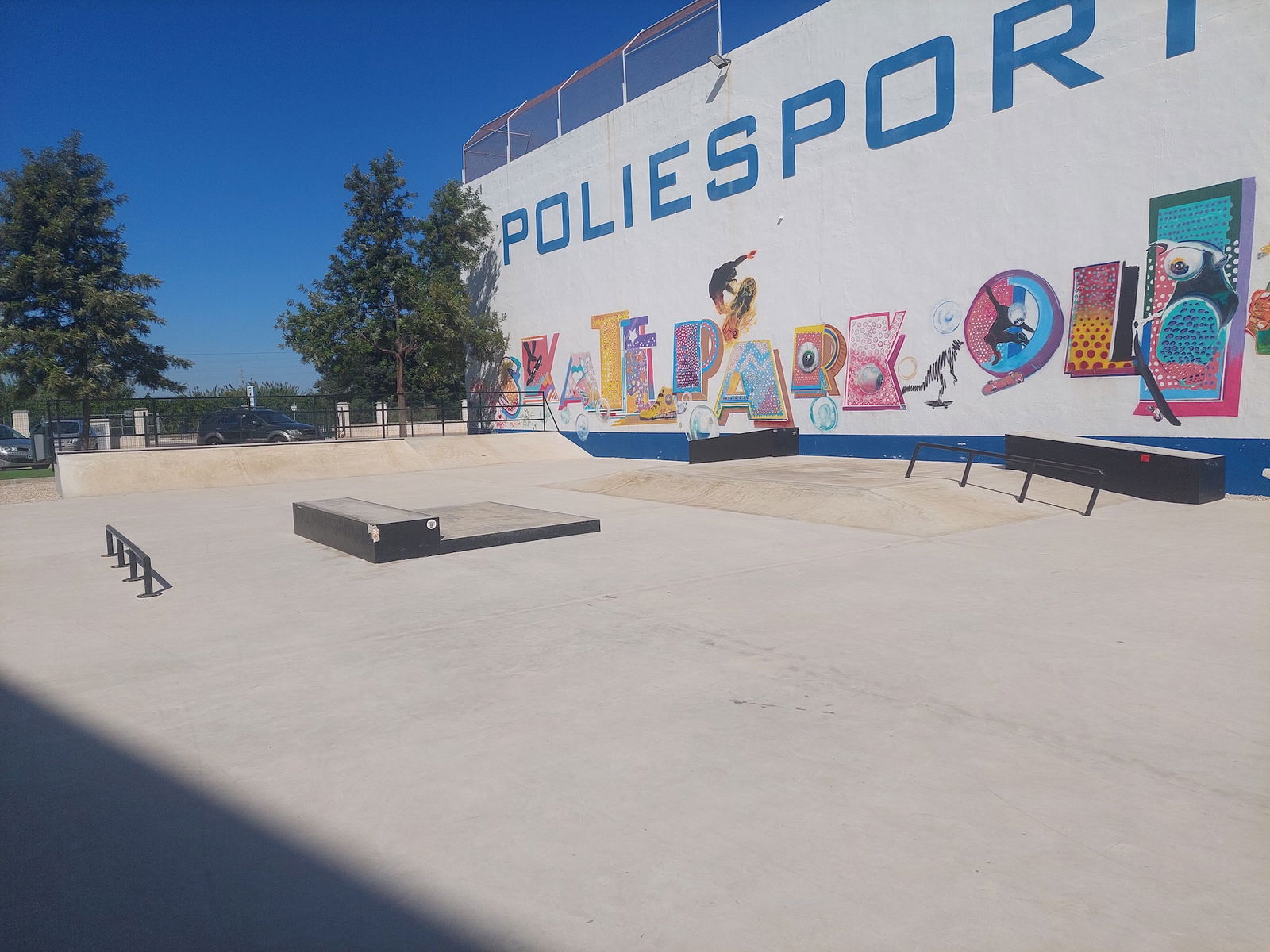 Oliva skatepark is a small park with several basic skateboarding obstacles in a back and forth setup.