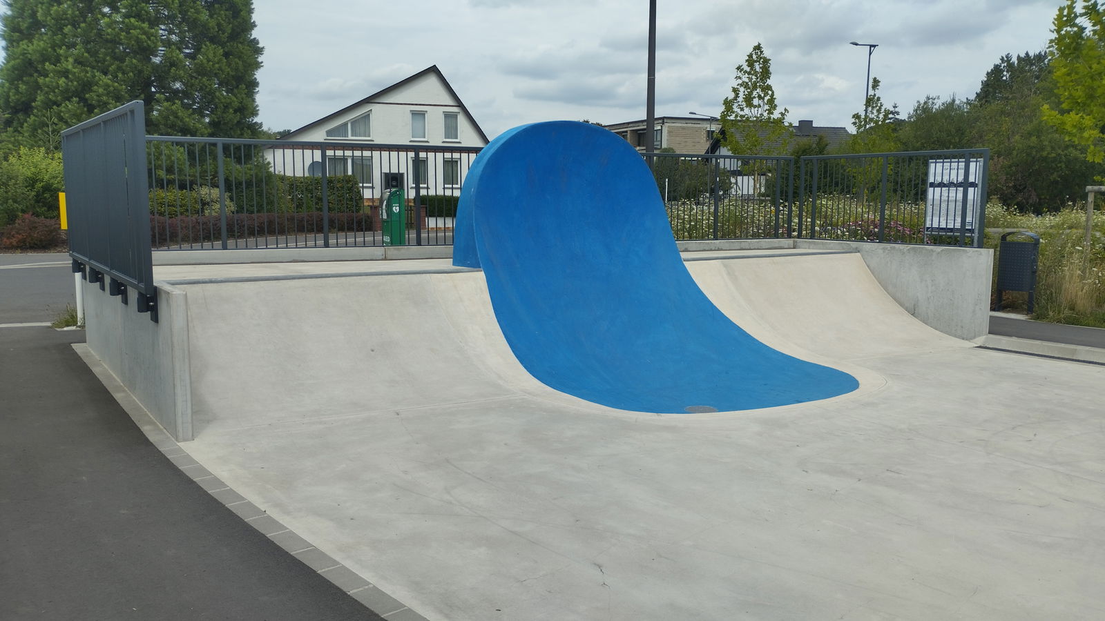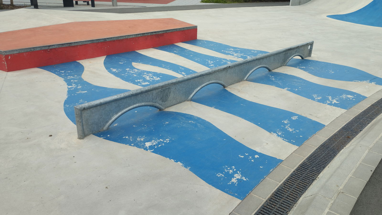 Olm Kehlen skatepark is a small park with several basic obstacles in a back and forth setup.