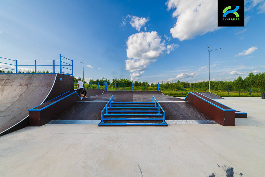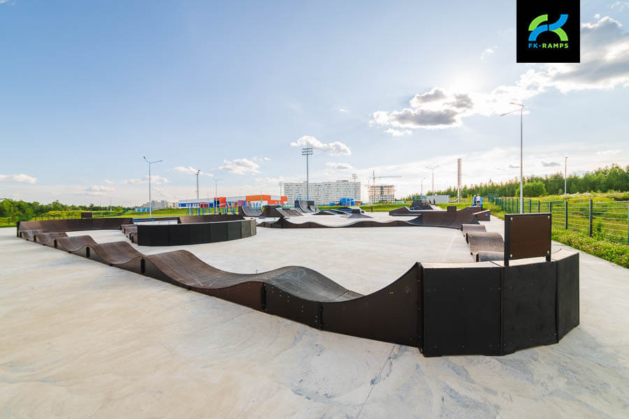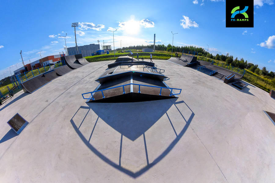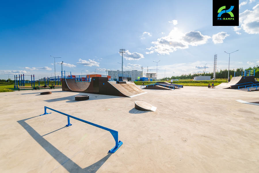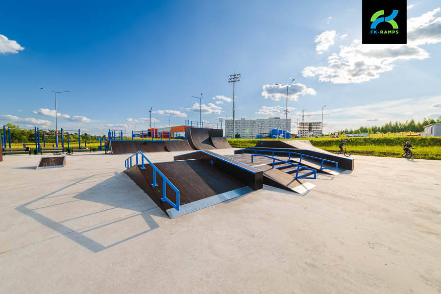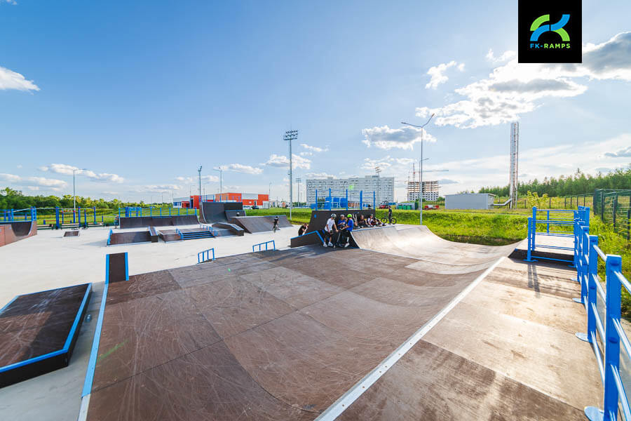 A skatepark on a metal frame near the Orbita training ground in Kaluga has become a new point of attraction for active youth and fans of extreme sports. This project was implemented as part of a general initiative to re-equip infrastructure facilities built in preparation for the 2018 FIFA World Cup with modern sports grounds. In accordance with the decision of the Ministry of Sports, skateparks, pumptracks, workout grounds and other facilities are being built on such sports complexes to involve residents in regular sports. The skatepark was built by FKRamps.