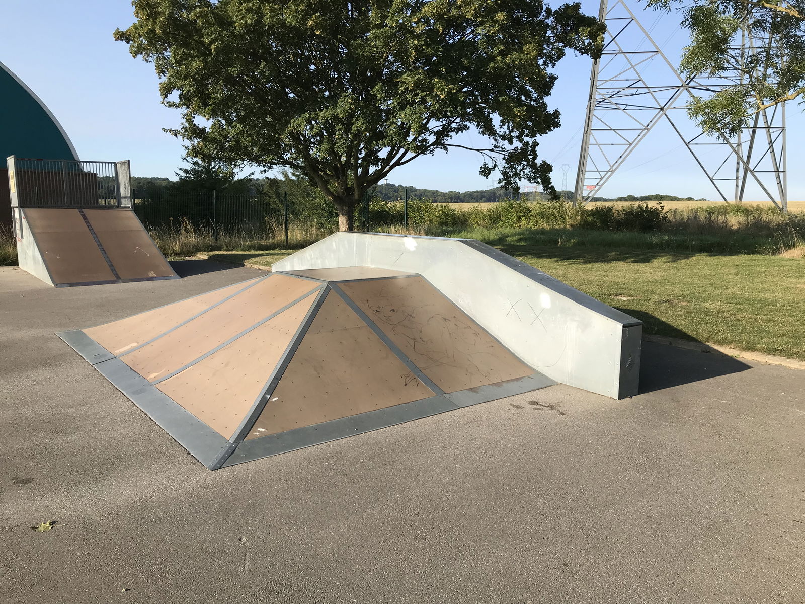 Othis skatepark is a small park with several basic skateboarding obstacles in a back and forth setup.