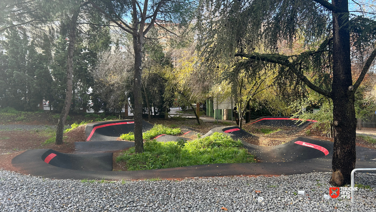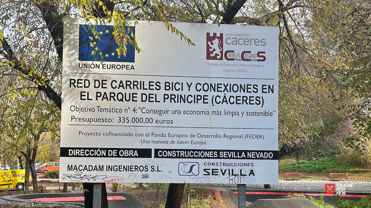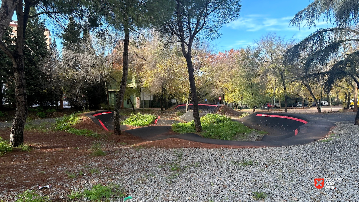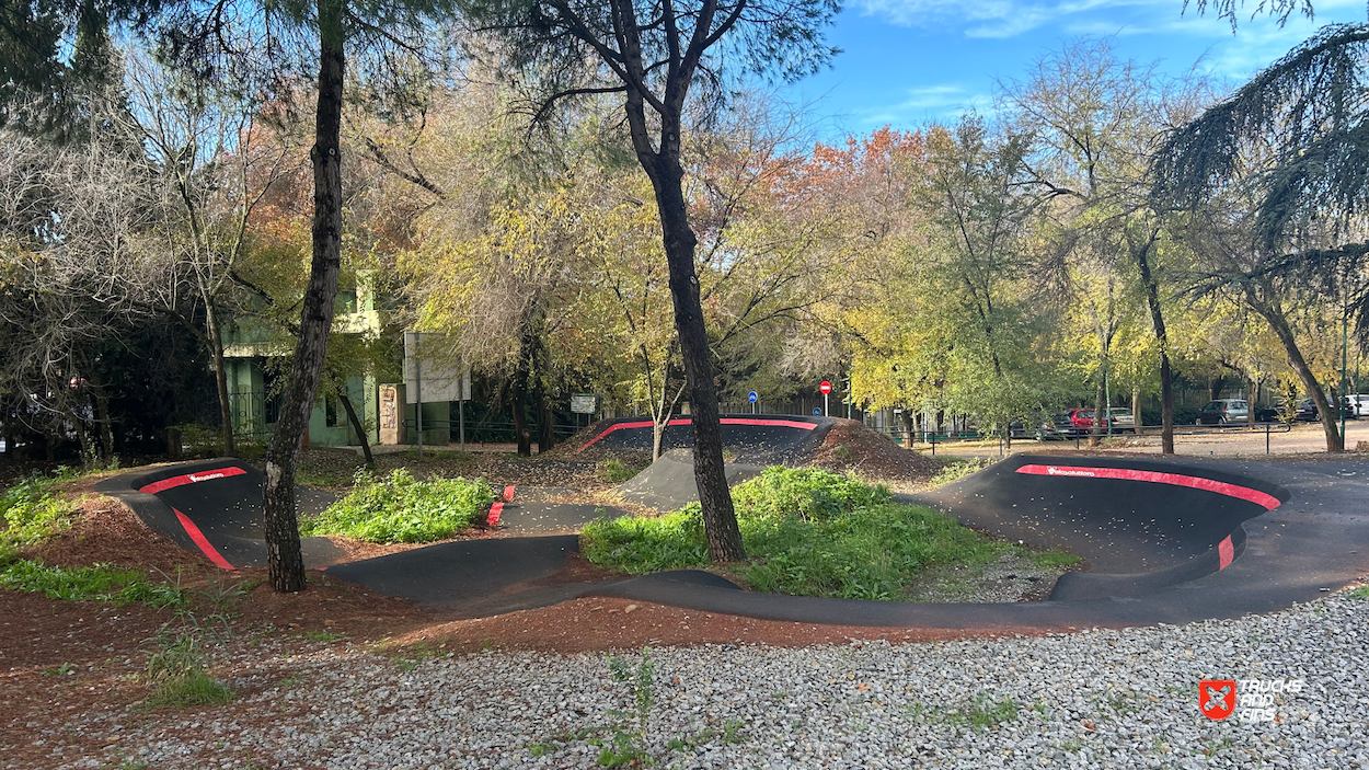 Parque del Príncipe pumptrack is an asphalt bike and skateboard track built by Velosolutions. The Parque del Príncipe in Cáceres is a spacious urban park featuring a variety of amenities, including a pump track designed for cycling enthusiasts. This pump track offers a dedicated space for cyclists to practice and enjoy their sport within the park's natural setting. In addition to the pump track, the park boasts a large central pond, an open-air sculpture museum, a botanical garden near the main entrance, and the restored La Madrila fountain, which historically served as a drinking and washing spot.