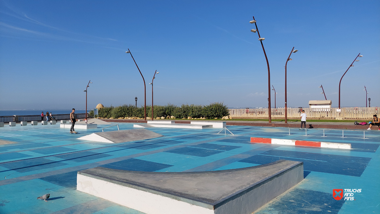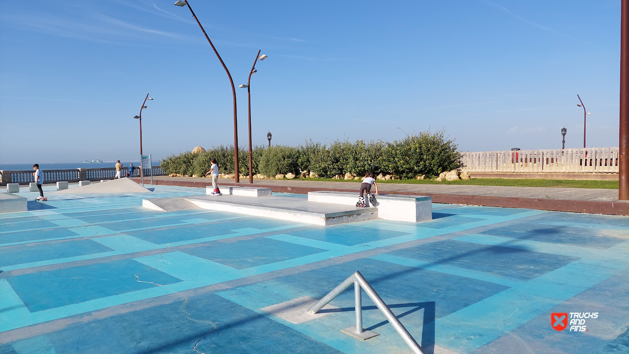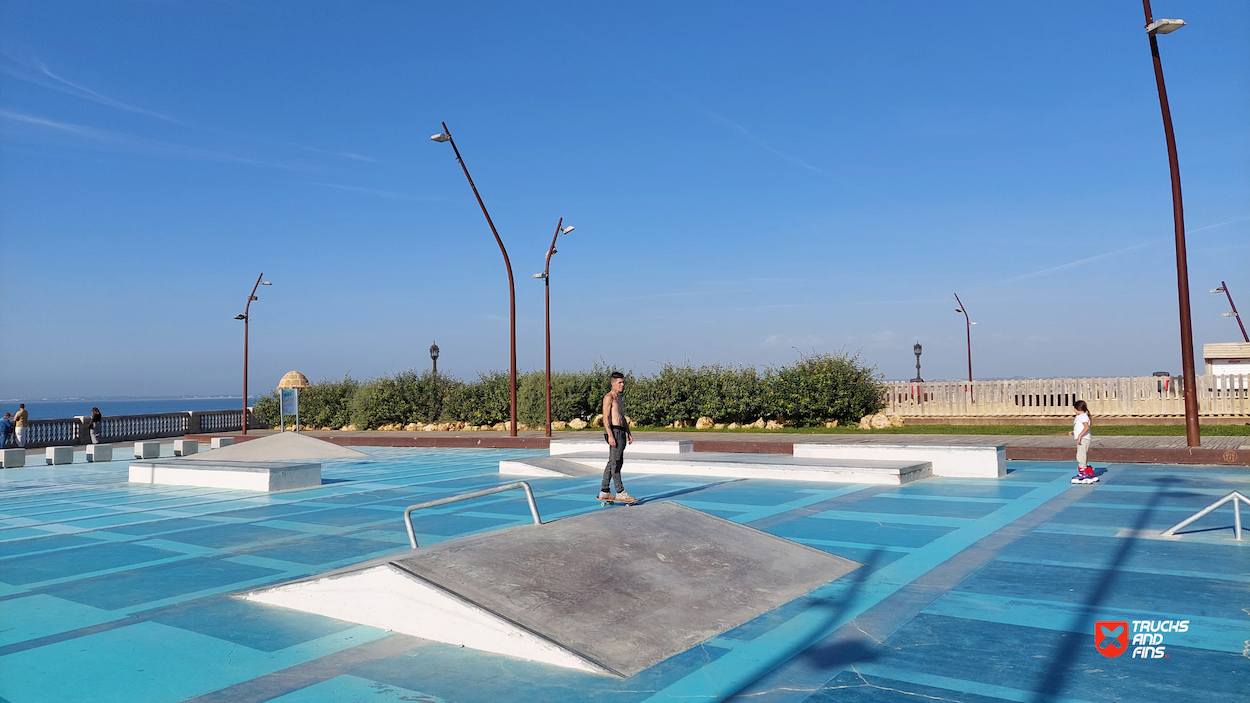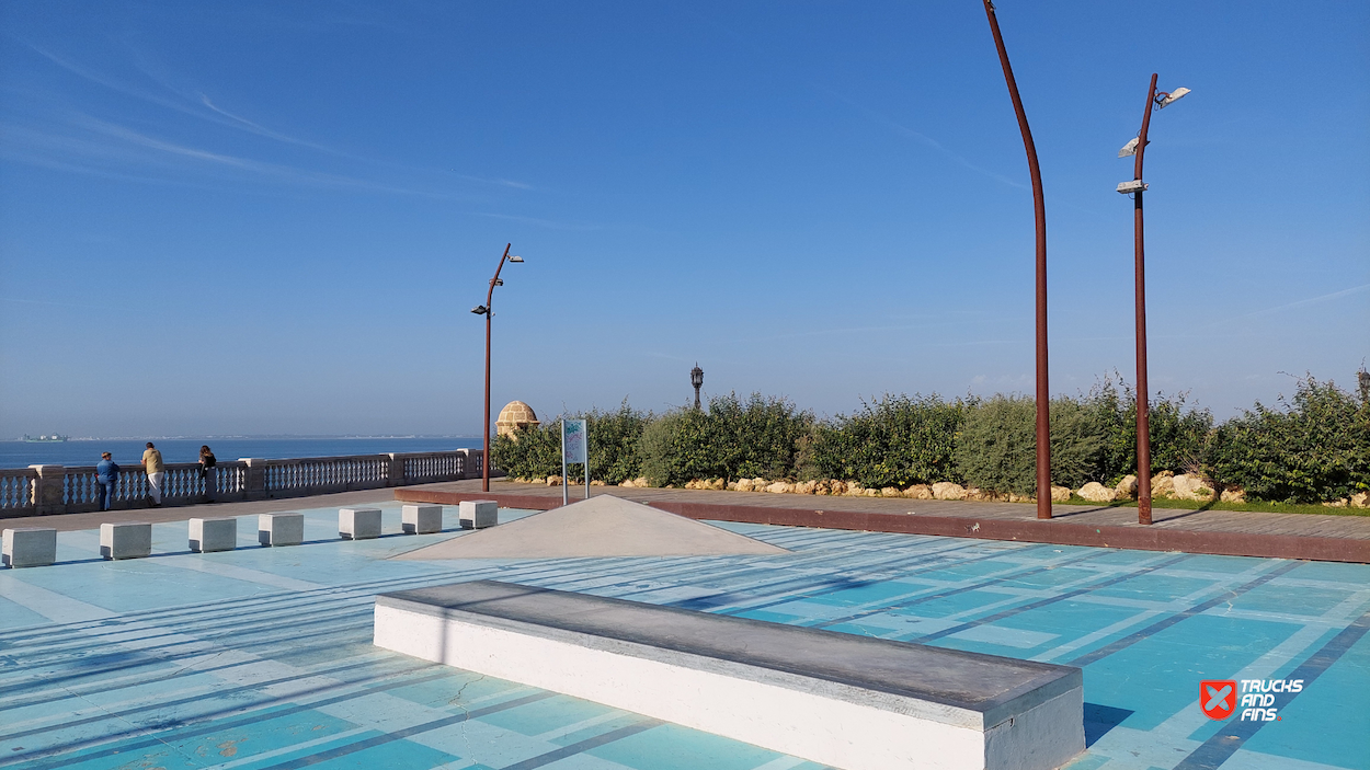 Parque Genovés, located in Cádiz, Spain, is renowned for its lush botanical gardens, diverse tree species, and serene ambiance. It features attractions such as a picturesque pond with a waterfall, topiary-lined avenues, and various sculptures. In March 2024, the park introduced a new children's play area equipped with elements like a zip line, toboggan, climbing structures, and musical games. Inside the park, next to the ocean you will find the street focused skatepark.