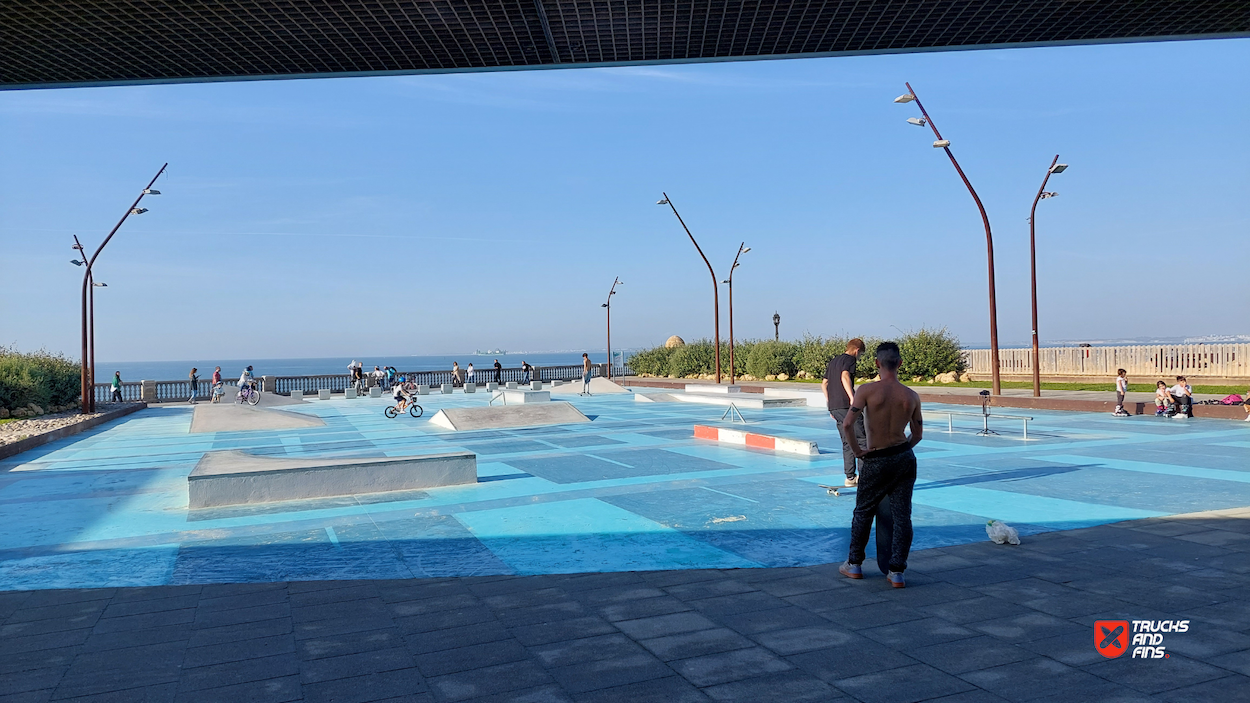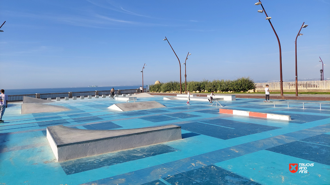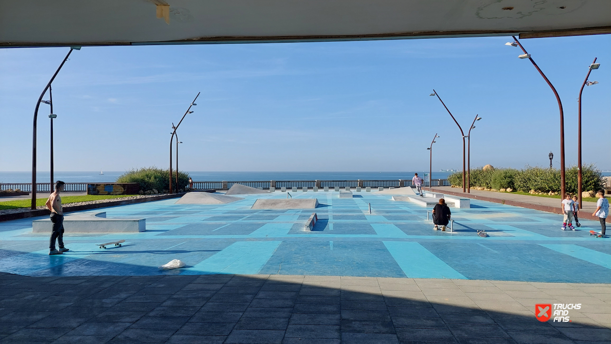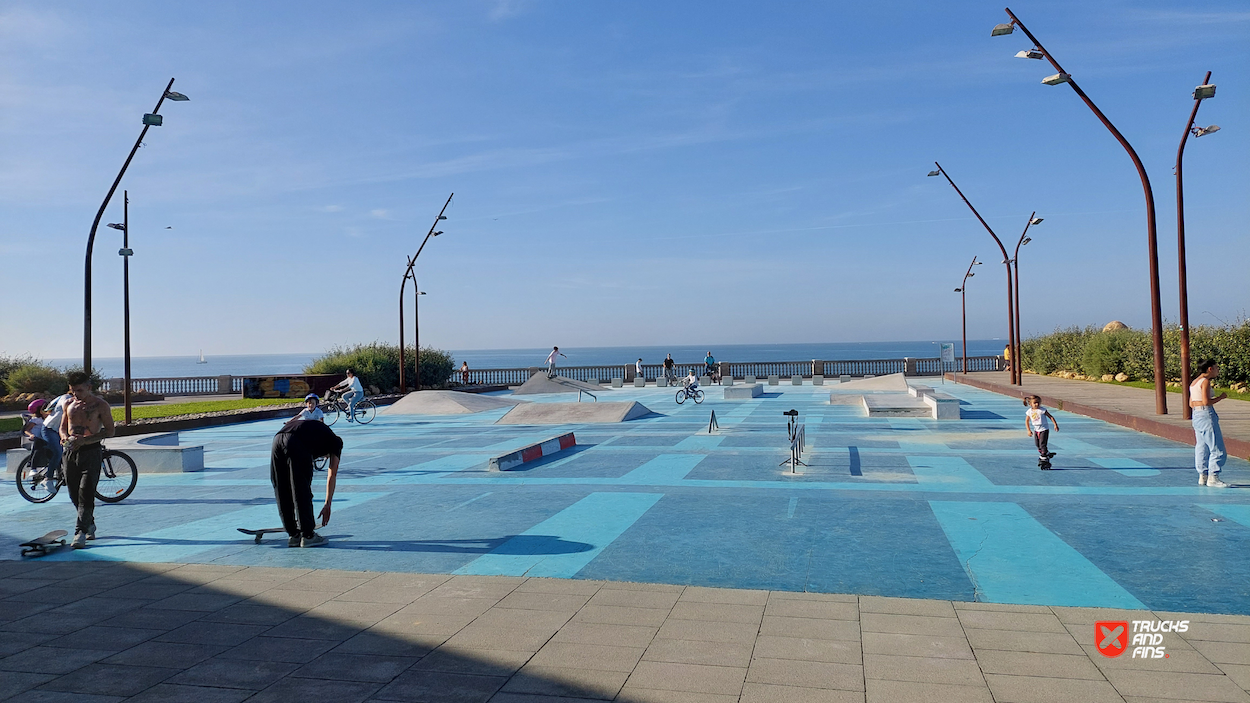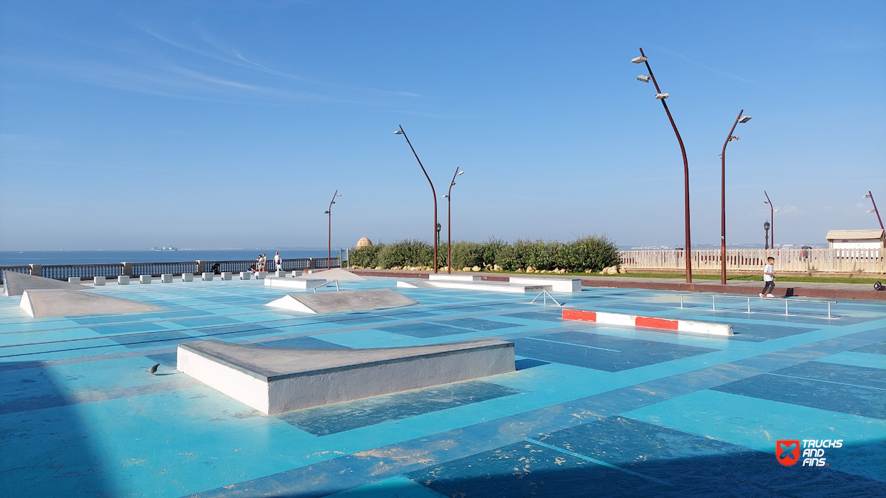 Parque Genovés, located in Cádiz, Spain, is renowned for its lush botanical gardens, diverse tree species, and serene ambiance. It features attractions such as a picturesque pond with a waterfall, topiary-lined avenues, and various sculptures. In March 2024, the park introduced a new children's play area equipped with elements like a zip line, toboggan, climbing structures, and musical games. Inside the park, next to the ocean you will find the street focused skatepark.