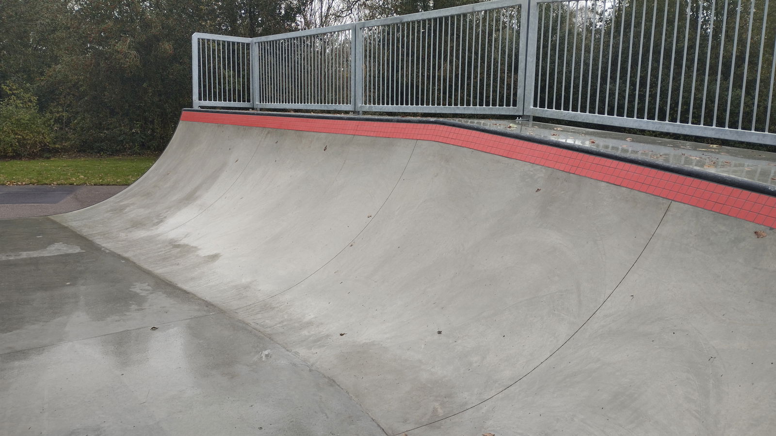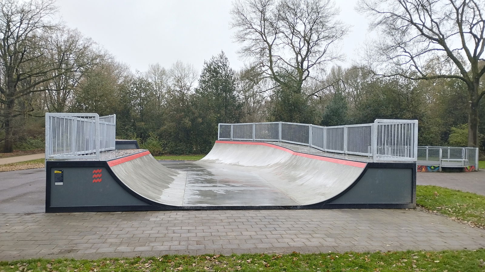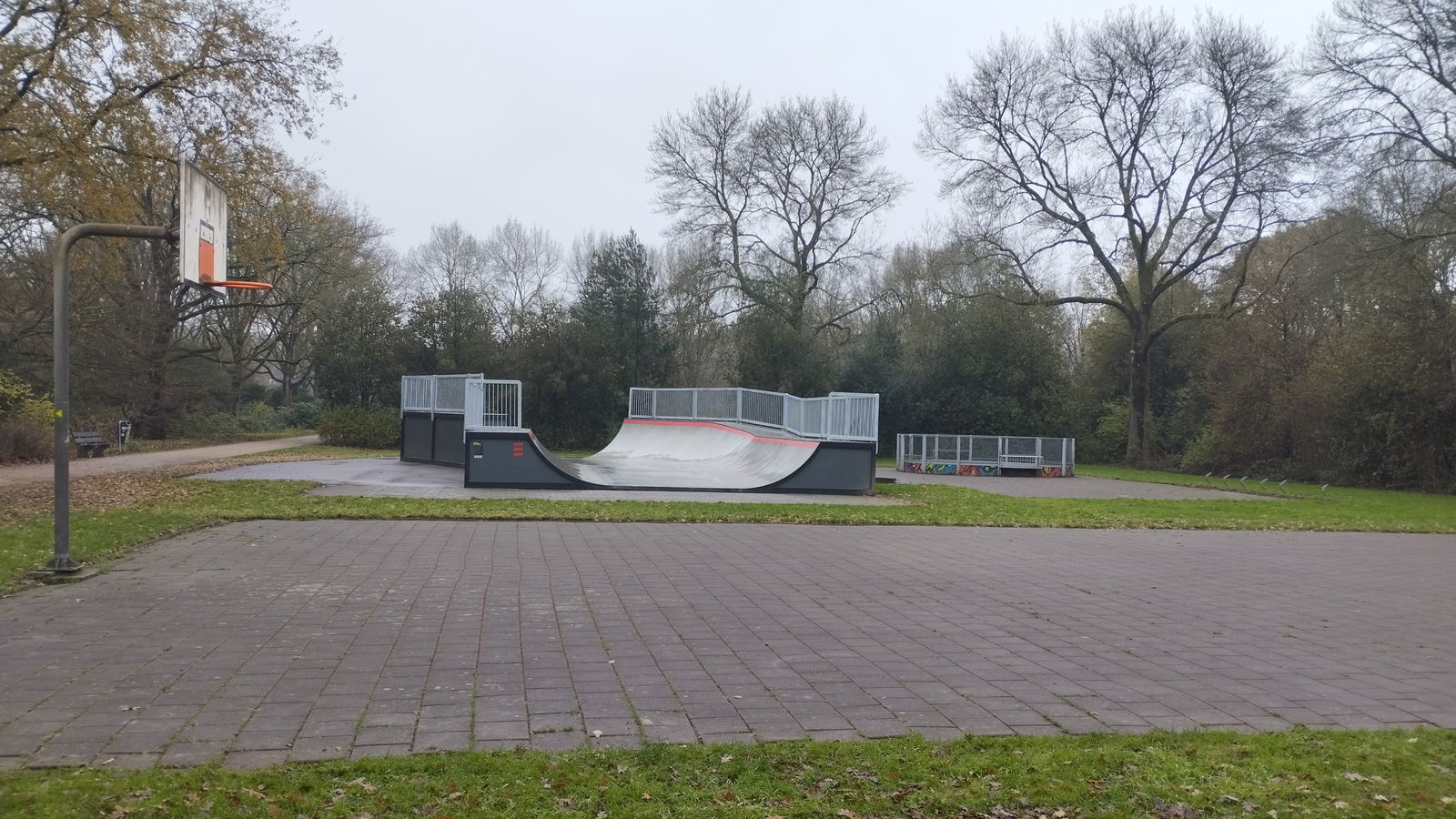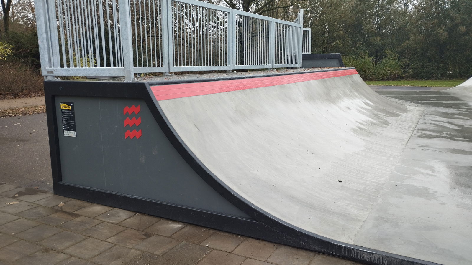 Philips van Lennep Park skatepark features a wide concrete miniramp.