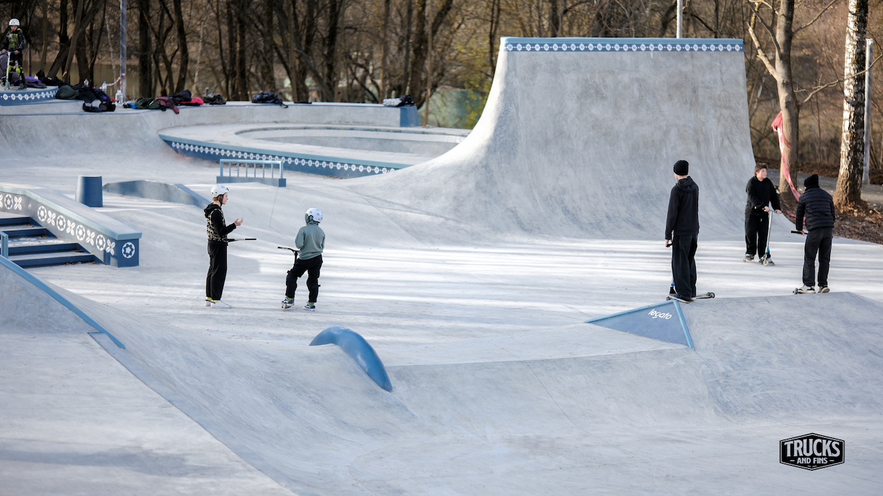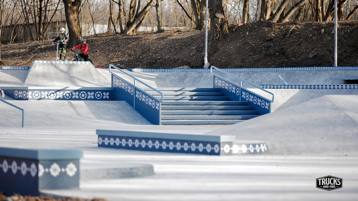 The streets serve as an endless source of inspiration, a treasure trove of puzzles and challenges that all those who choose to skate love to solve. The originality of the obstacles deserves special attention. In a sense, it acts as a kind of antithesis to the conventional sports approach, where standard rails and curbs are replaced with unusual waves, rainbows, ramps, and walls. Together, they create a unique space for creativity and self-expression, something that standardized skateparks often lack. Radius enthusiasts will not be left out, as there is a kidney-shaped bowl and a monumental vert wall. Original coping features, reminiscent of a true pool, will add a touch of flair and style. The skatepark was built by Legato construction.