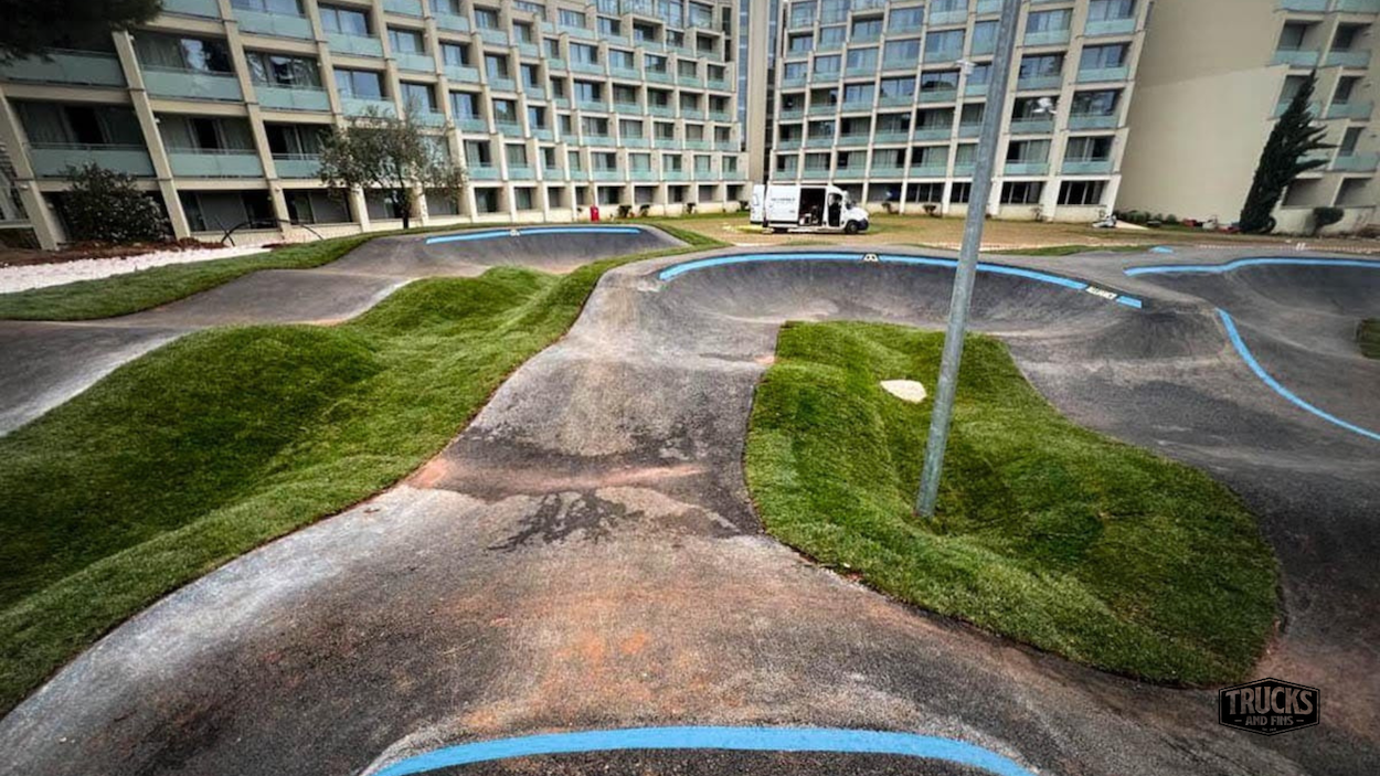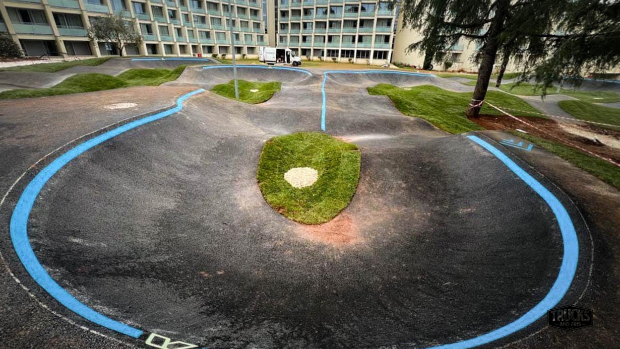 The Poreč Pumptrack, located in Poreč, Croatia, is a modern asphalt facility designed for various wheeled sports, including biking, skateboarding, rollerblading, and scootering. Opened in June 2022, it holds the distinction of being the first pumptrack on the Croatian coast. The pumptrack covers a total area of 902 square meters, with 290 square meters of asphalt riding surface. Situated within the pedestrian-recreational zone of the Poreč town beach, the pump track is adjacent to popular cycling routes, an outdoor gym, and a newly renovated children's park. Its proximity to the sea offers a scenic backdrop, enhancing the overall experience for users. The pumptrack was constructed in 2023 by Adria Bike in collaboration with Alliance ASE, a company specializing in the design and construction of pump tracks and skate parks.