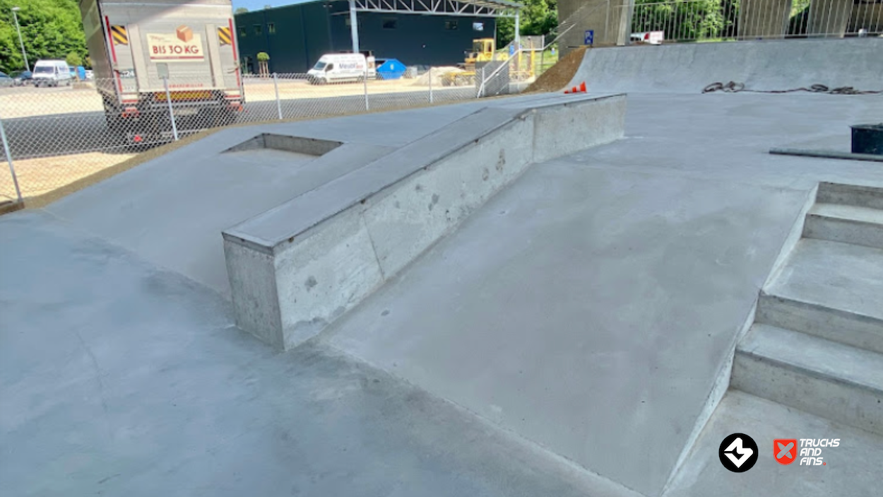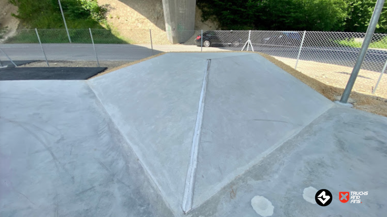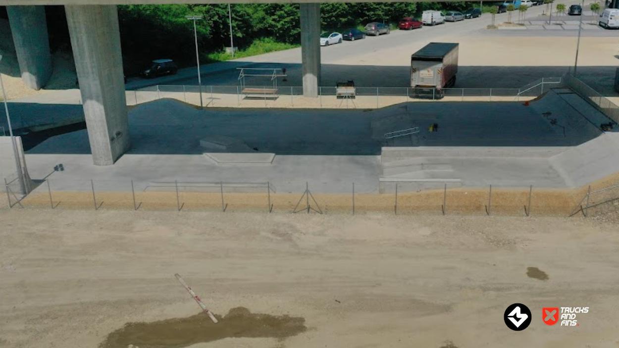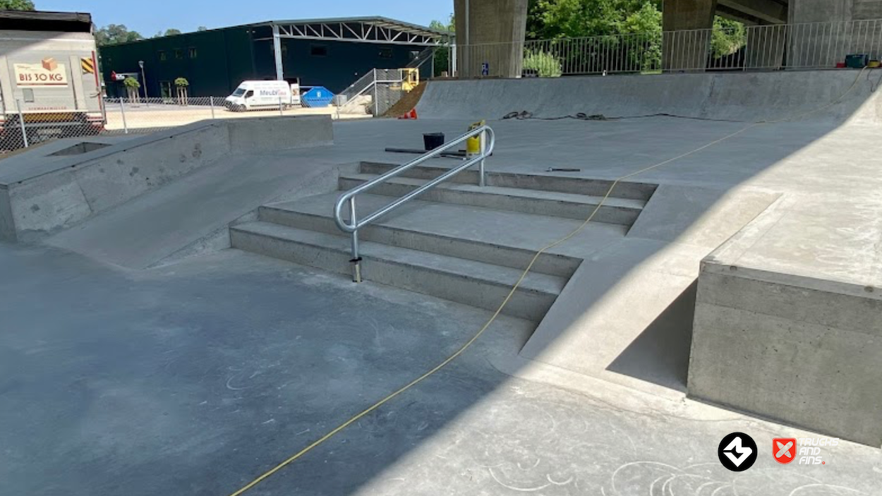 The Porrentruy Skatepark, inaugurated on May 27, 2023, is located under the A16 bridge in the Voyeboeuf industrial zone of Porrentruy, Switzerland. This strategic placement not only provides shelter from adverse weather but also minimizes noise disturbance to nearby residents.